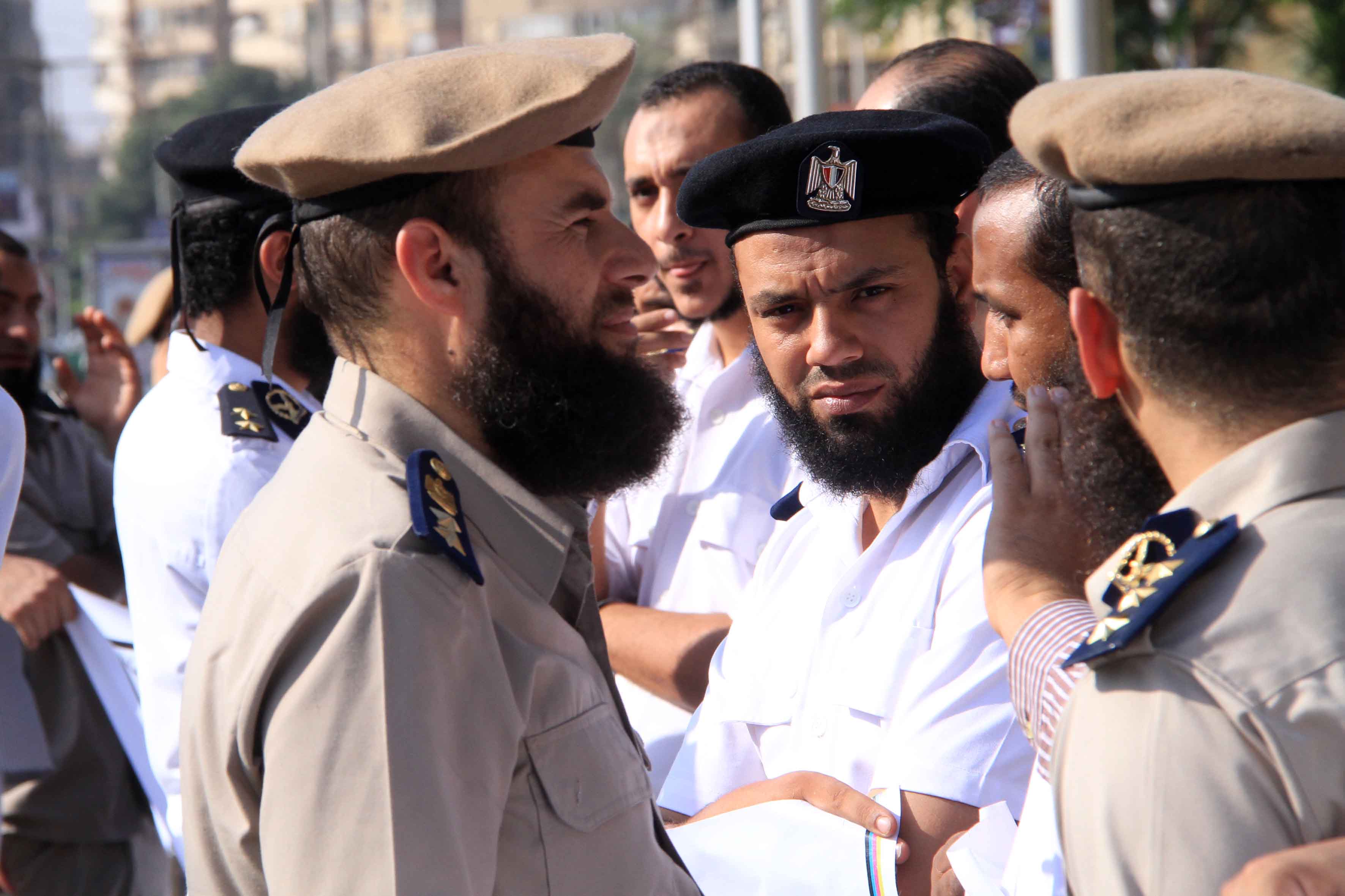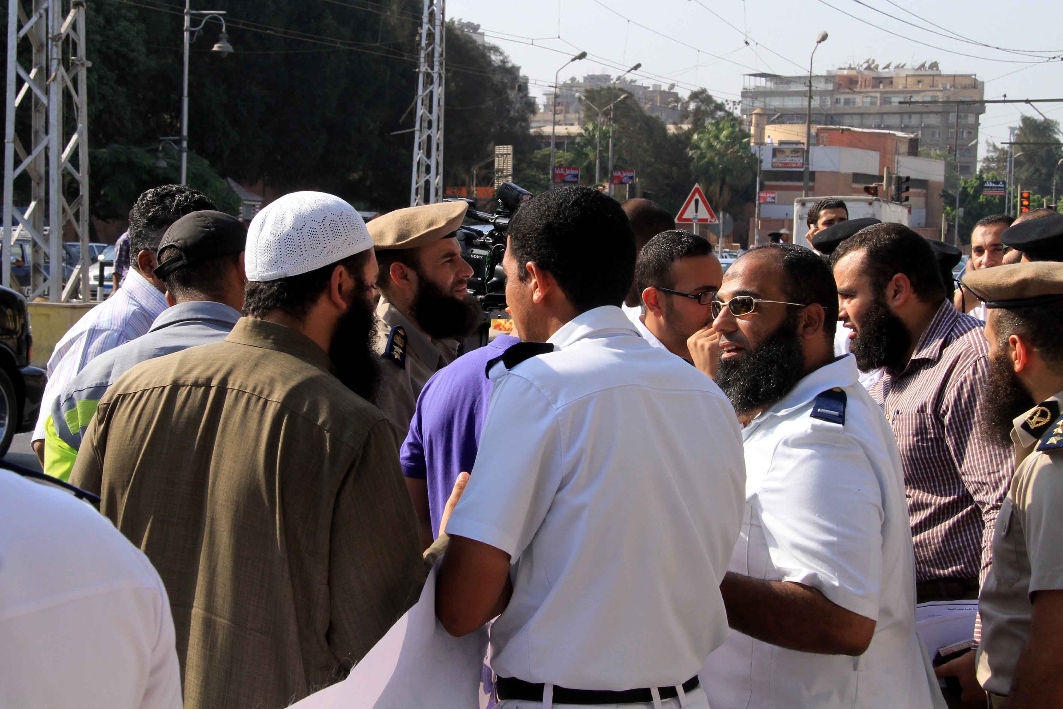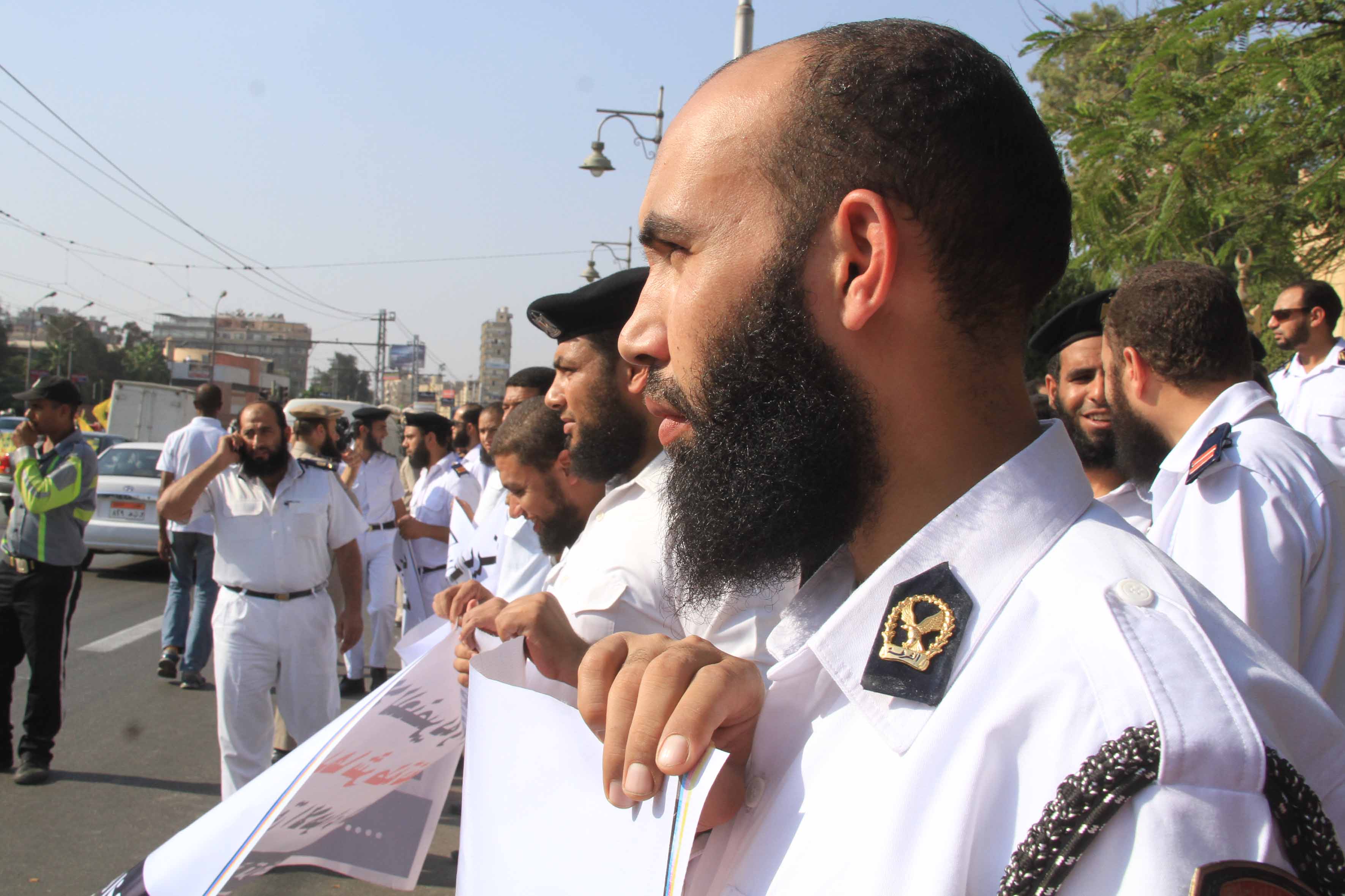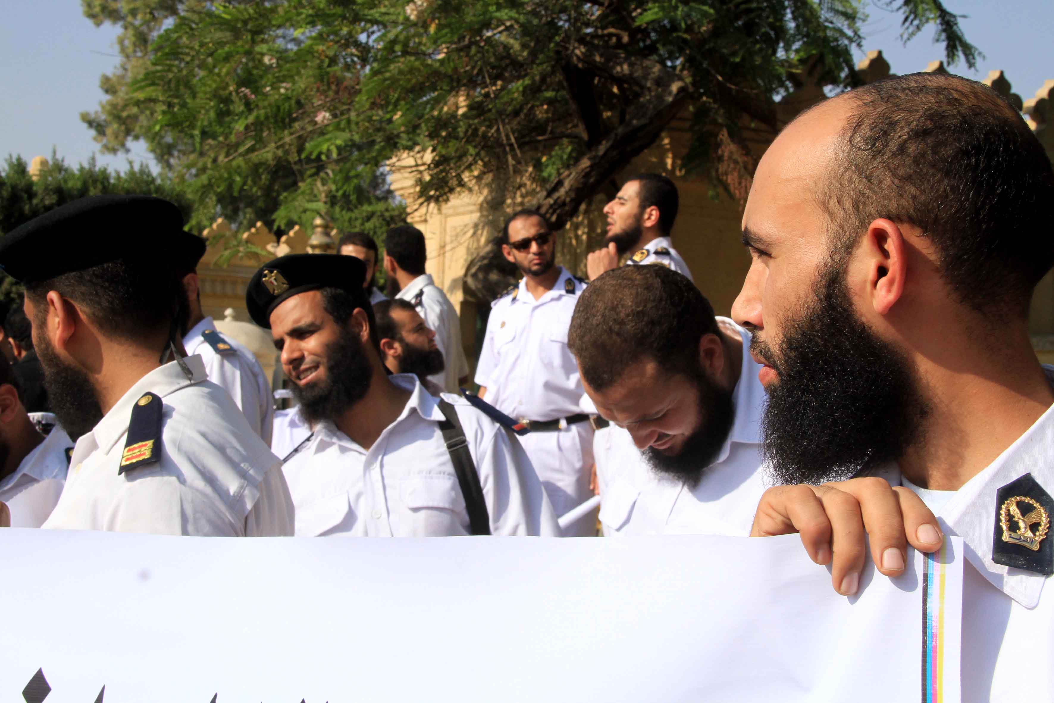 وقفة لضباط الشرطة الملتحيين امام قصر الاتحادية
