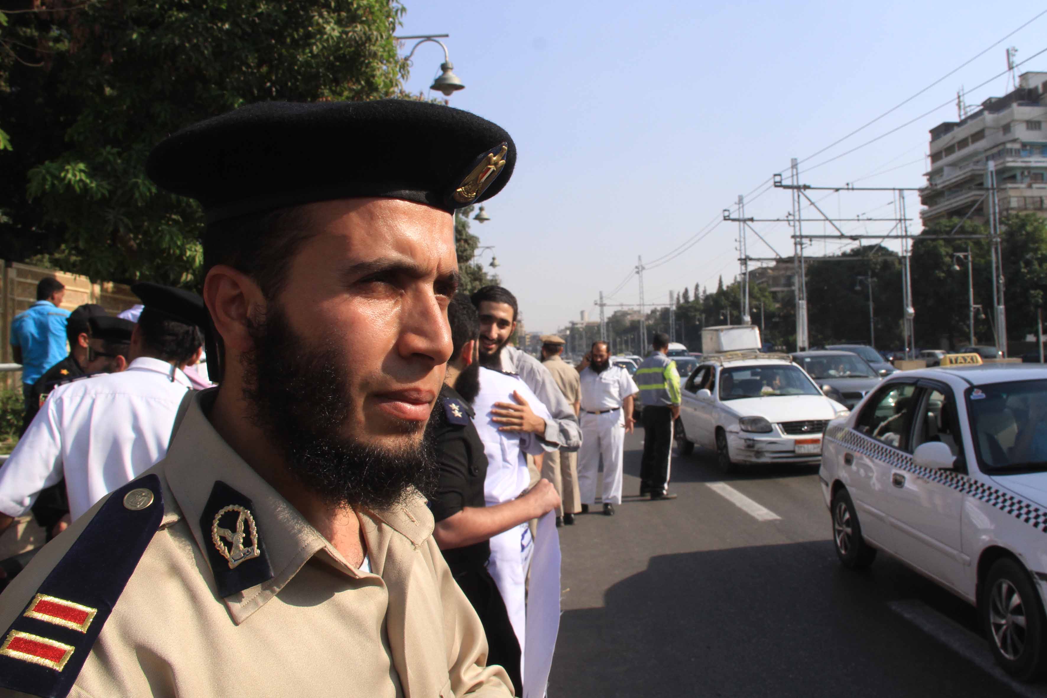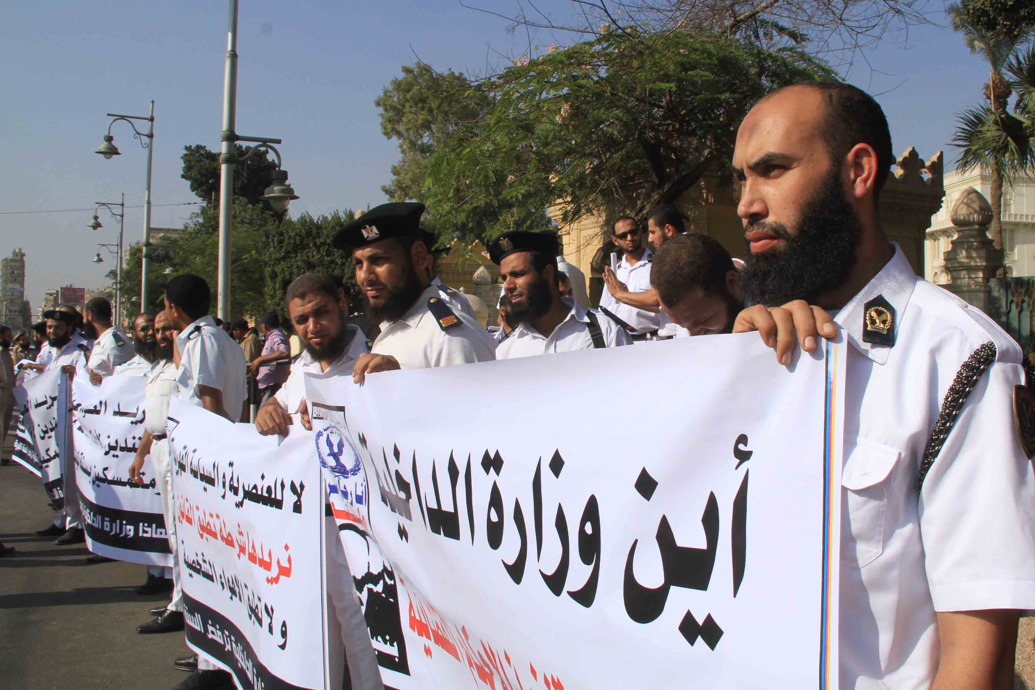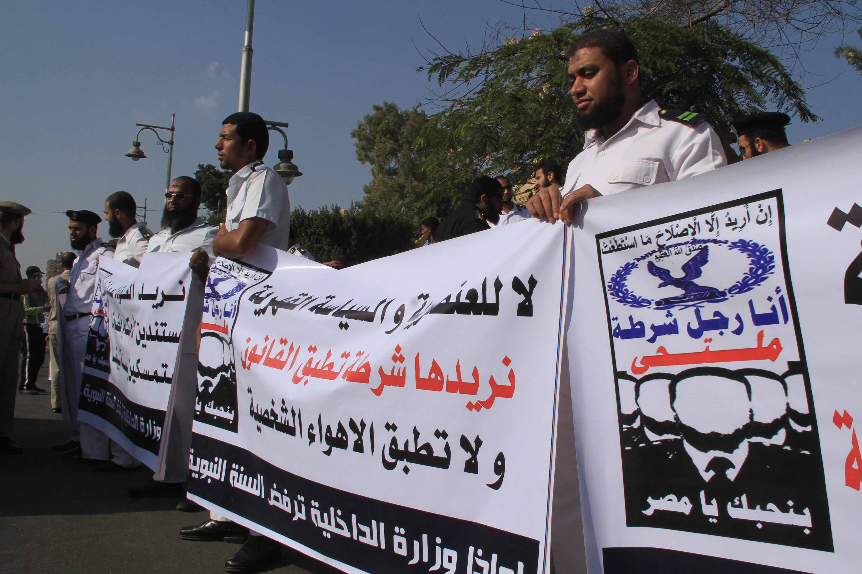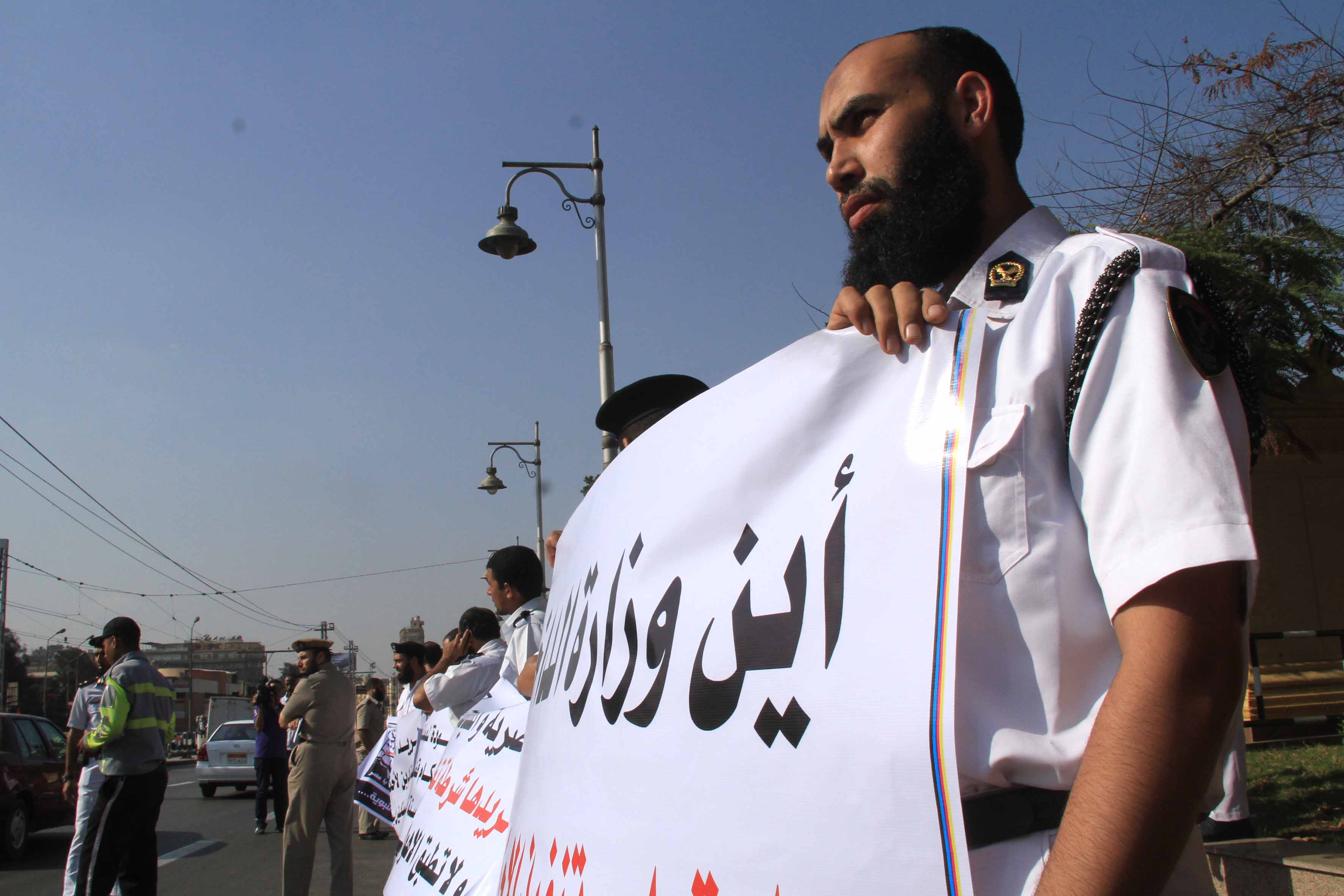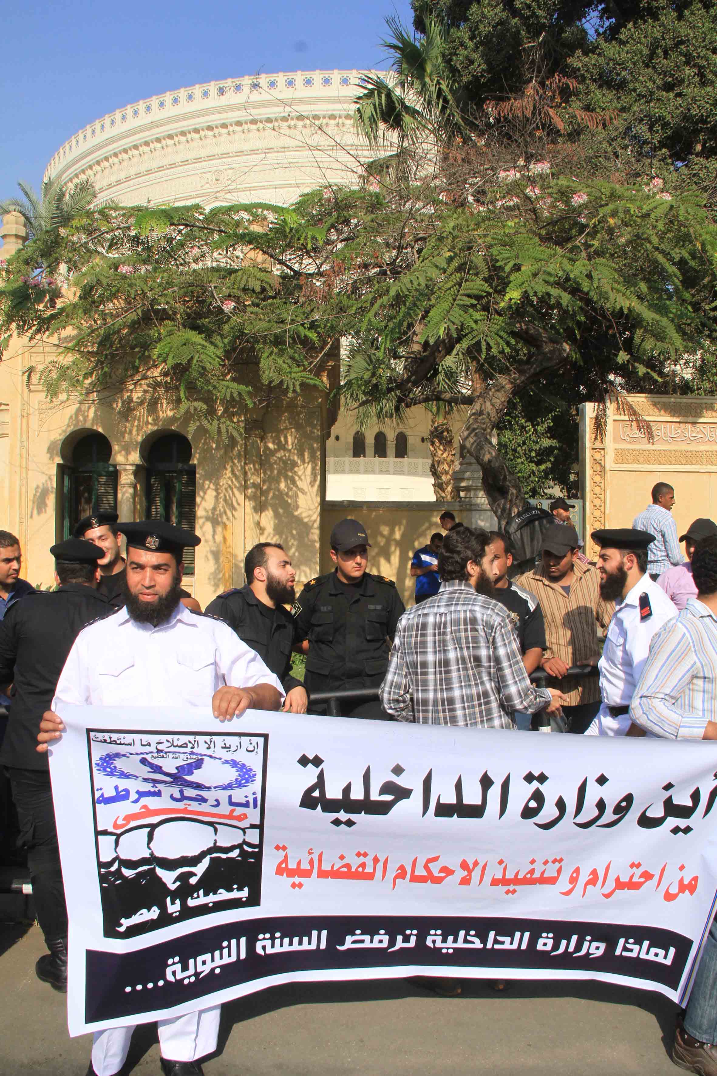 وقفة لضباط الشرطة الملتحيين امام قصر الاتحادية