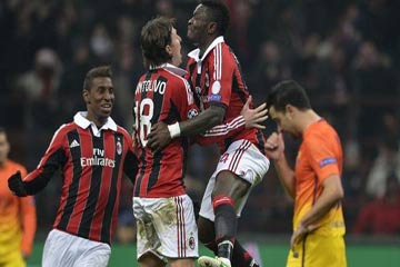 اقترب فريق ميلان الإيطالي من التأهل إلى دور الثمانية لدوري أبطال أوروبا لكرة القدم بعدما تغلب على ضيفه برشلونة الإسباني بهدفين نظيفين الأربعاء على ملعب سان سيرو في ذهاب دور الستة عشر للبطولة.