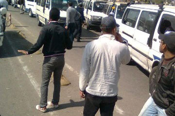 ويقوم السائقون بإيقاف أية سيارة تحمل ركابا فيما اضطرت السيارات الملاكى إلى الهروب عبر طرق فرعية من الشوارع الجانبية.