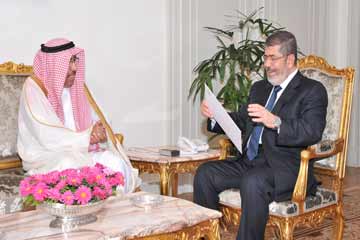 استقبل الدكتور محمد مرسى رئيس الجمهورية صباح الثلاثاء السيد / سيف بن مُقدم البوعينين سفير دولة قطر لدى جمهورية مصر العربية بمقر رئاسة الجمهورية بمصر الجديدة.