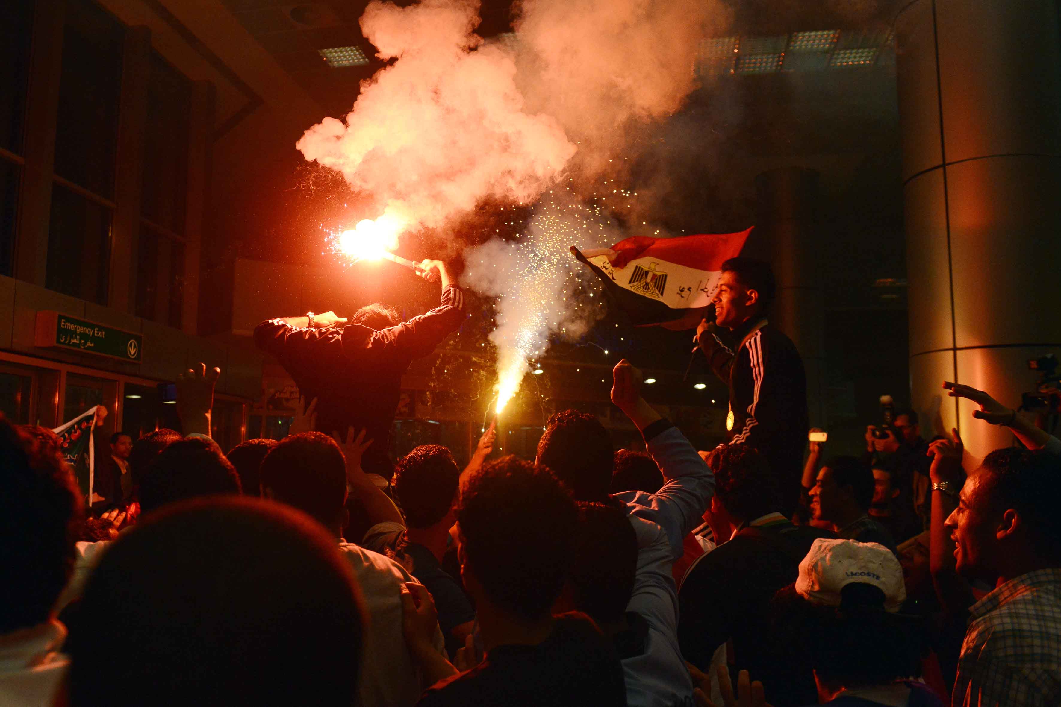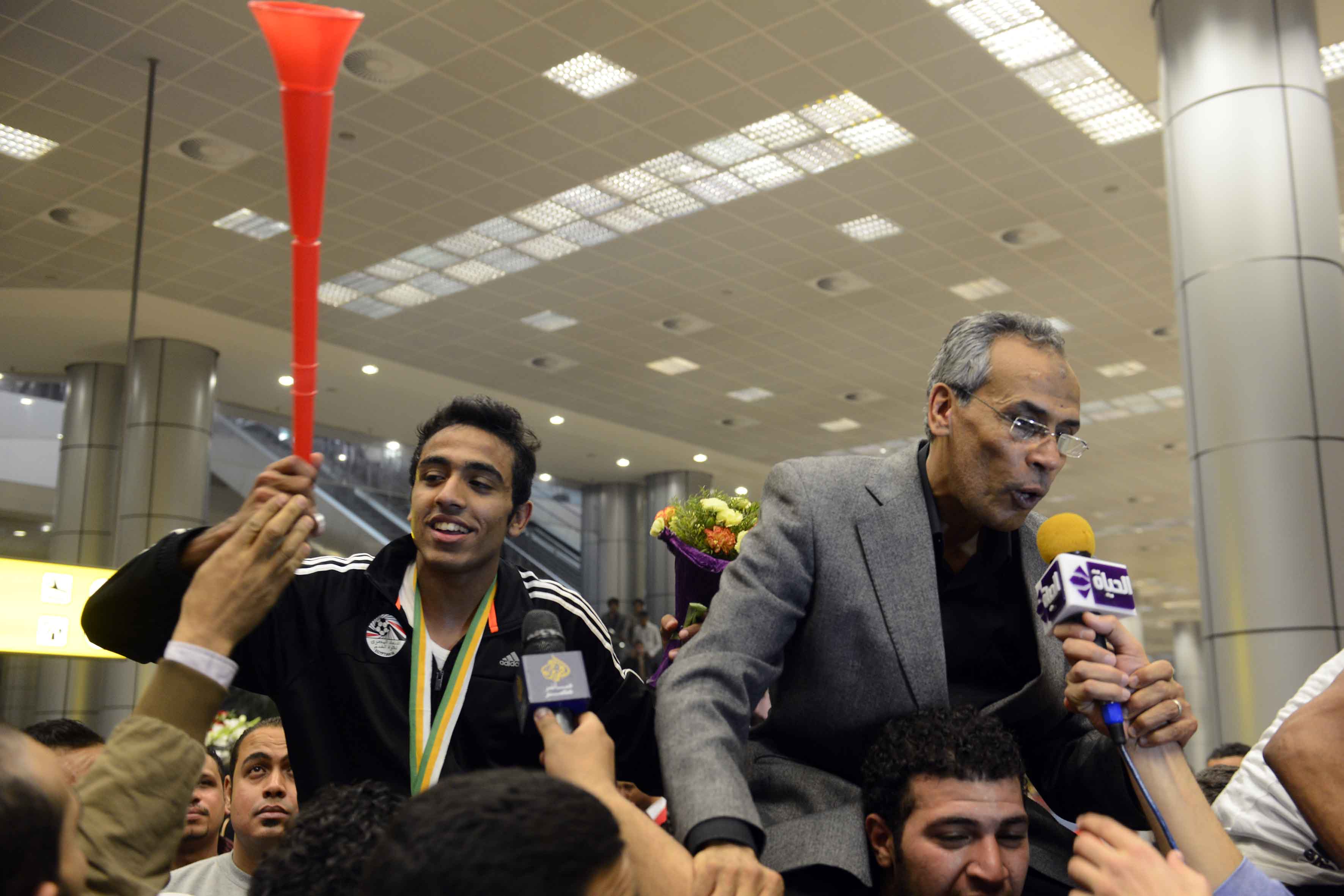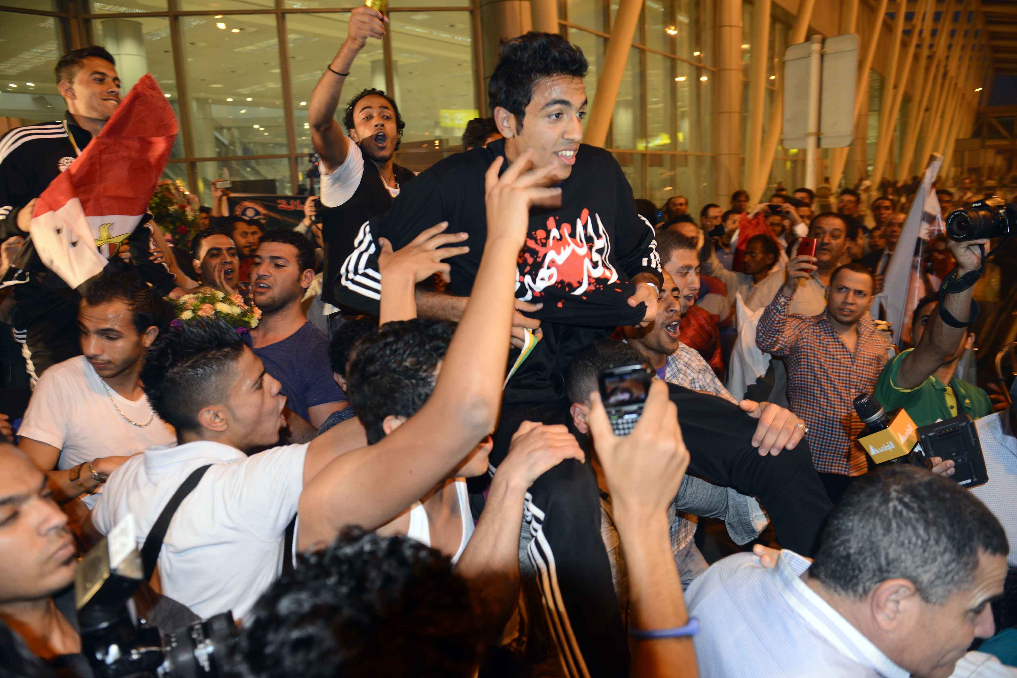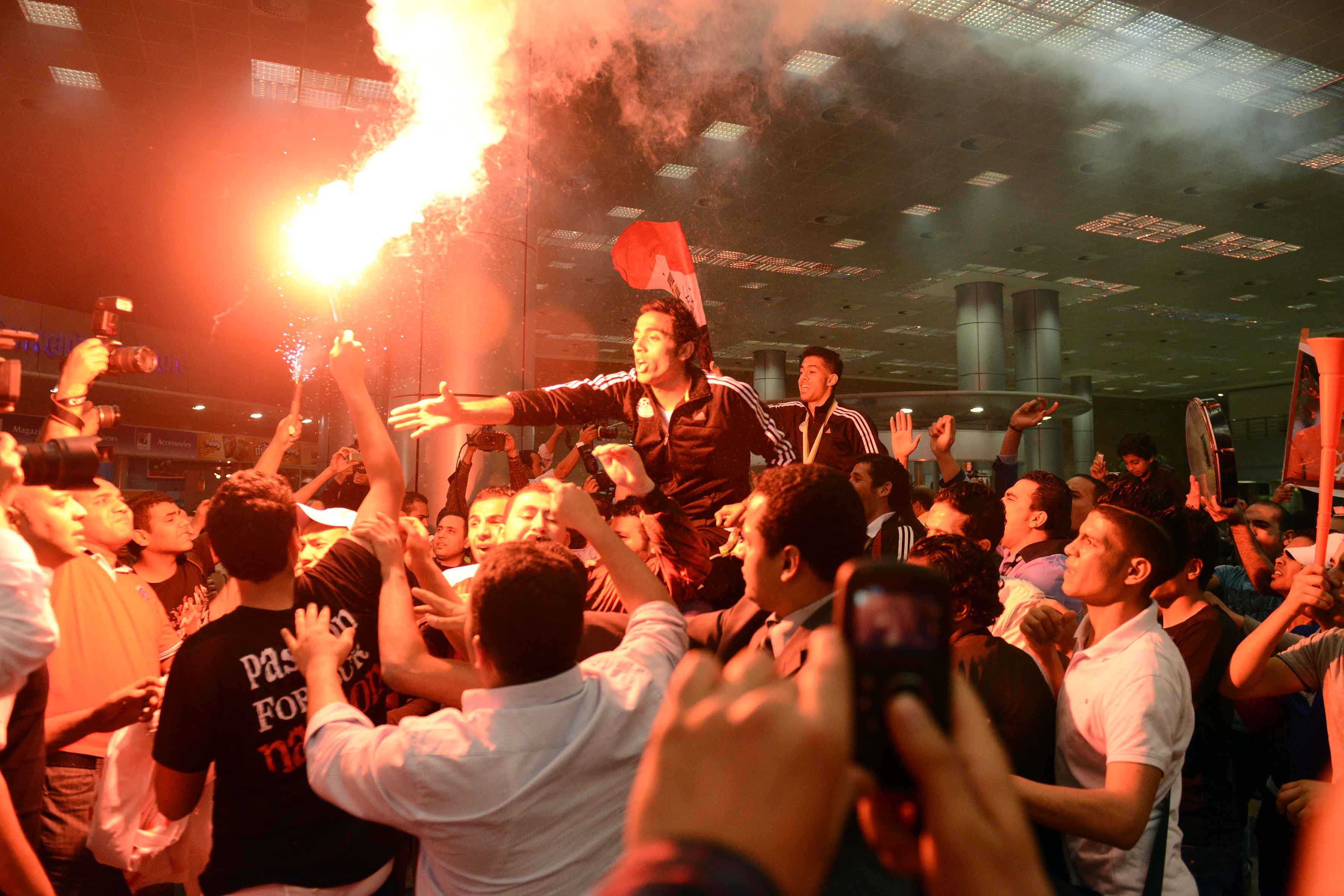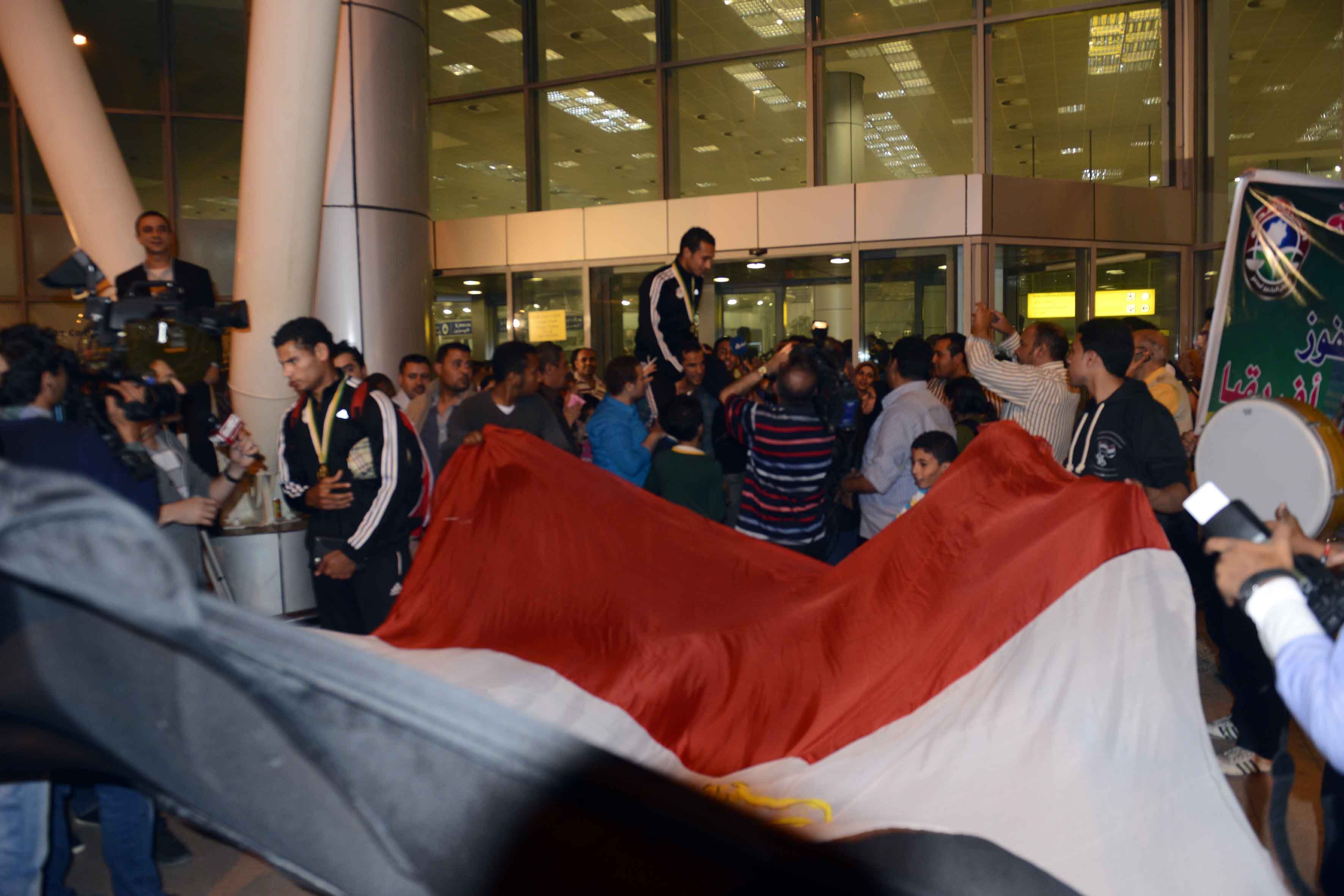 استقبال منتخب الشباب بمطار القاهرة