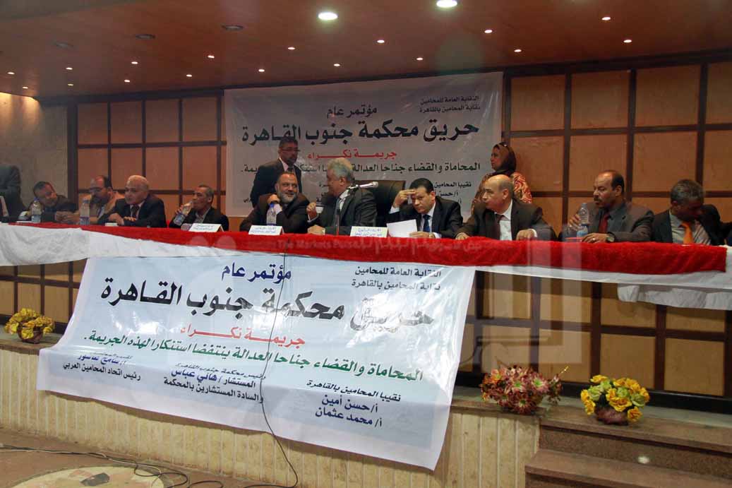 مؤتمر نقابة المحامين عن حريق محكمة جنوب القاهرة