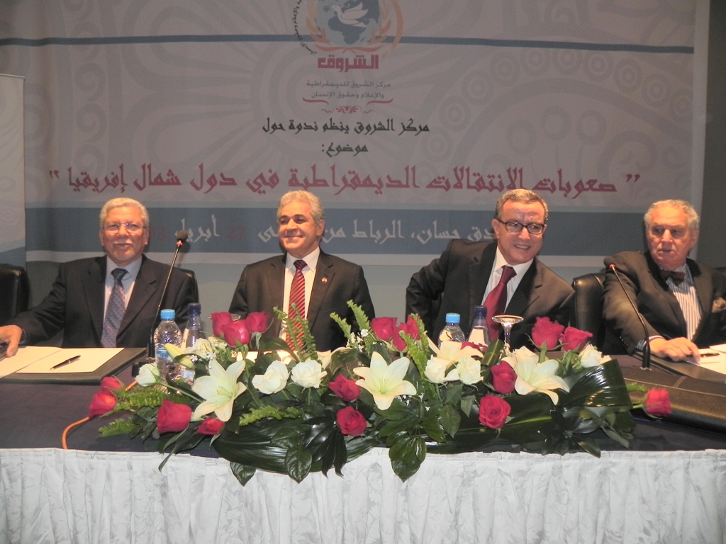 واضاف ان من بين معوقات التحول الديمقراطي في دول الشمال الافريقي ضعف وهشاشة نظم الحكم وفي المقابل ضعف وهشاشة المعارضة وهو ما اطلق عليه “توازن الضعف” بين السلطة والمعارضة، مشيرا الى ان بناء النظم الديمقراطية يحتاج الى “توازن قوة” بحيث تكون السلطة قوية والمعارضة ايضا قوية،.
