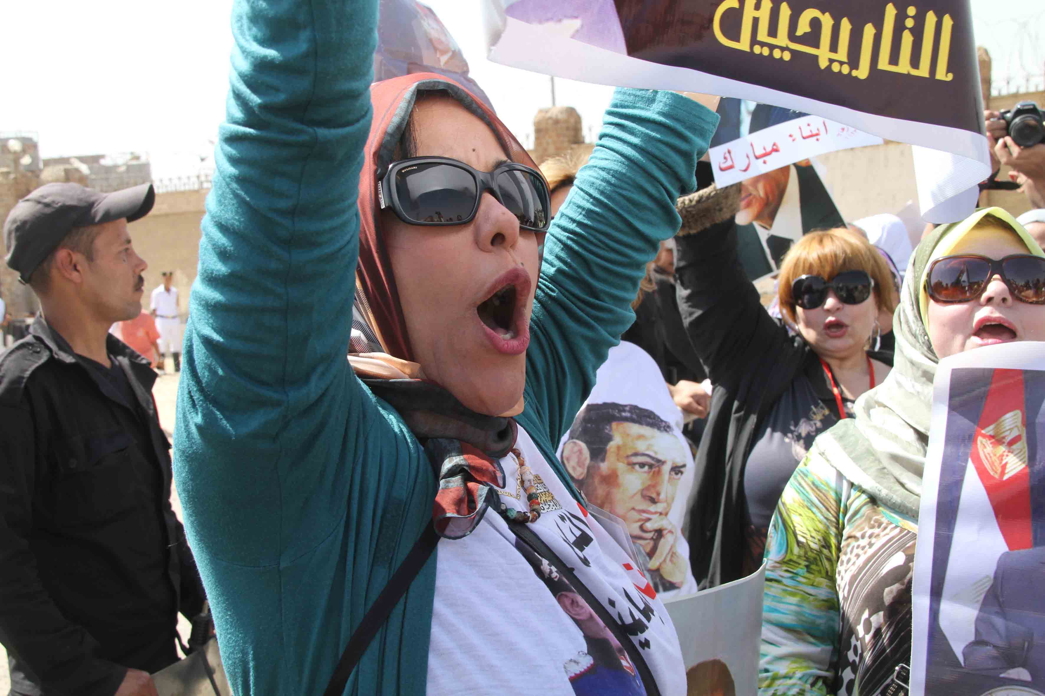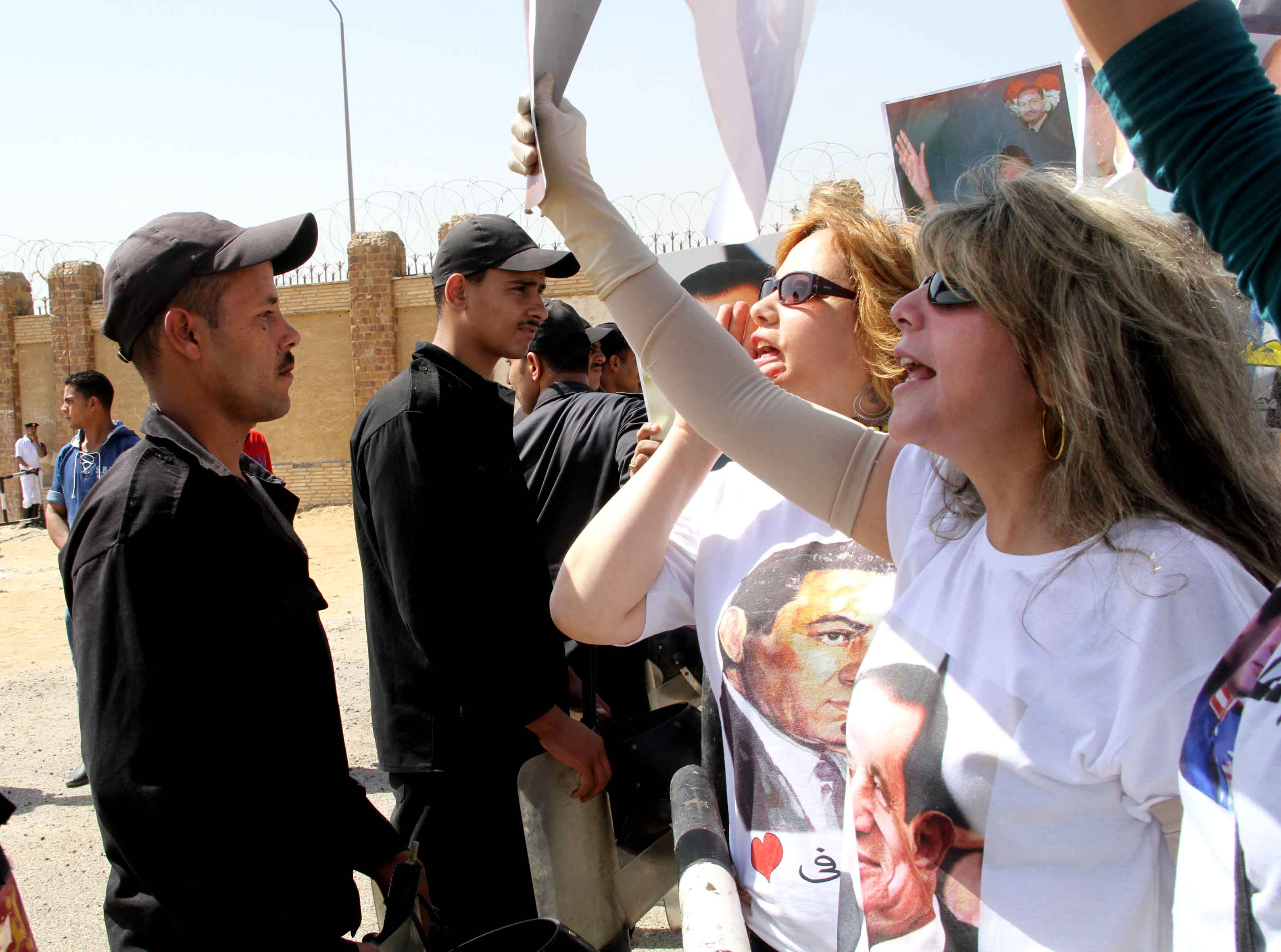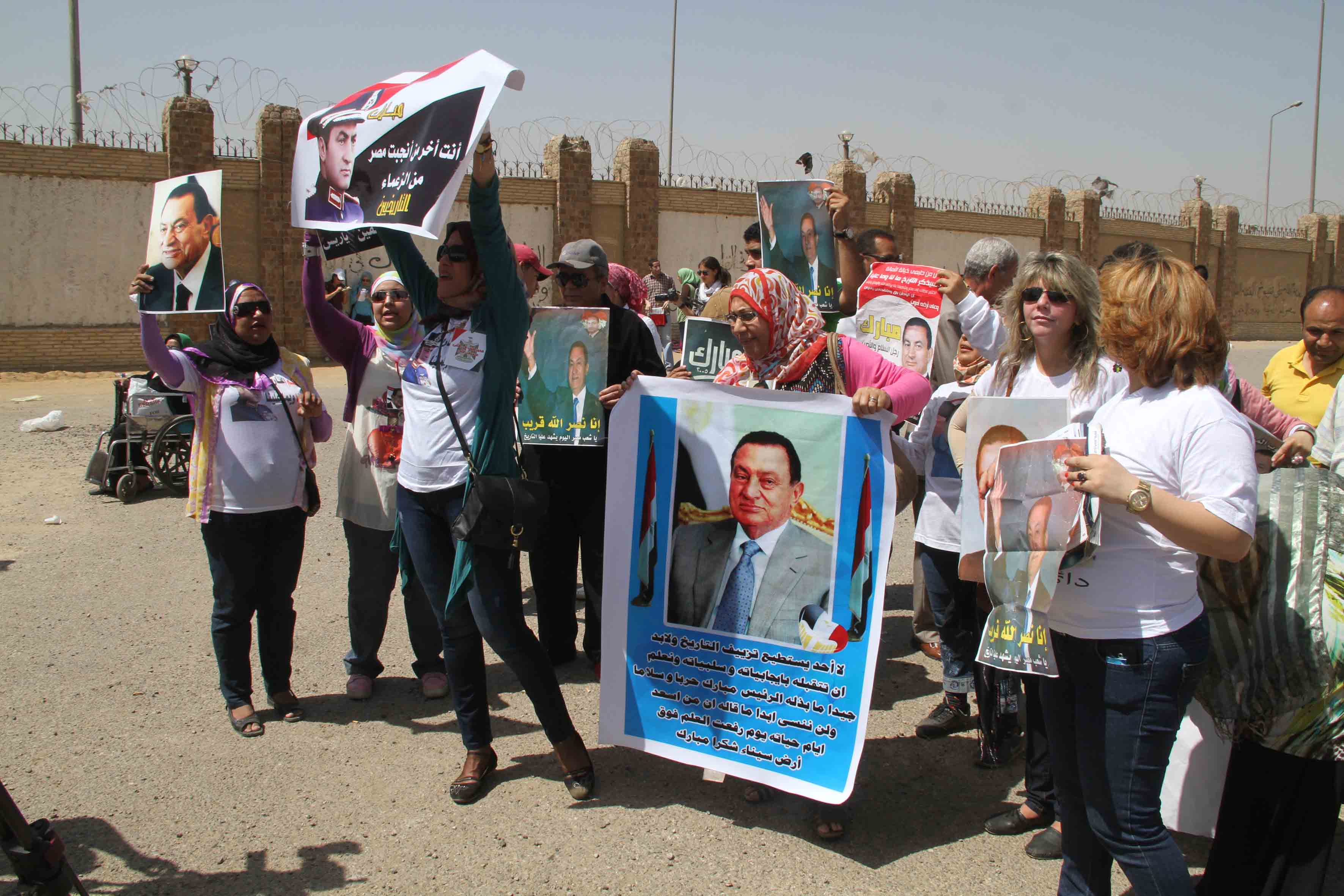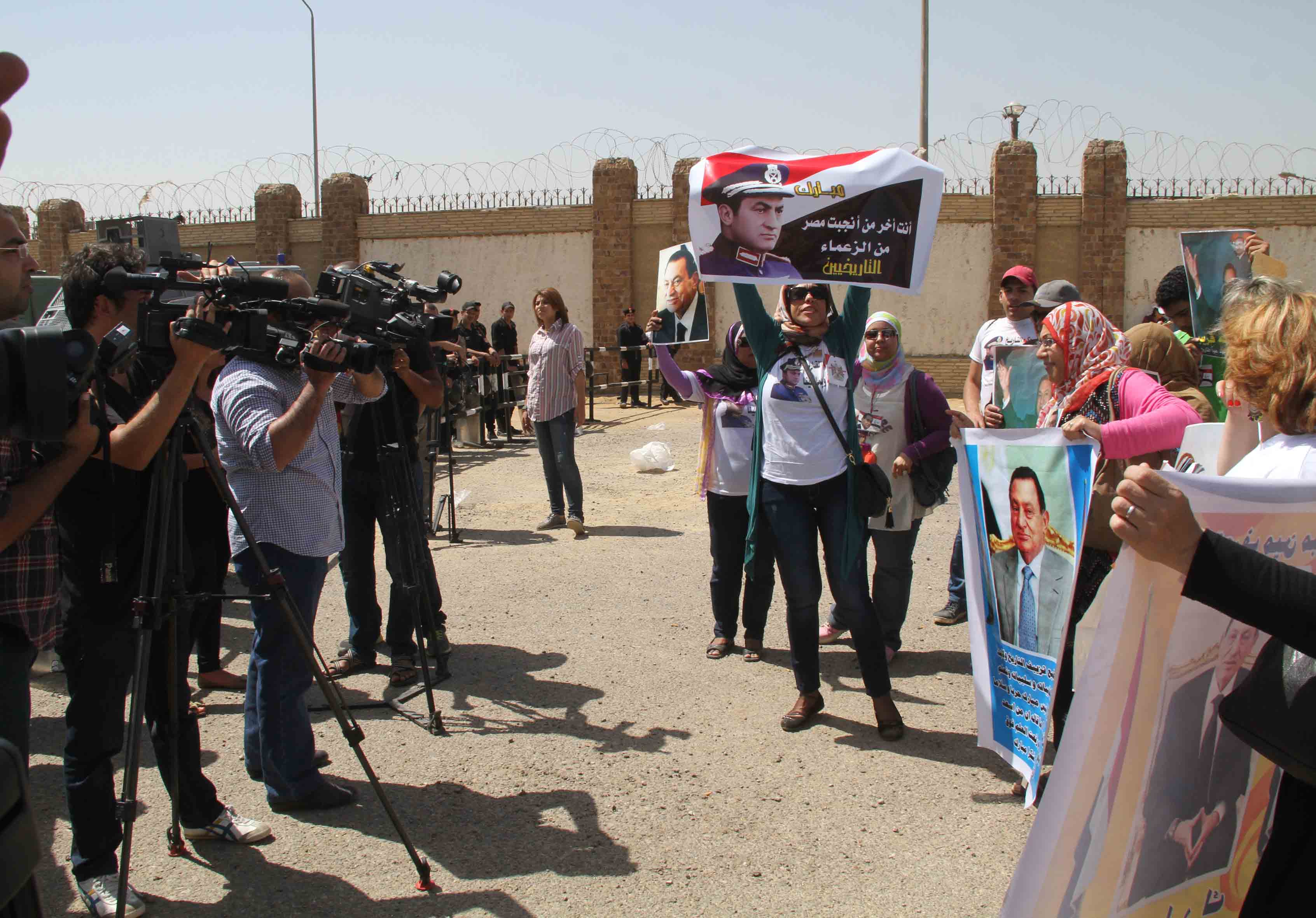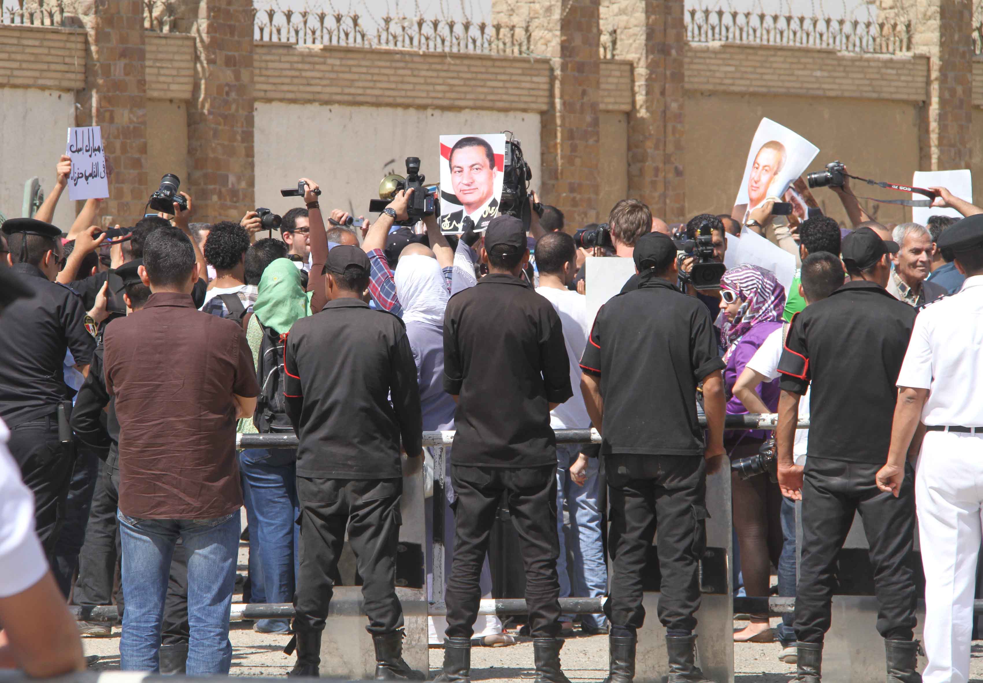 انصار مبارك واهالى الشهداء والمحاميين والصحفيين خارج المحكمة