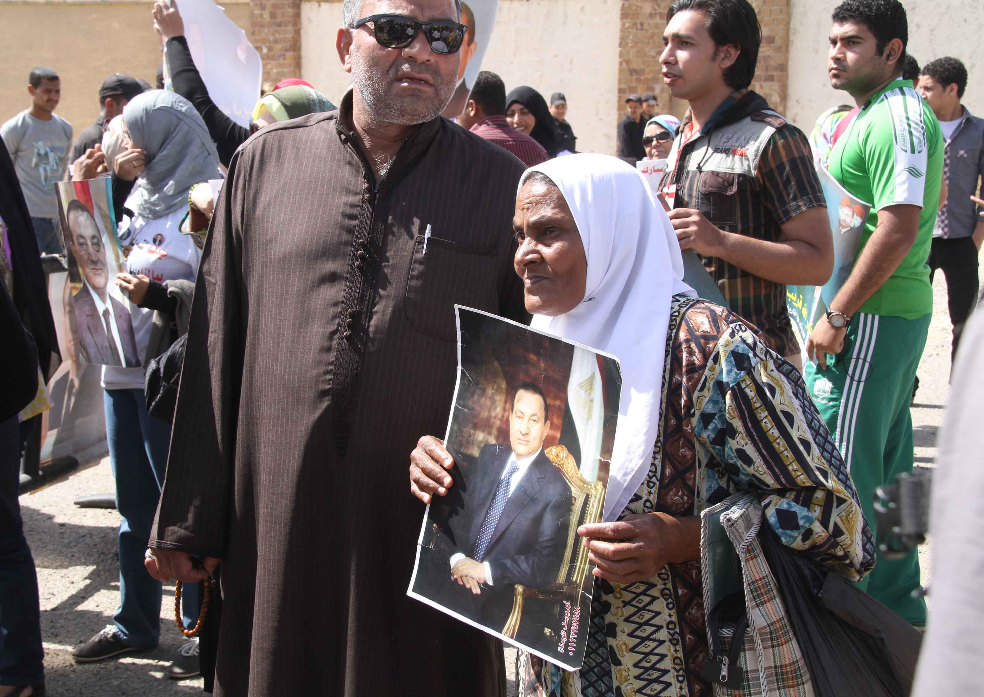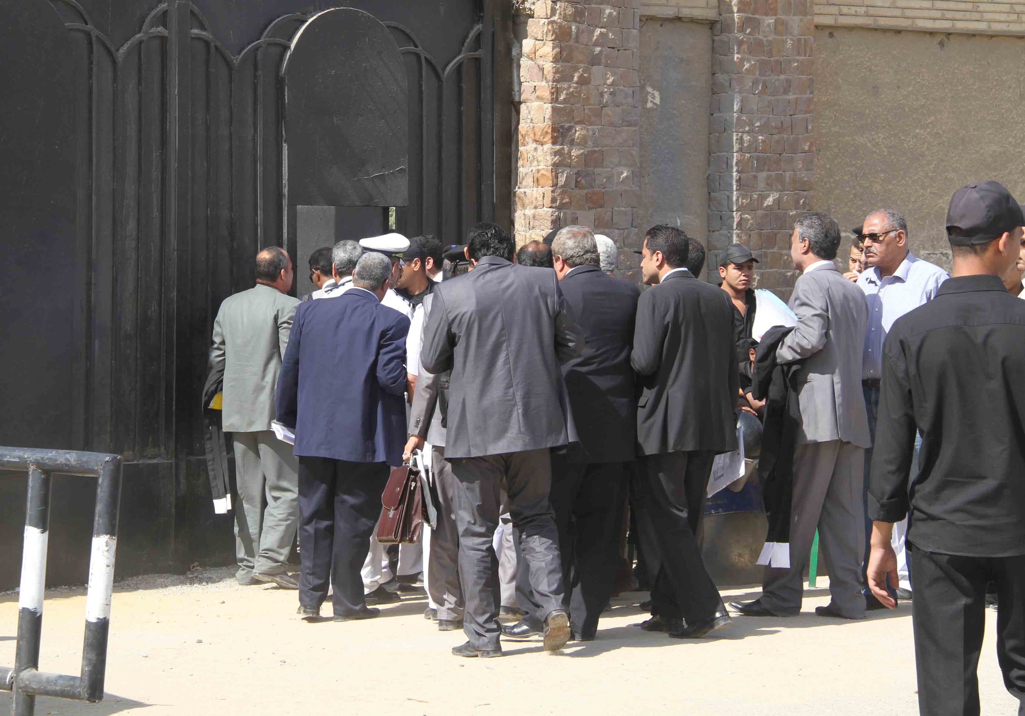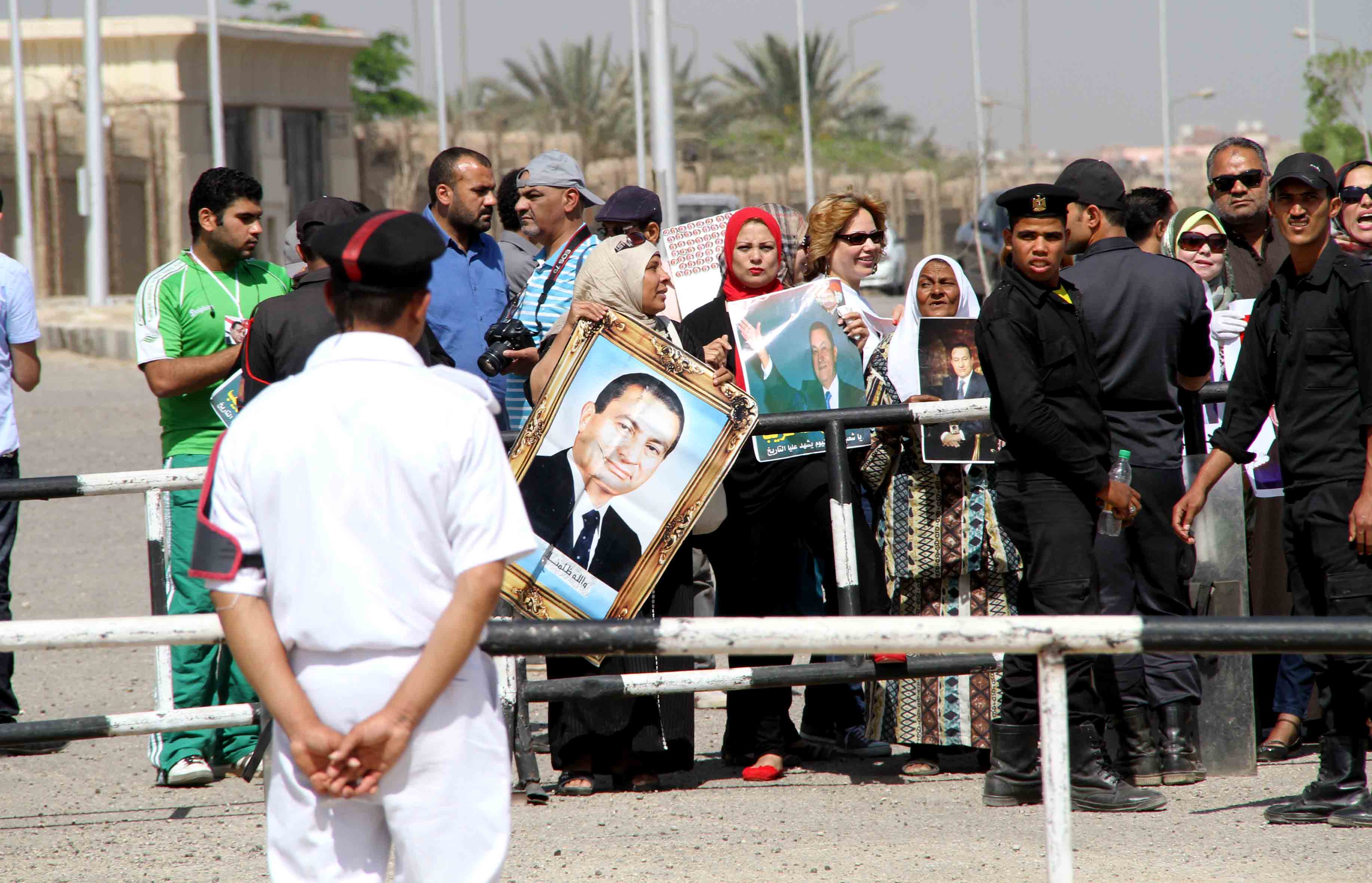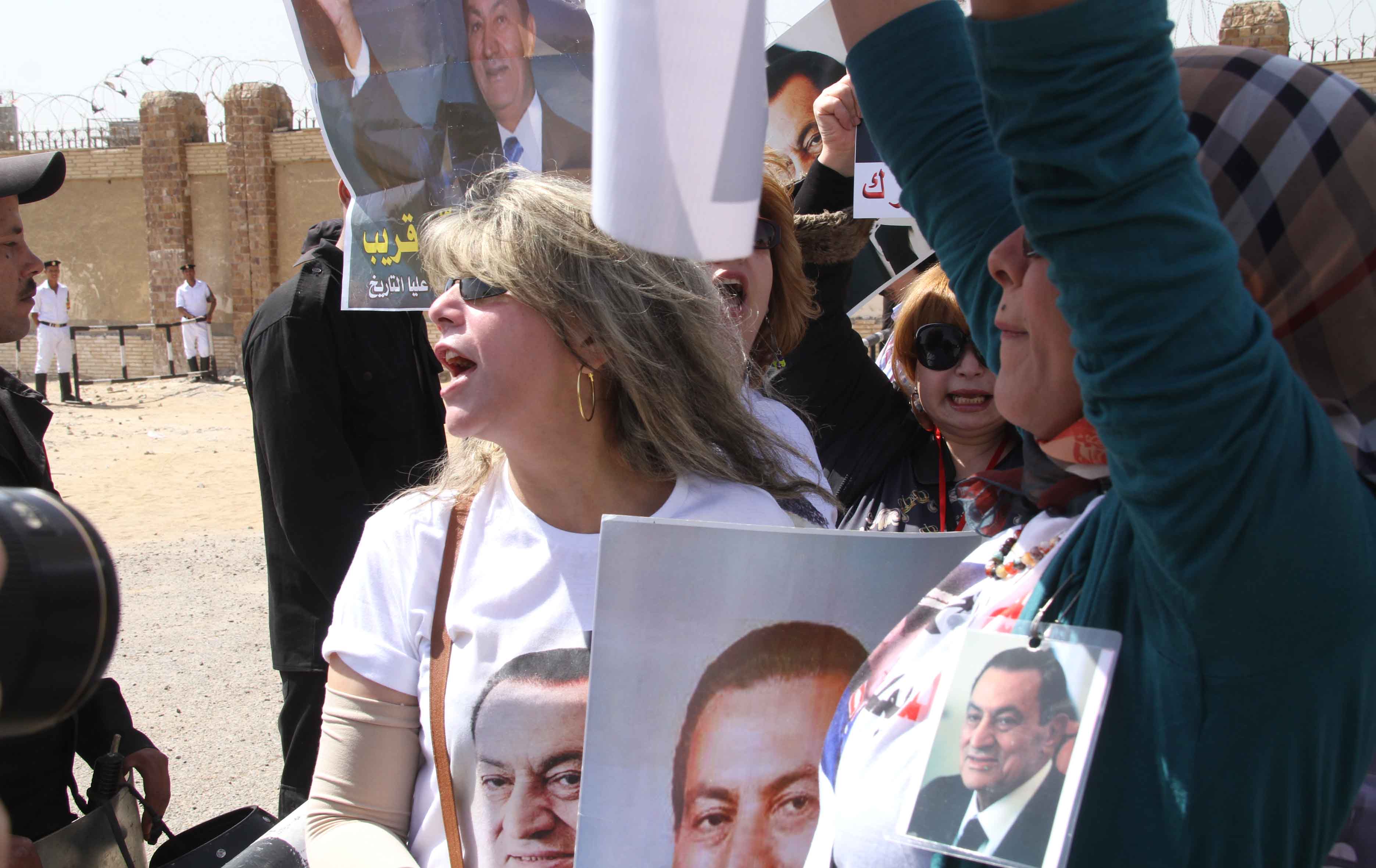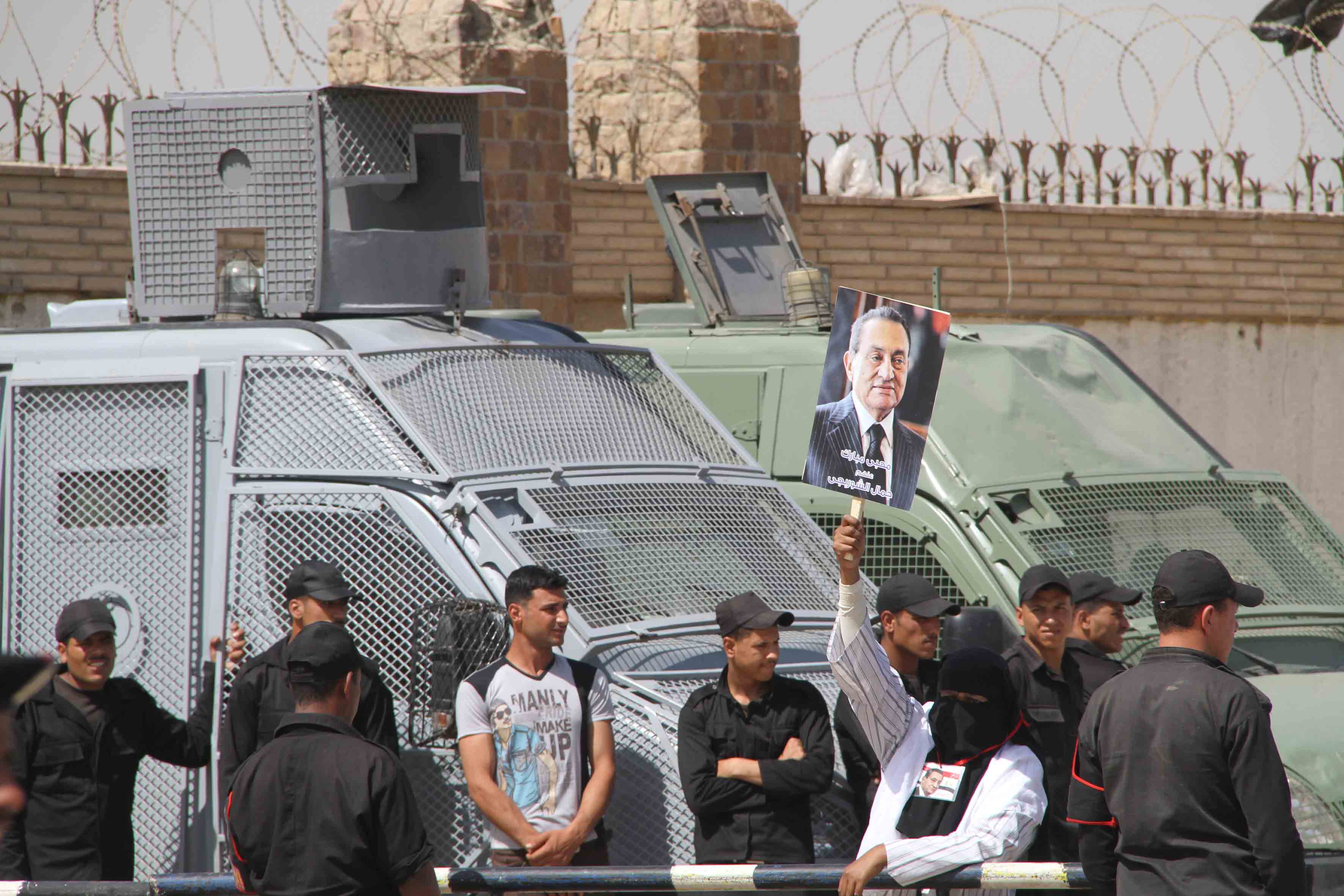 انصار مبارك واهالى الشهداء والمحاميين والصحفيين خارج المحكمة