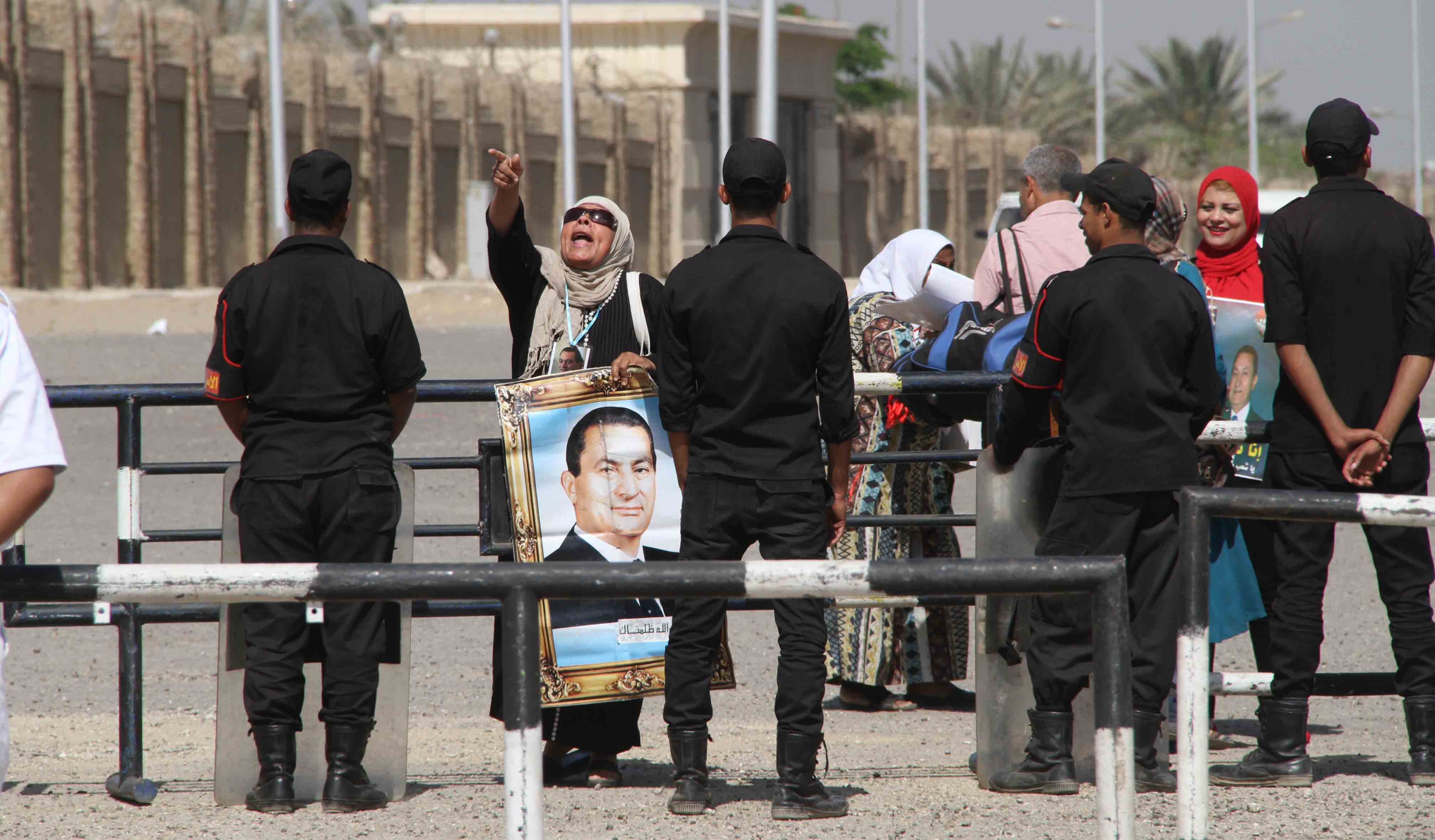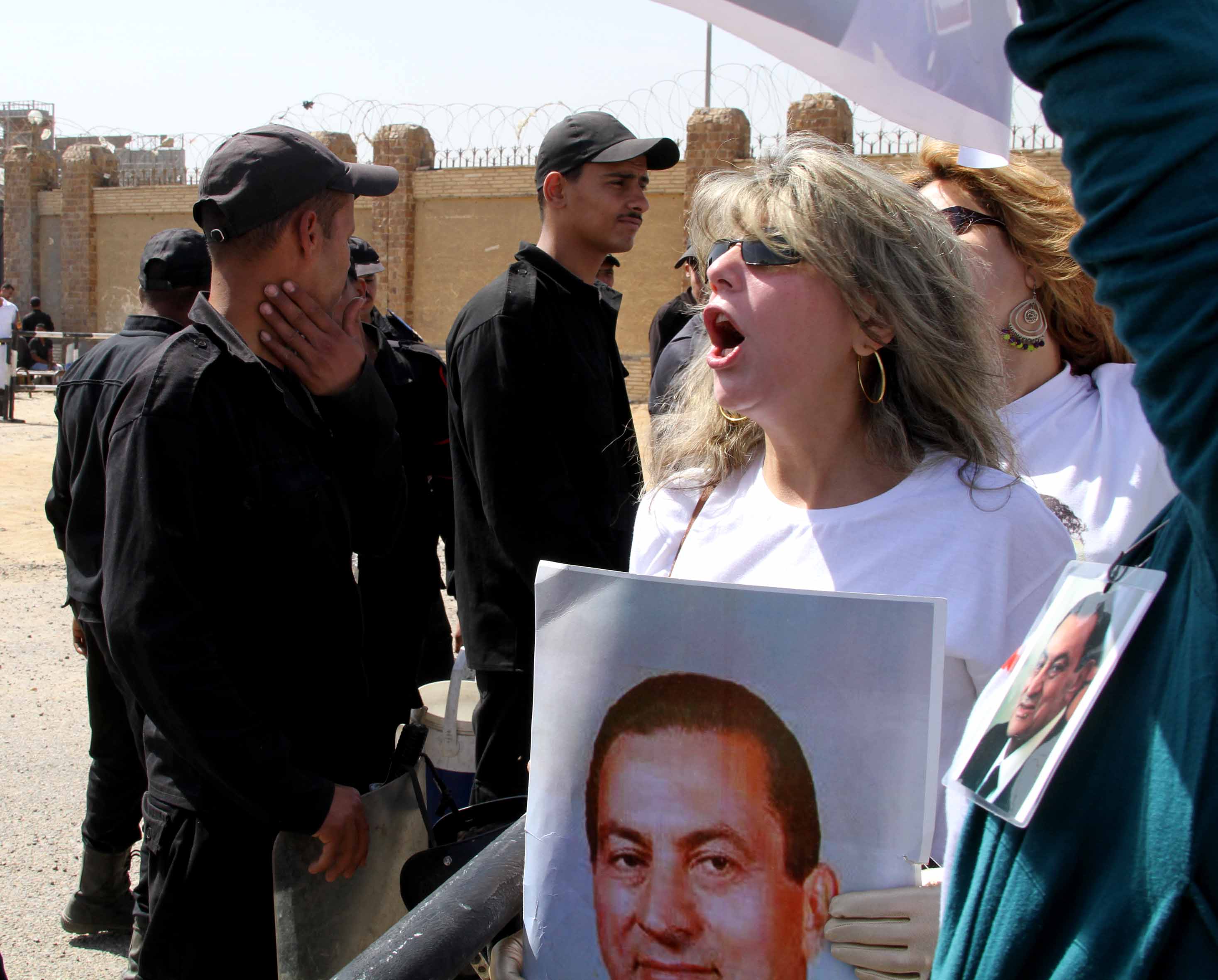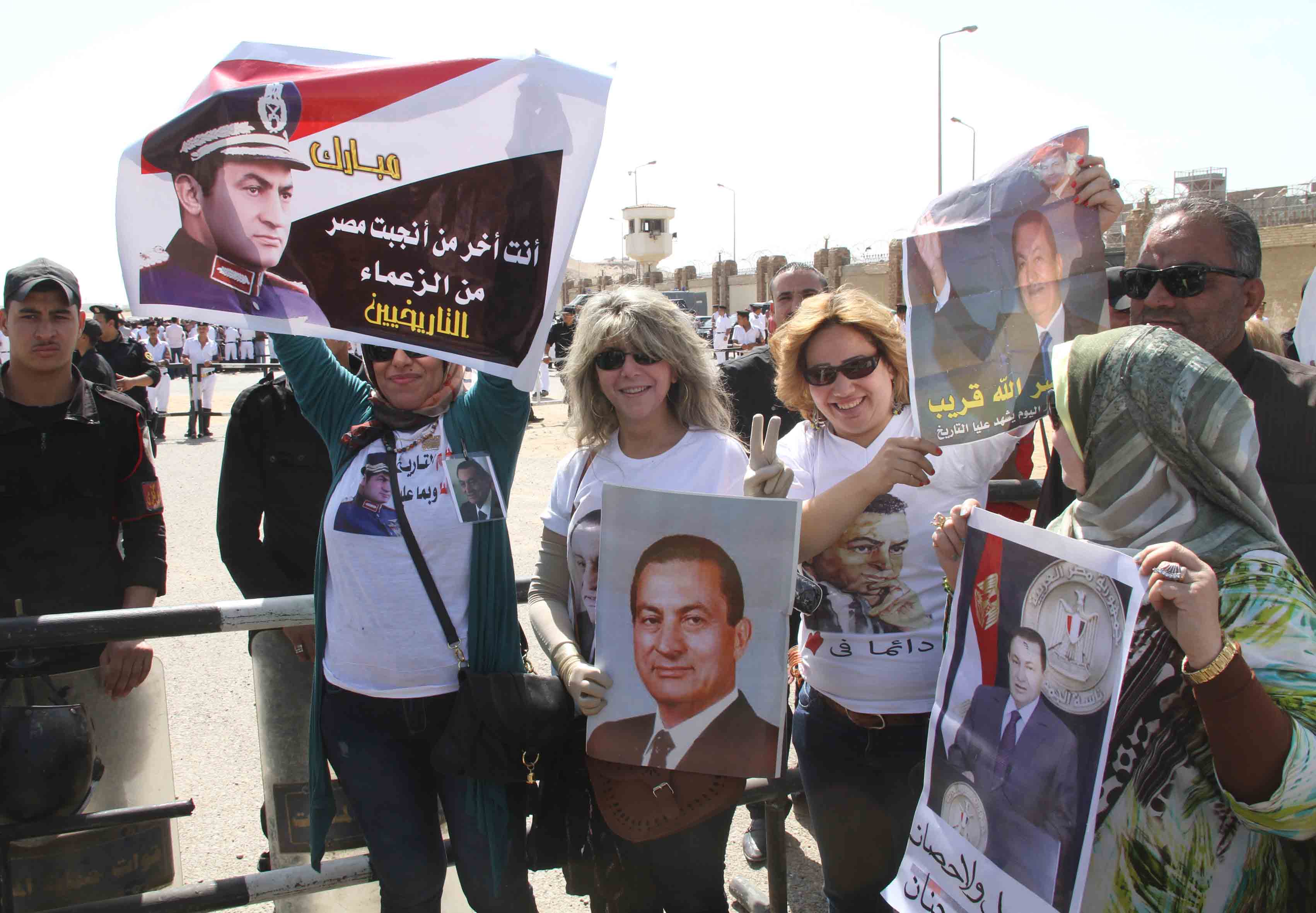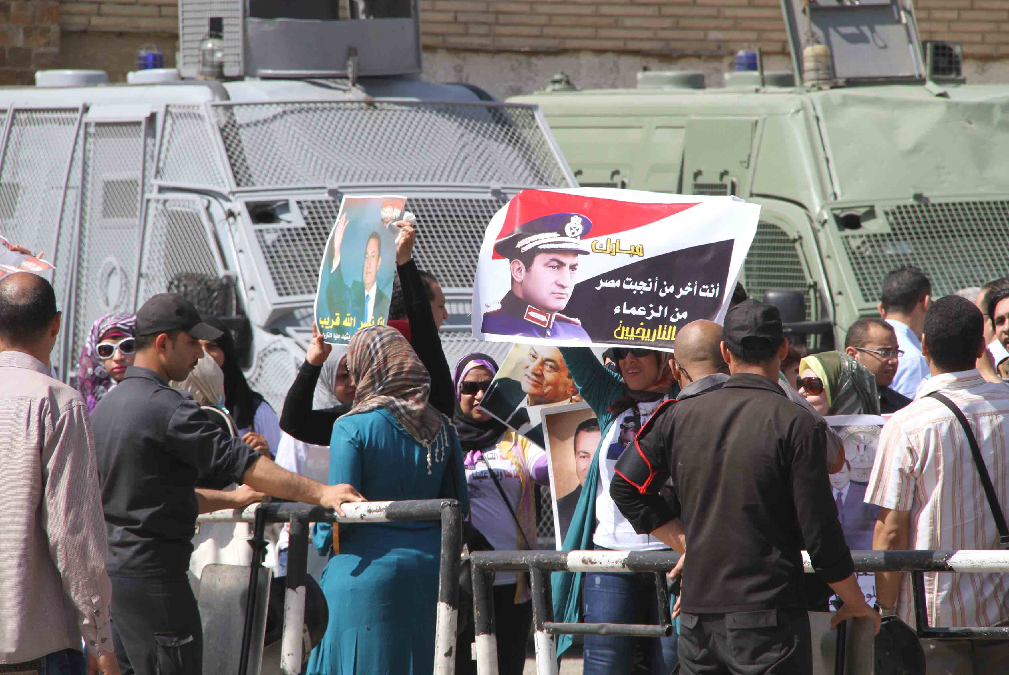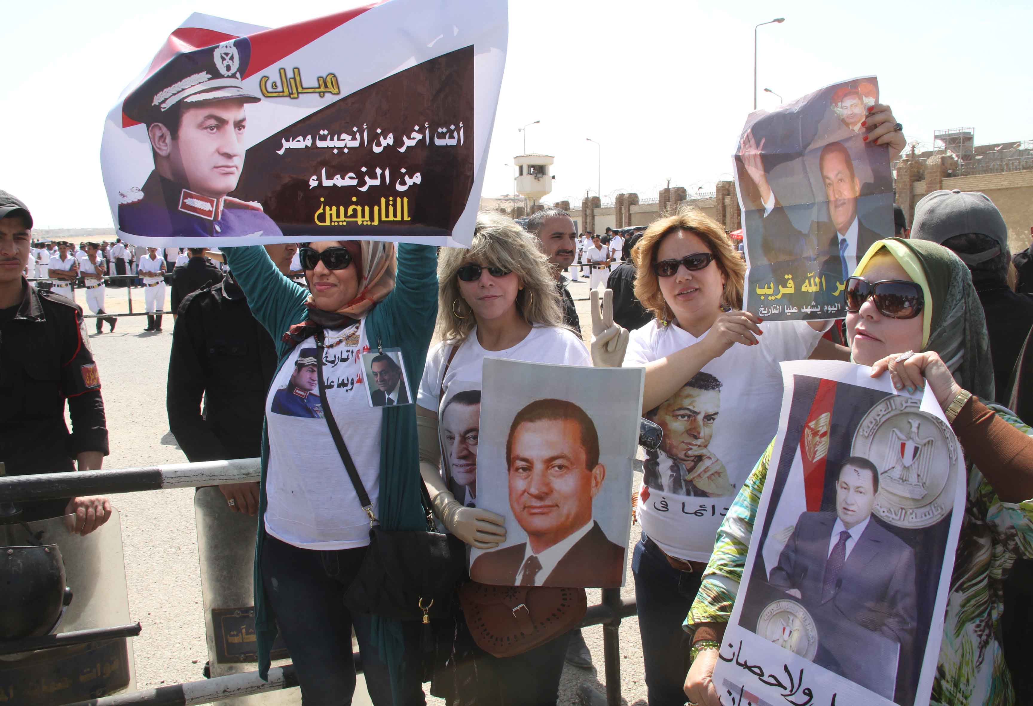 انصار مبارك واهالى الشهداء والمحاميين والصحفيين خارج المحكمة