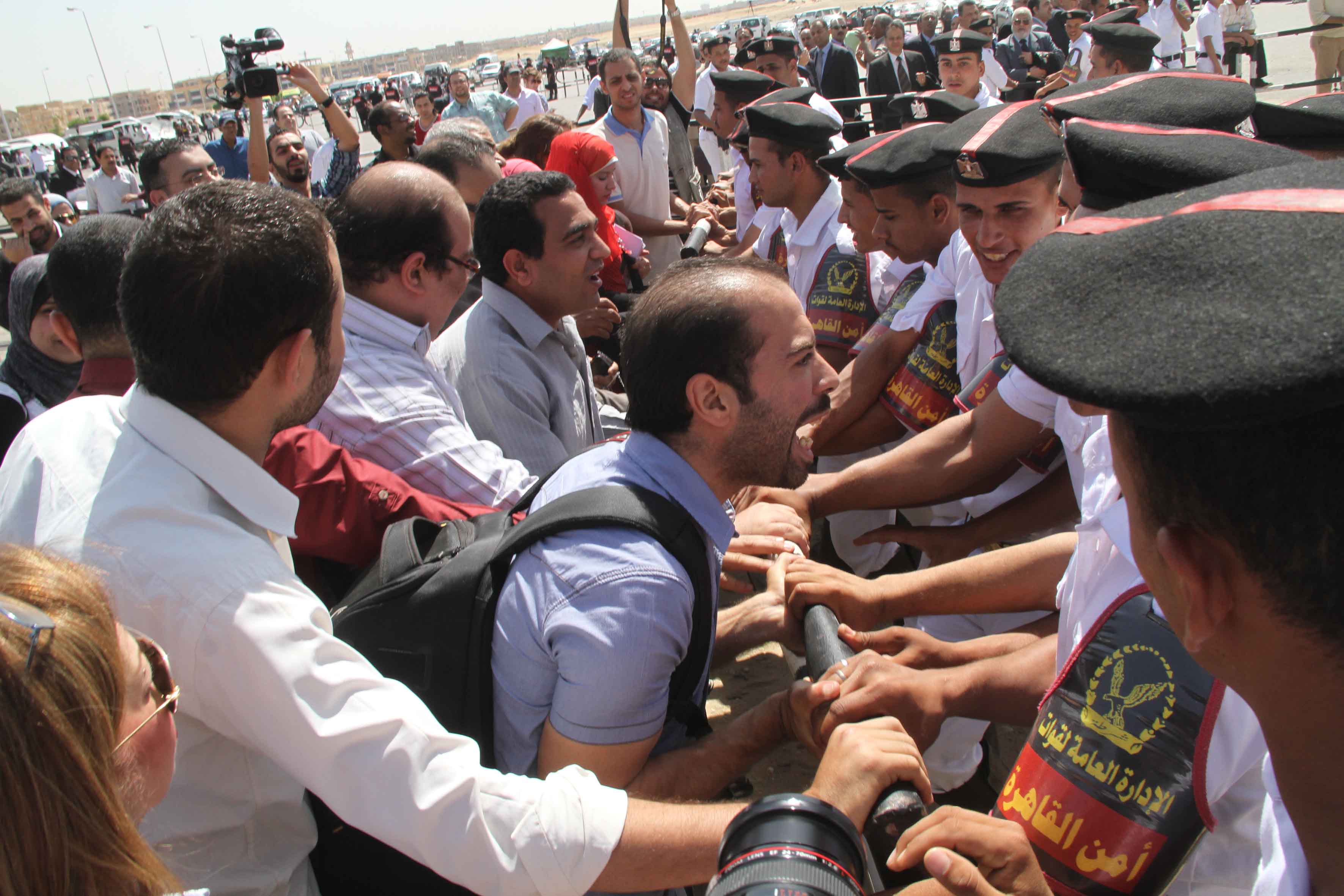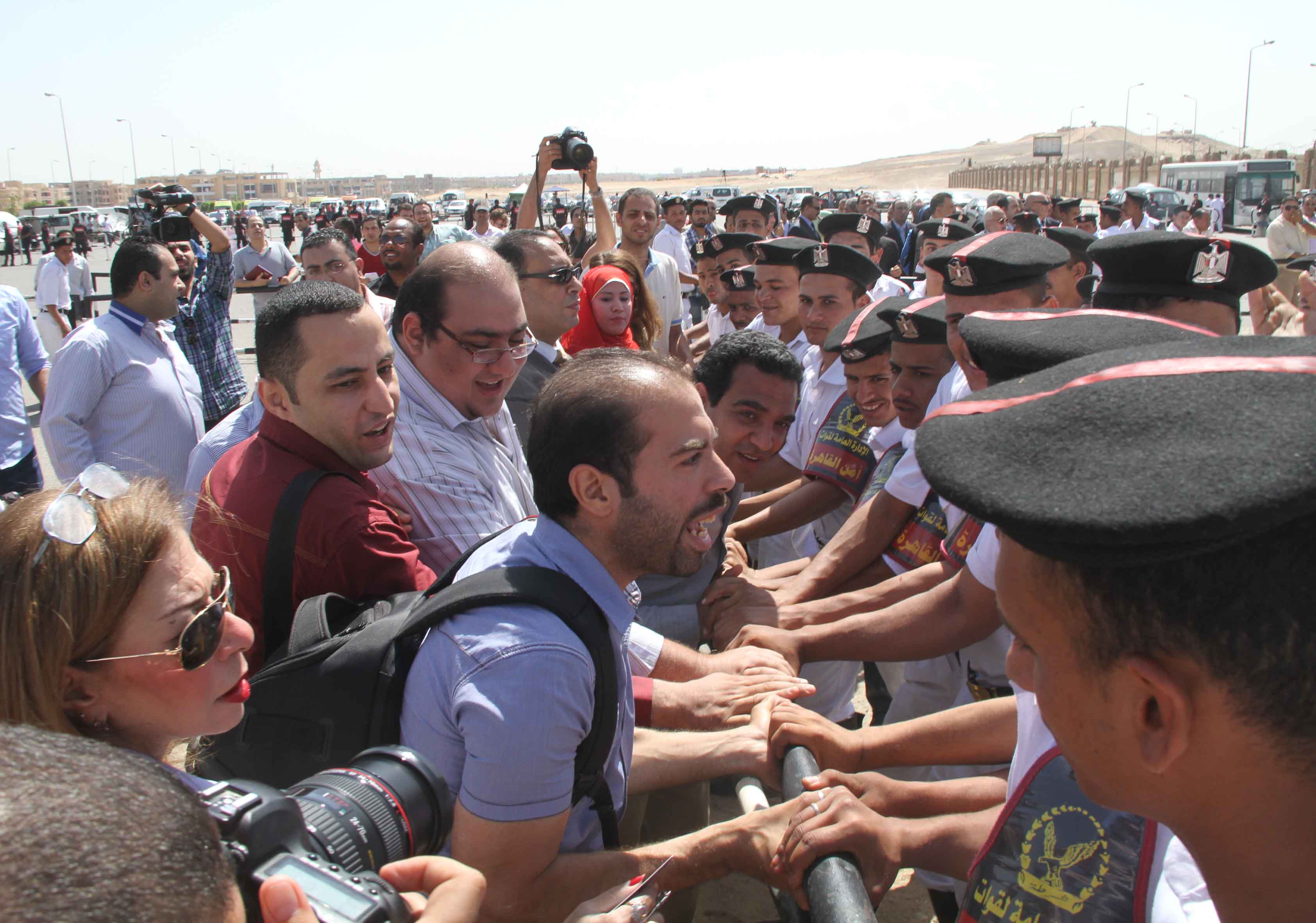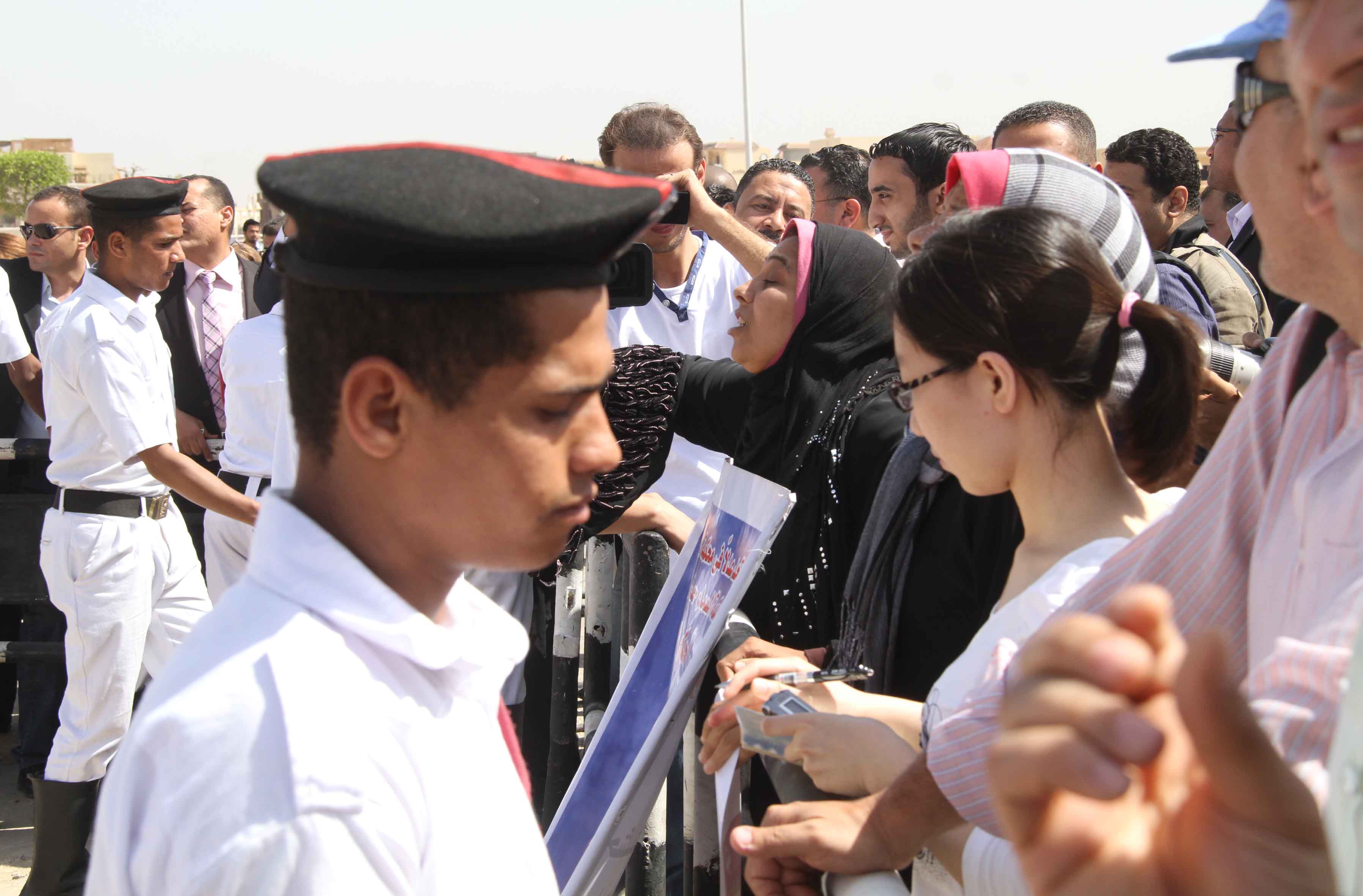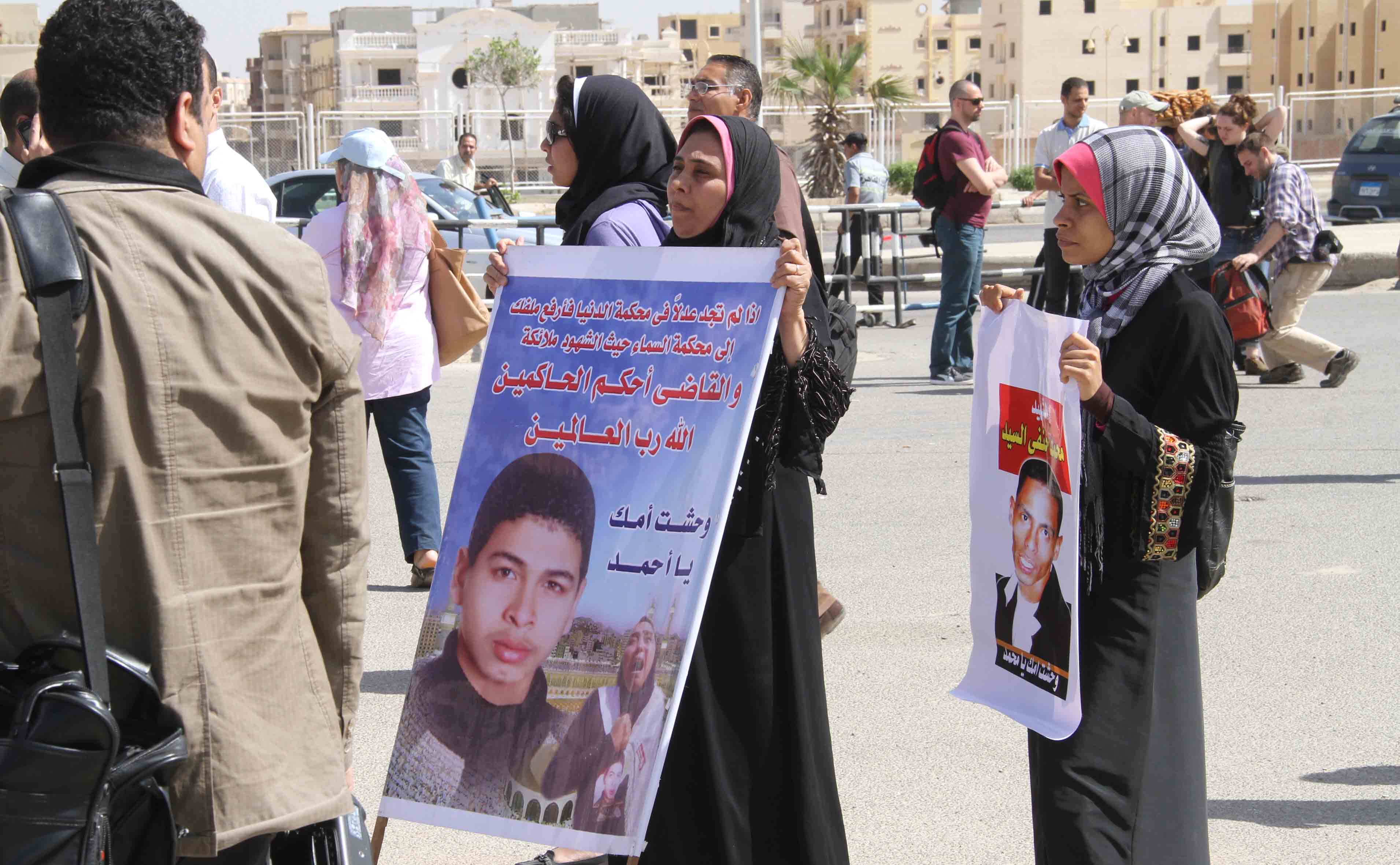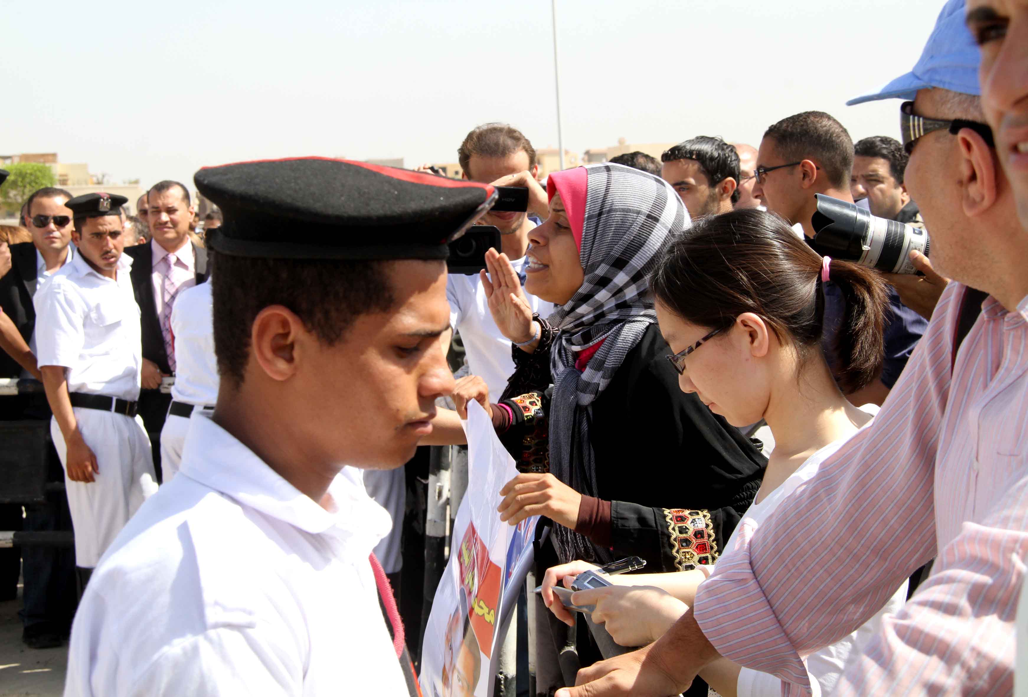 انصار مبارك واهالى الشهداء والمحاميين والصحفيين خارج المحكمة