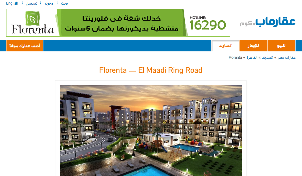 واضاف أن الصالة الجديدة توفر للافراد والمستثمرين علي حد السواء كافة المعلومات عن احدث مشروعات مجموعة ابراج مصر في القاهرة وهو “فلورنتا” والمقام على مساحة 21 ألف متر مربع بموقع متميز على طريق دائري المعادي المؤدي لمنطقة المعادي والأتوستراد. وأضاف ستمكنا الصالة الإلكترونية الجديدة عبر عقار ماب دوت كوم من الوصول إلى عملائنا في كافة أنحاء الجمهورية والمقيمين بالخارج، وخاصة بدول الخليج، وهي شريحة من العملاء تمثل 15% من قاعدة عملاء عقار ماب دوت كوم، كما يمكننا من تعزيز فرصنا التجارية من خلال تسويق مشروعاتنا الإلكترونية، وتجاوز عقبات الزمن والمكان”.