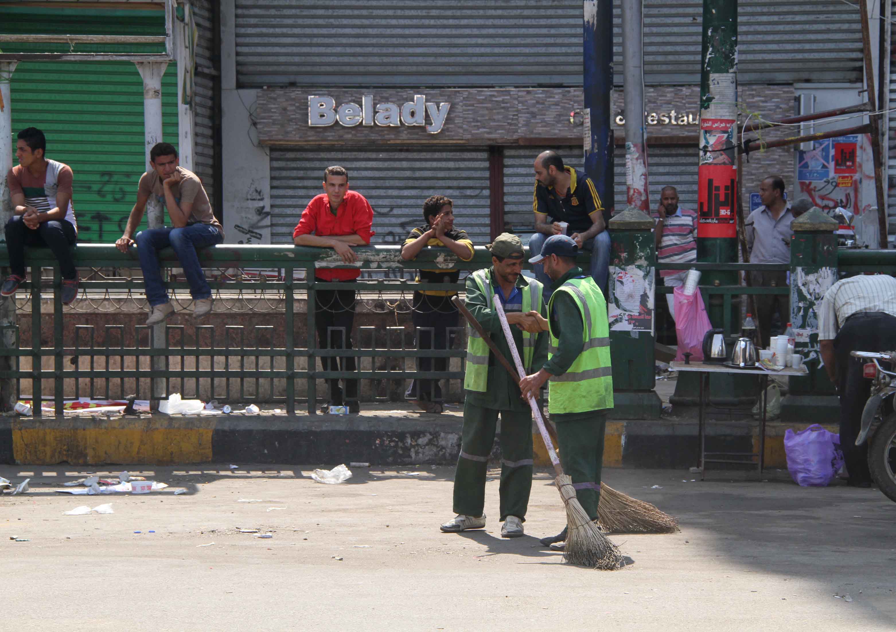 خلت شوارع القاهرة فى الساعات الاولى اليوم من كافة الانشطة التجارية والاقتصادية وانخفض بصورة كبيرة اعداد المارة فى الشوارع وكأن العاصمه قد هجرها اهلها وخاصة مناطق وسط البلد والتى كانت تعج بالحركة والنشاط فى مثل هذا الوقت من اليوم حيث اغلقت كافة المحلات ابوابها وكذلك المراكز التجارية وفرضت اجراءات حمائية ضخمه على البنوك التى اغلقت نصف ابوابها تحسبا لاى اعمال بلطجة او عنف واصبحت شبه خاوية من العملاء.