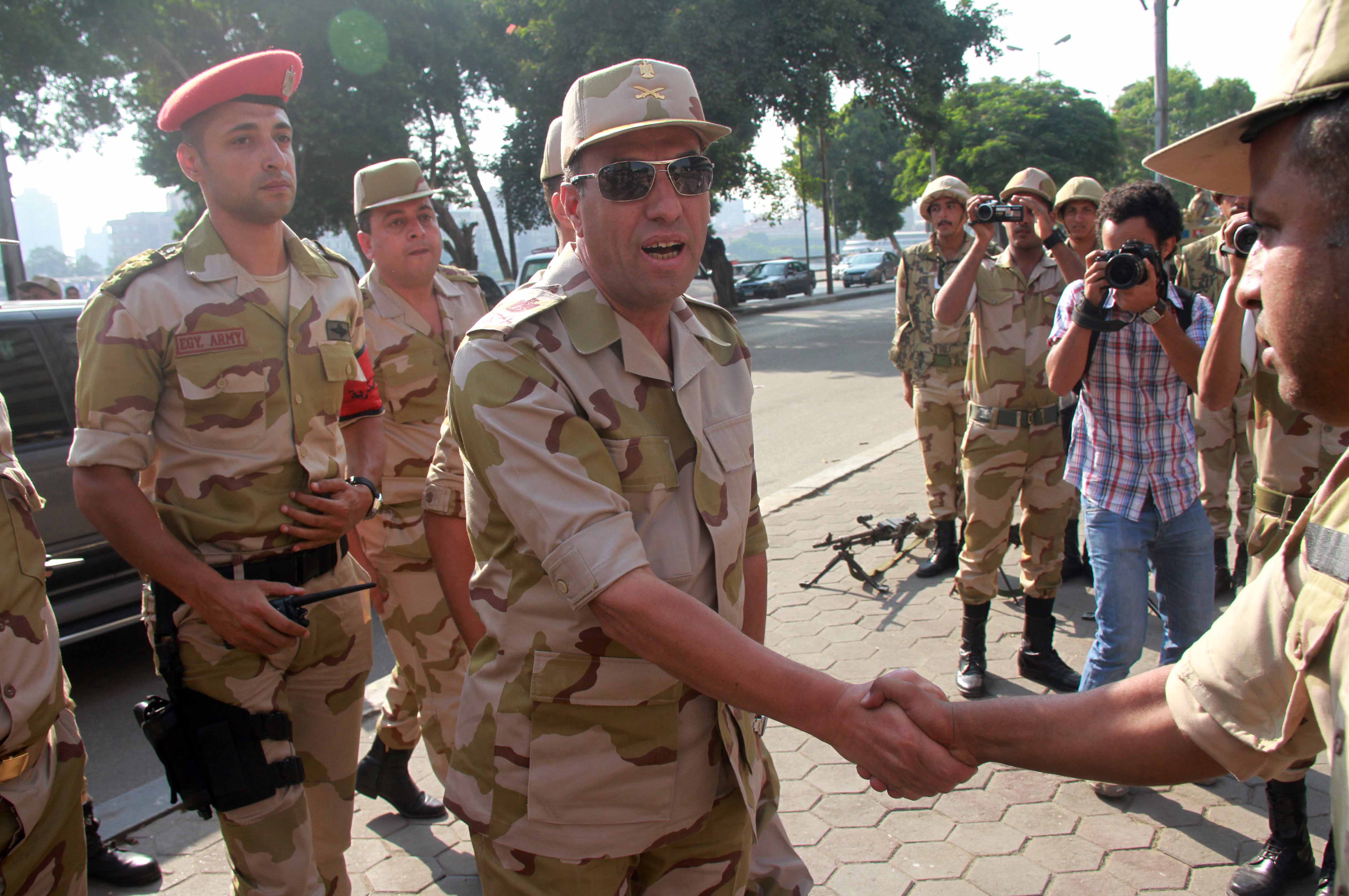 اللواء أركان حرب توحيد توفيق عبد السميع قائد المنطقة المركزية يتفقد قوات التأمين فى ماسبيرو