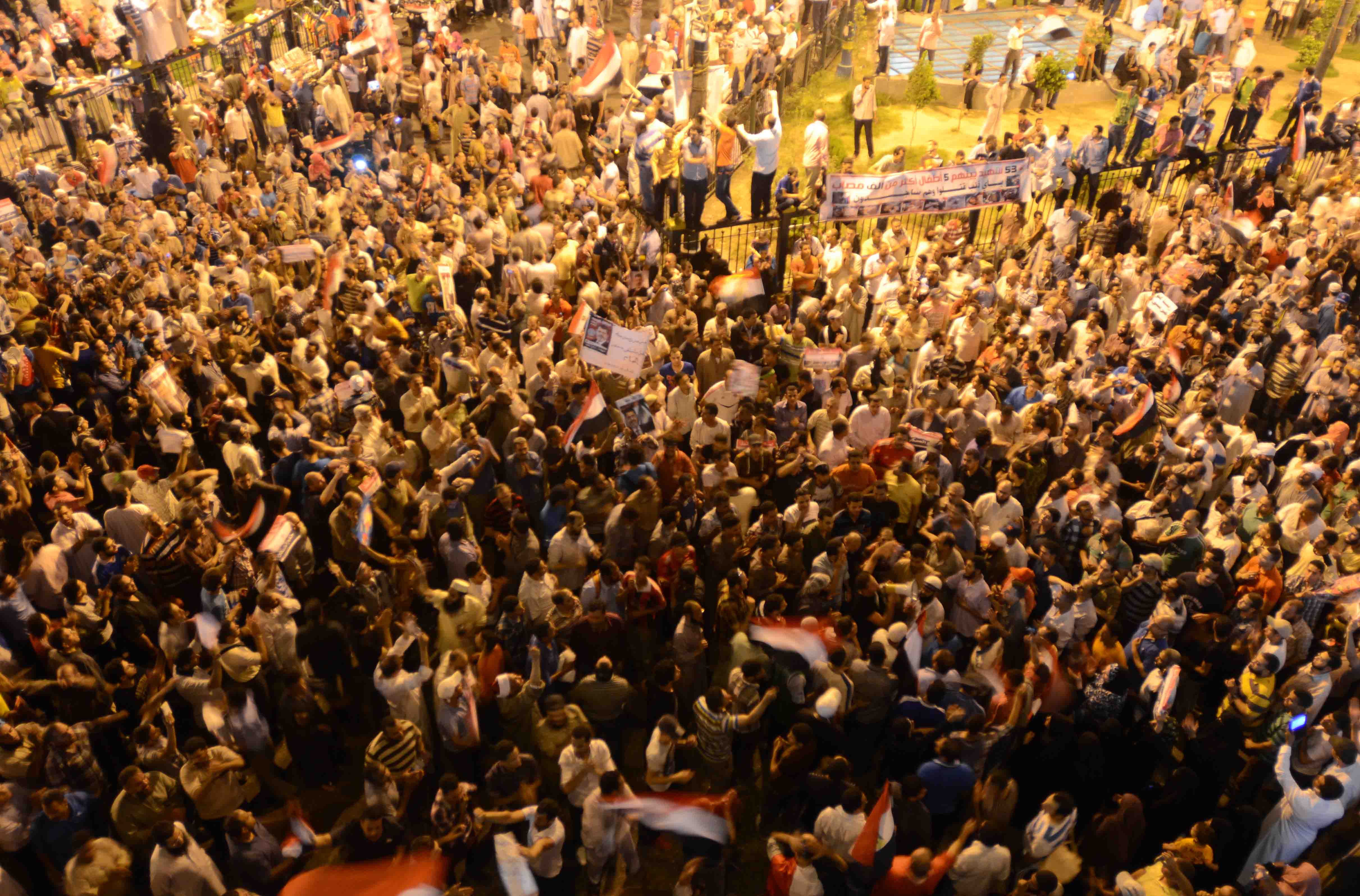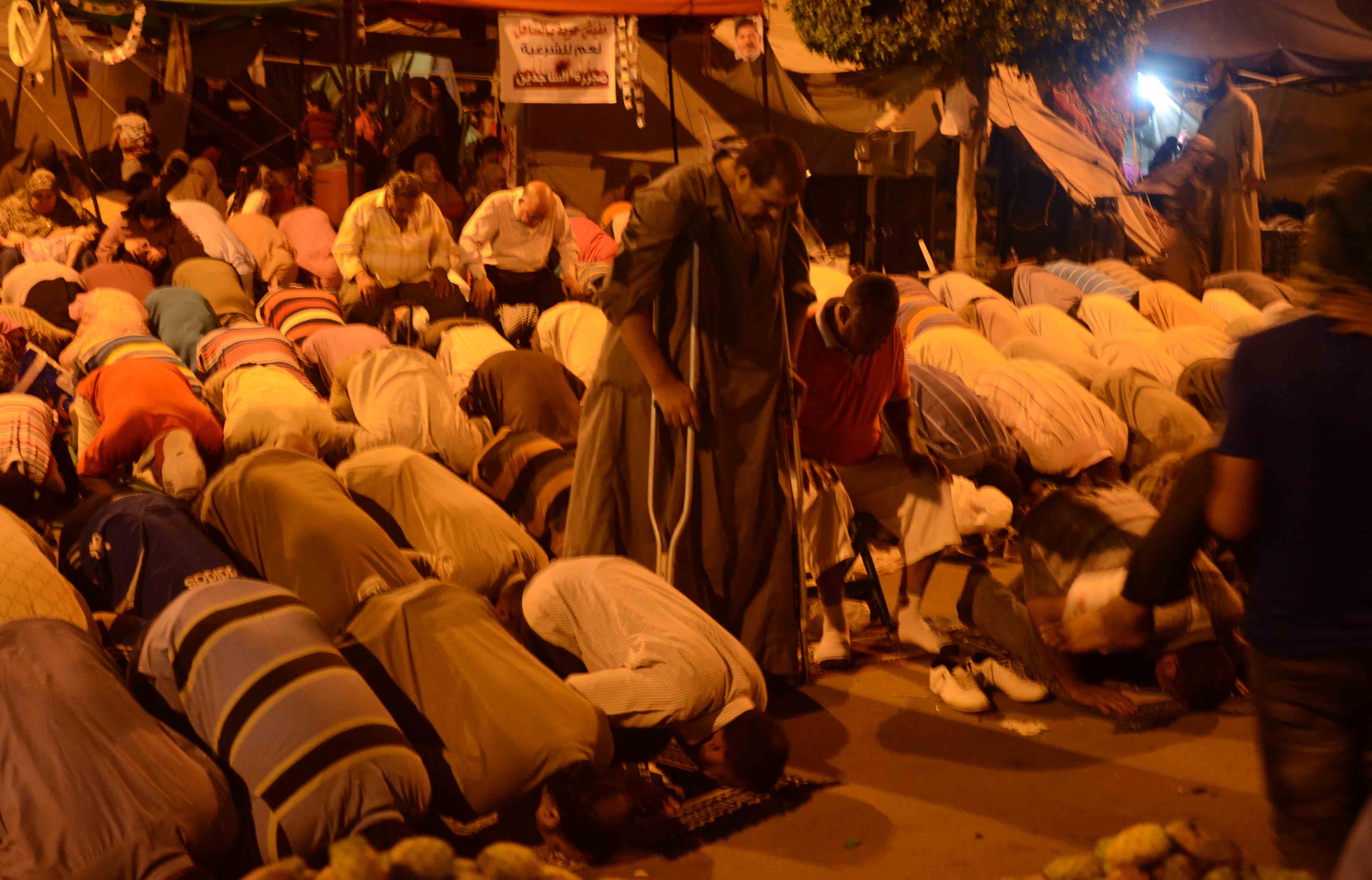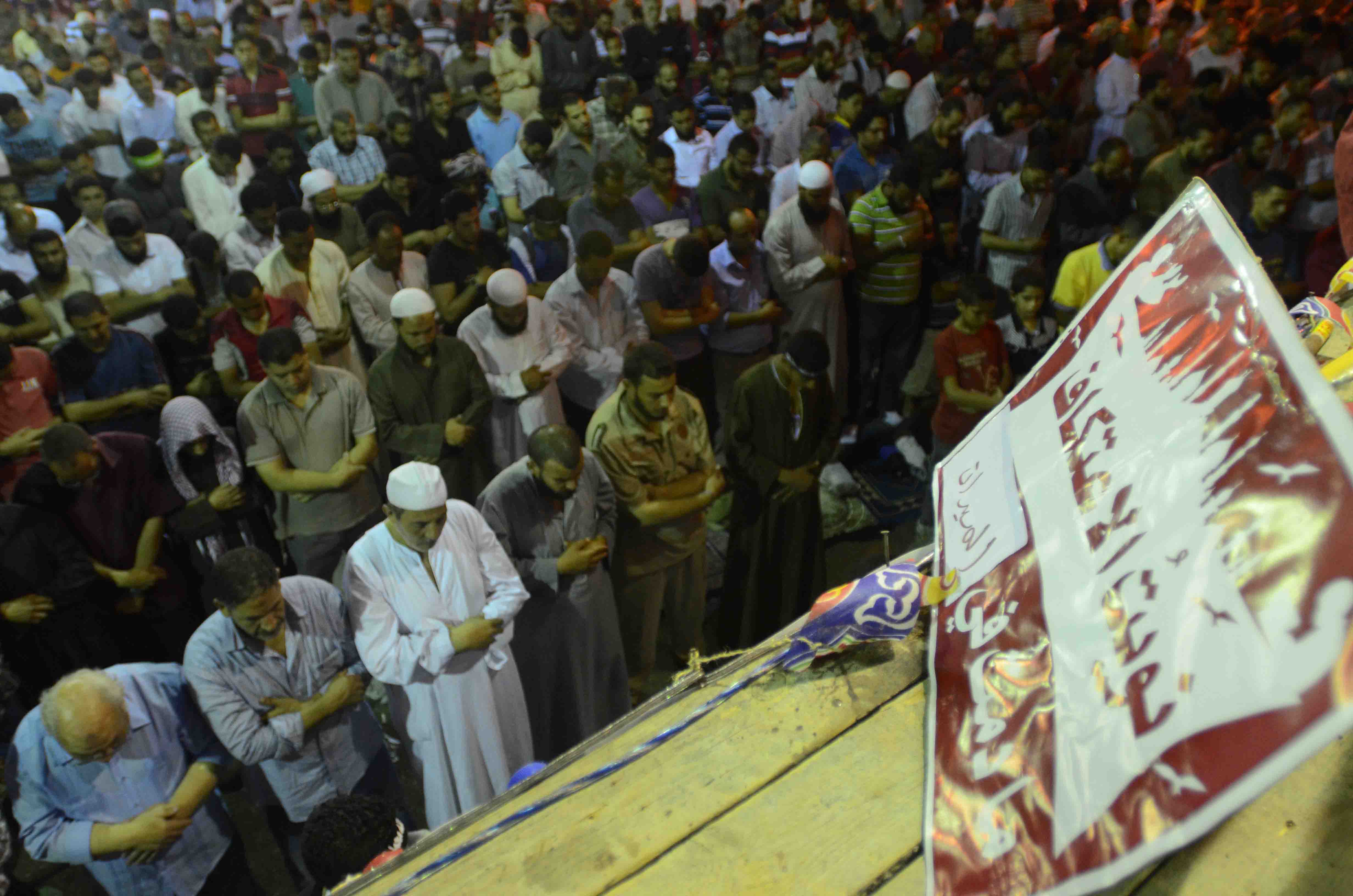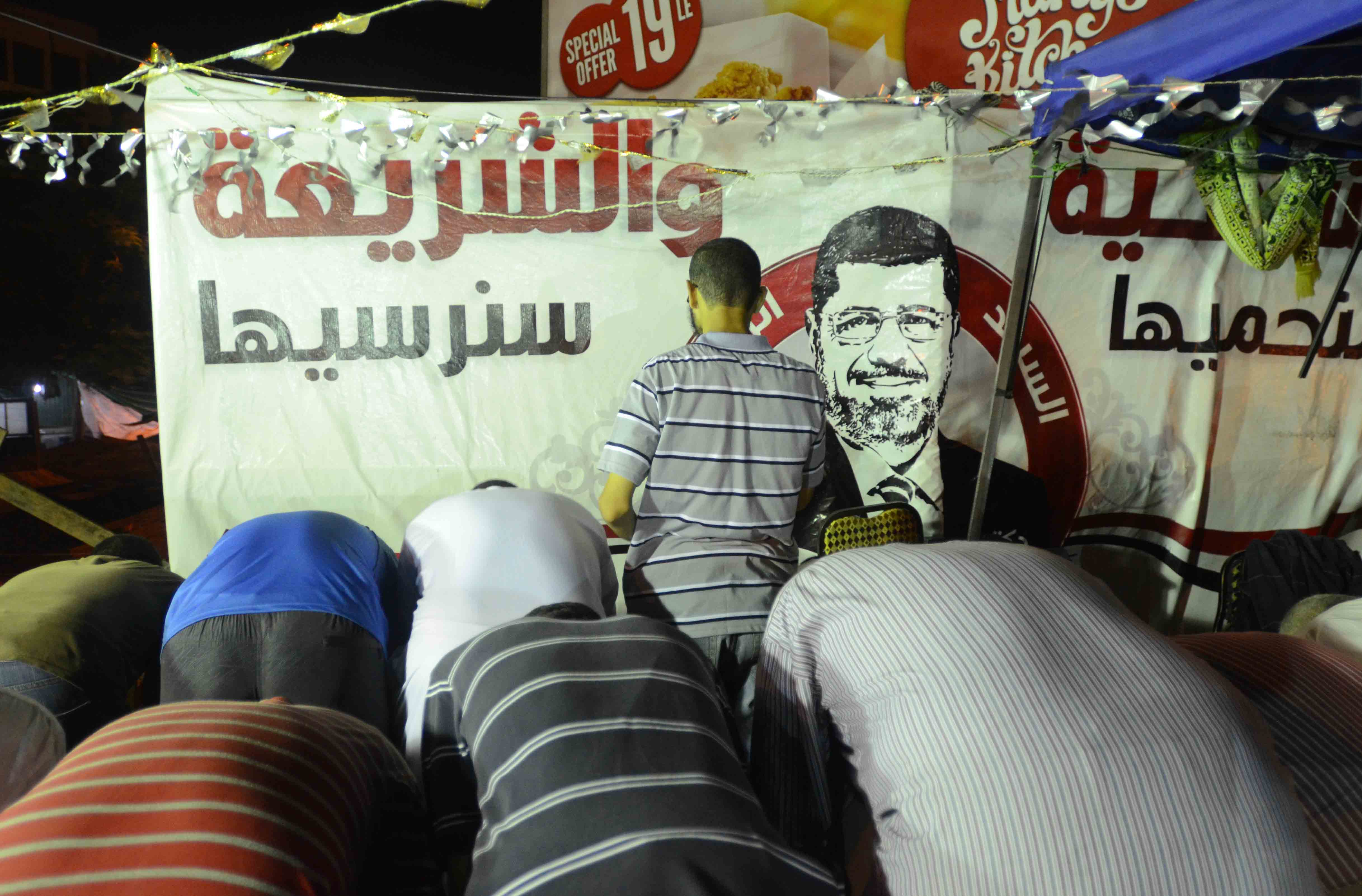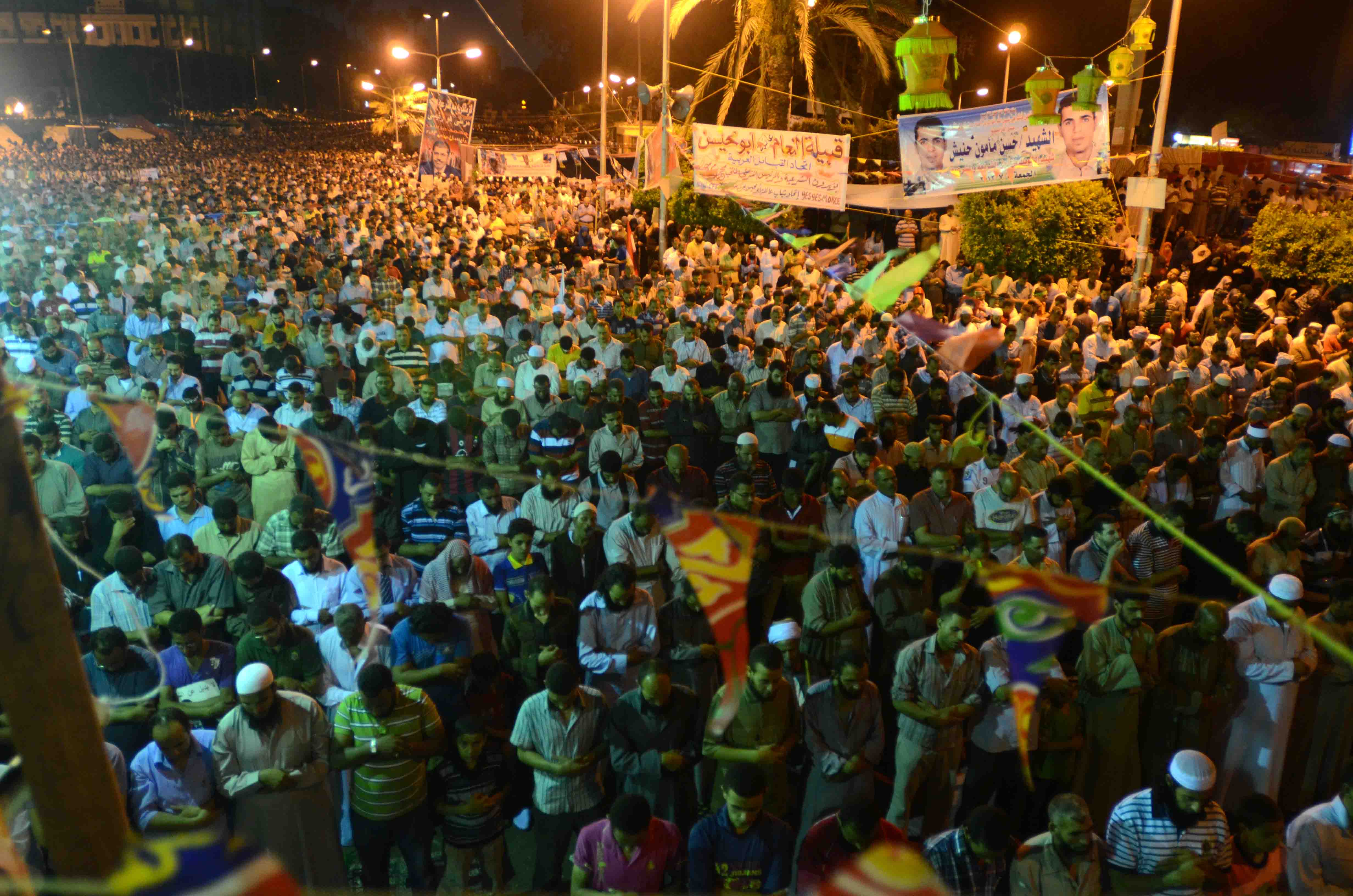 مؤيدى مرسى يصلون العشاء والقيام امام جامعة القاهرة