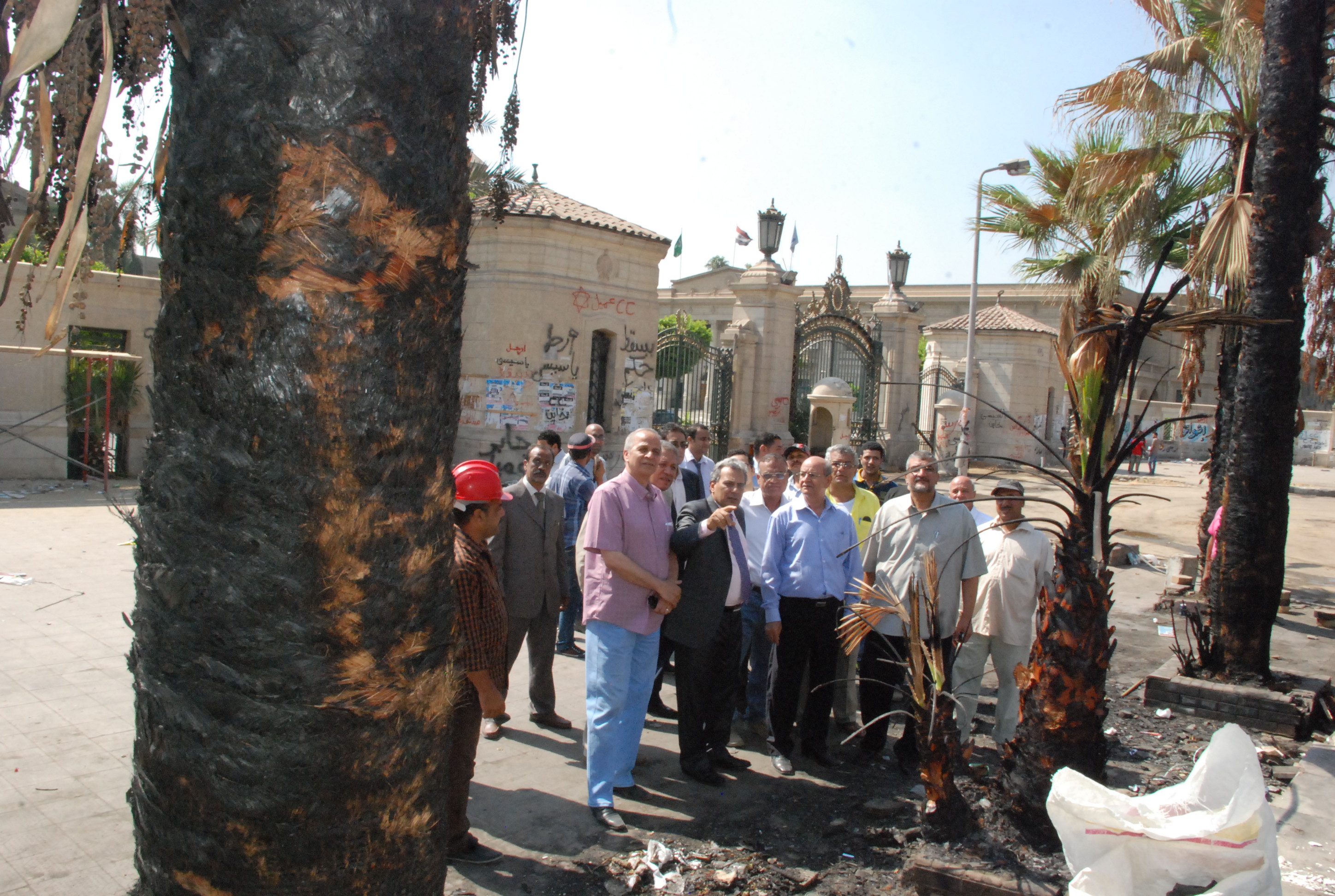 وأكد الدكتور على عبد الرحمن أن التقرير الذى أعدته وزارة الزراعة بفحص حالة النخيل التاريخى والأثرى والذى أحترق خلال الأيام الماضية إنتهى إلى ضرورة إزالة عدداً من أشجار النخيل لإحتراقه تماماً وزراعة نفس الأشجار من نفس الفصيلة والنوع بالإضافة إلى علاج باقى الأشجار مشيراً إلى أن كلية الزراعة لديها هذا النوع النادر من أشجار النخيل كما يتم التنسيق مع وزارة الزراعة لإصلاح التلفيات التى حدثت بحديقة الأورمان مع إعداد تقرير عن حالة الأشجار النادرة بالحديقة وإصلاح التالف منها والعمل على سرعة فتحها أمام الجمهور بإعتبارها من الحدائق التى تشهد إقبالاً كبيراً من المواطنين .