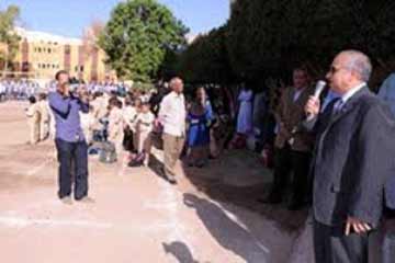 جاء ذلك خلال حضور المحافظ لطابور الصباح بمدرسة عمار بن ياسر للتعليم الأساسي المشتركة في أول أيام العام الدراسي الجديد وقيامه بجولة على عدد من مدارس المحافظة منها مدرسة السلام الخاصة للغات والأقصر الثانوية بنات.