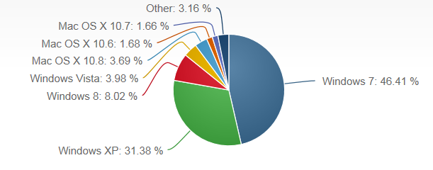 يأتي هذا في الوقت الذي بلغت فيه الحصة السوقية لنظام “ويندوز 7” 46.41% ارتفاعا من 45.63% في الشهر السابق، وهو ما أتي على حساب “ويندوز اكس بي” الذي تراجعت حصته إلى 31.38% من 33.66% في أغسطس