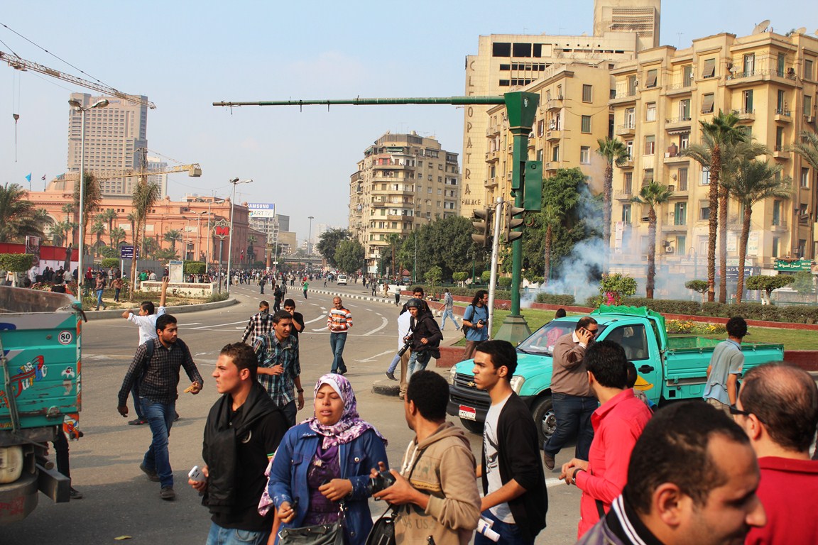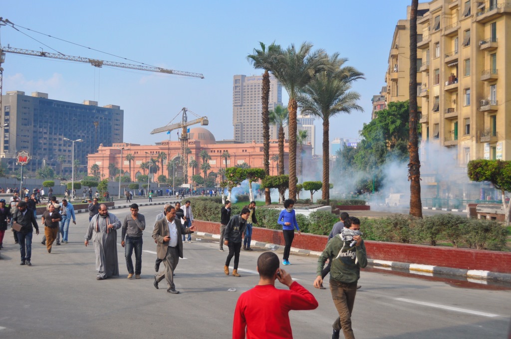 اشتباكات ميدان التحرير بين مؤيدى ومعارضى السيسي والقاء الامن قنابل مسيلة للدموع