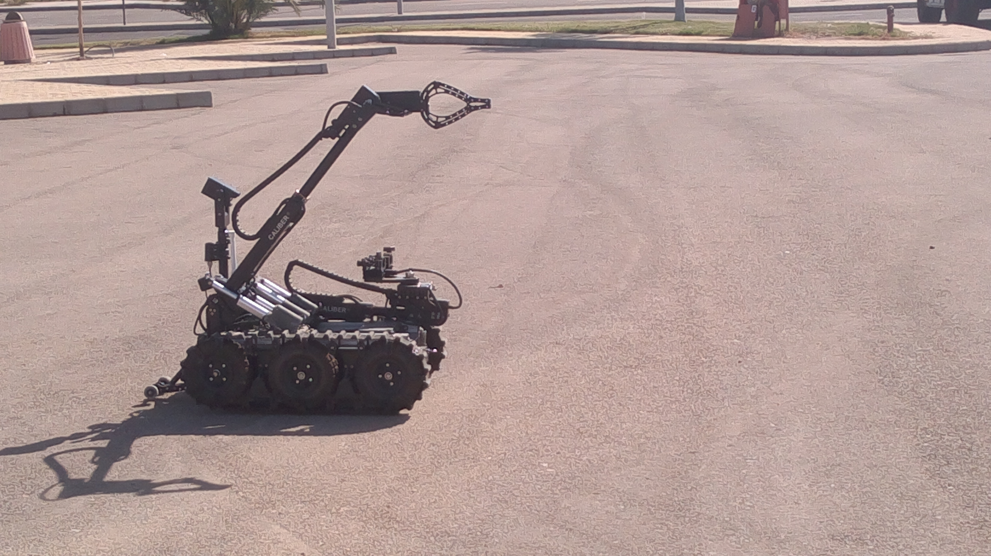 و بعد ذلك تم التعامل بالريبوت مع الجسم المشتبه فيه و تم نقله الى البوتقه و تم عمل تمشيط للمناطق المحيطه من قبل الكلاب .