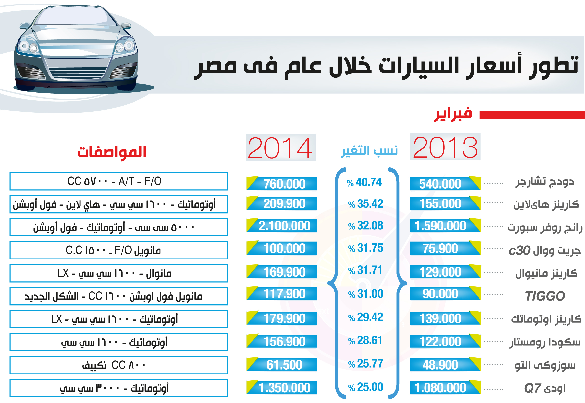 وفيما يلى انفوجراف لاعلى السيارات ارتفاعا فى الاسعار :