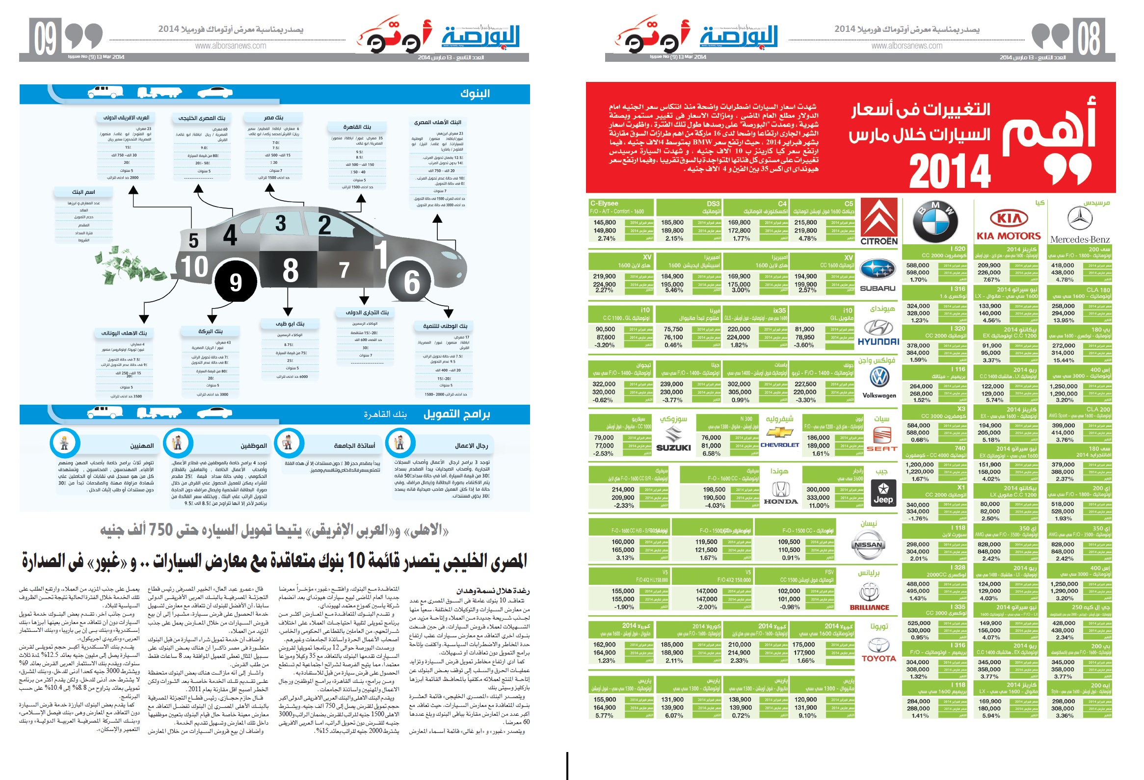 تستعرض البورصة اهم التغييرات فى اسعار السيارات خلال مارس 2014 ..وافضل برامج تمويل لشراء السيارة فى ملحق خاص يصدر بمناسبة معرض اوتوماك فورميلا 2014 .