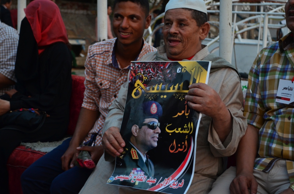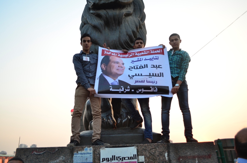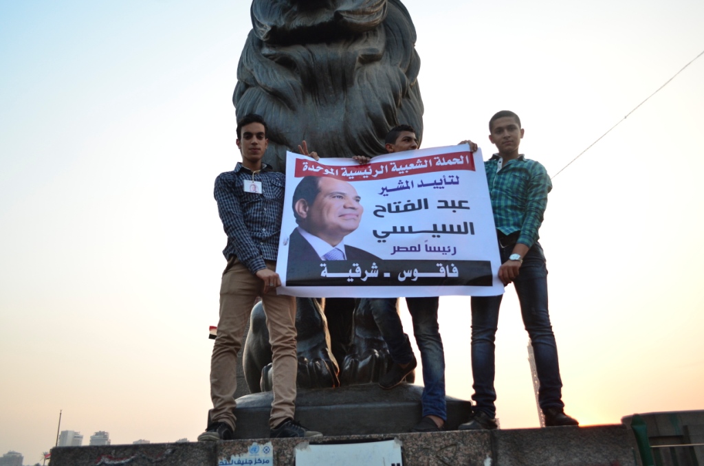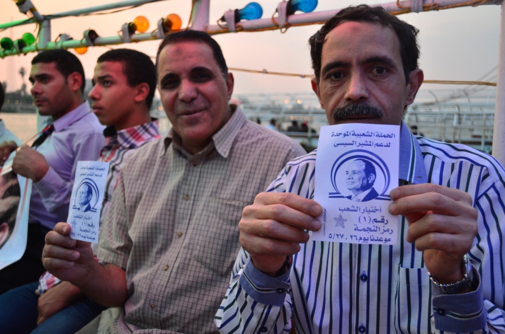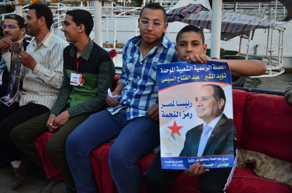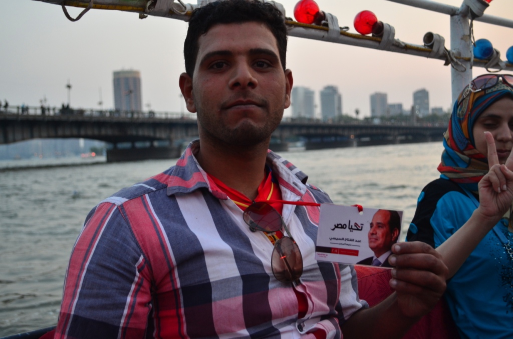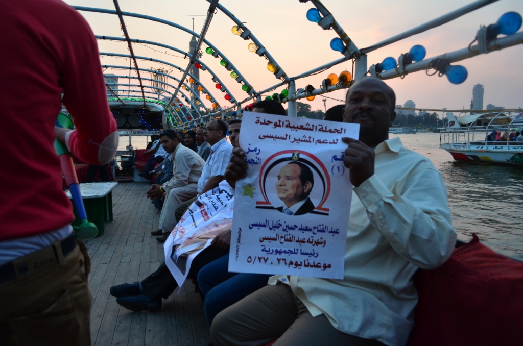 مؤيدو المشير السيسى يستقلون مركب نيلية بعد تنظيم سلسلة بشرية بكوبرى قصر النيل