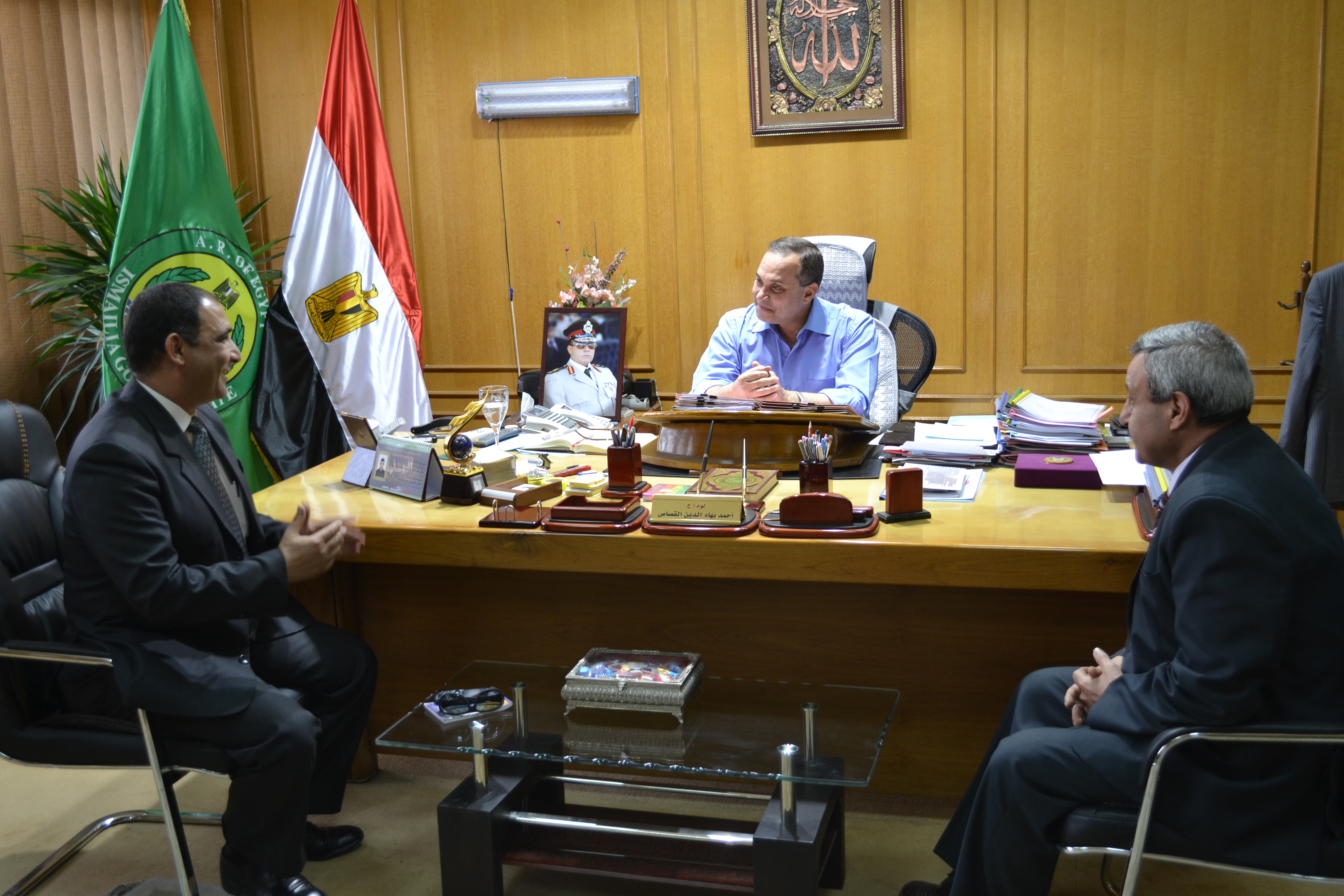 أستقبل اللواء أحمد بهاء الدين القصاص محافظ الاسماعيلية بمكتبه السيد خالد فاروق ممثلا عن قطاع اداراة الأزمات بمجلس الوزراء وفى حضور السيد سامى حمودة مدير الادارة المركزية لتكنولوجيا المعلومات بالمحافظة تم بحث ومناقشة الموقف التنفيذى و متابعة ومراجعة كافة التجهيزات والاستعدادات التى أتخذتها المحافظة استعدادا للانتخابات الرئاسية القادمة.