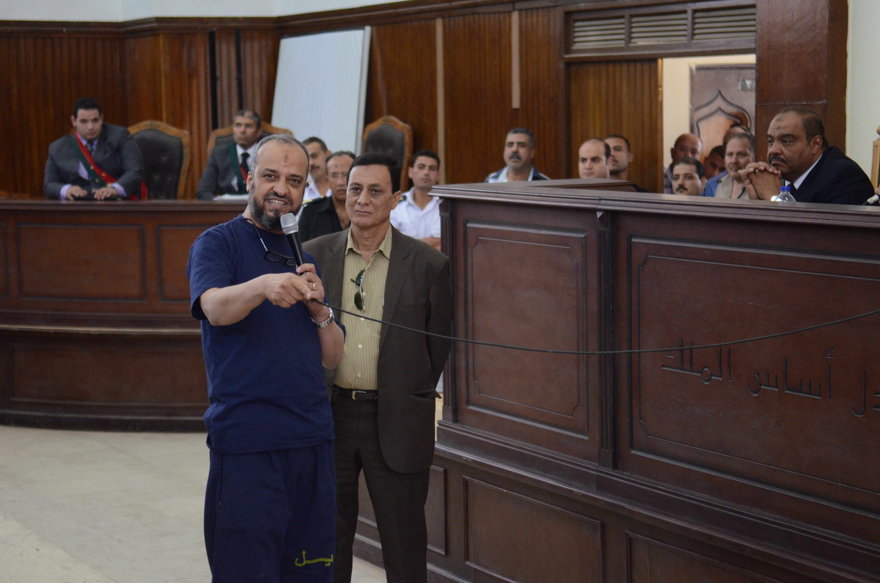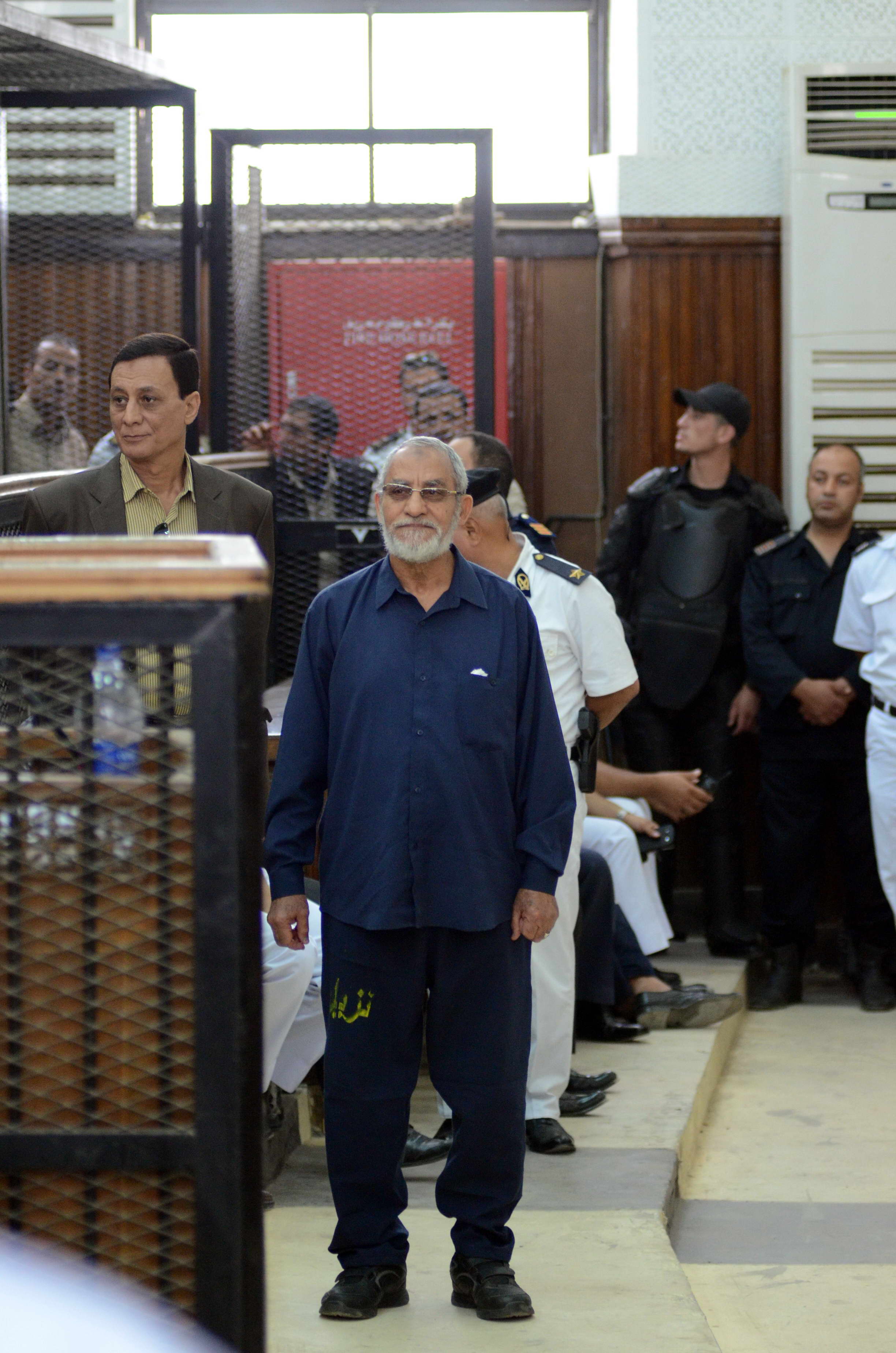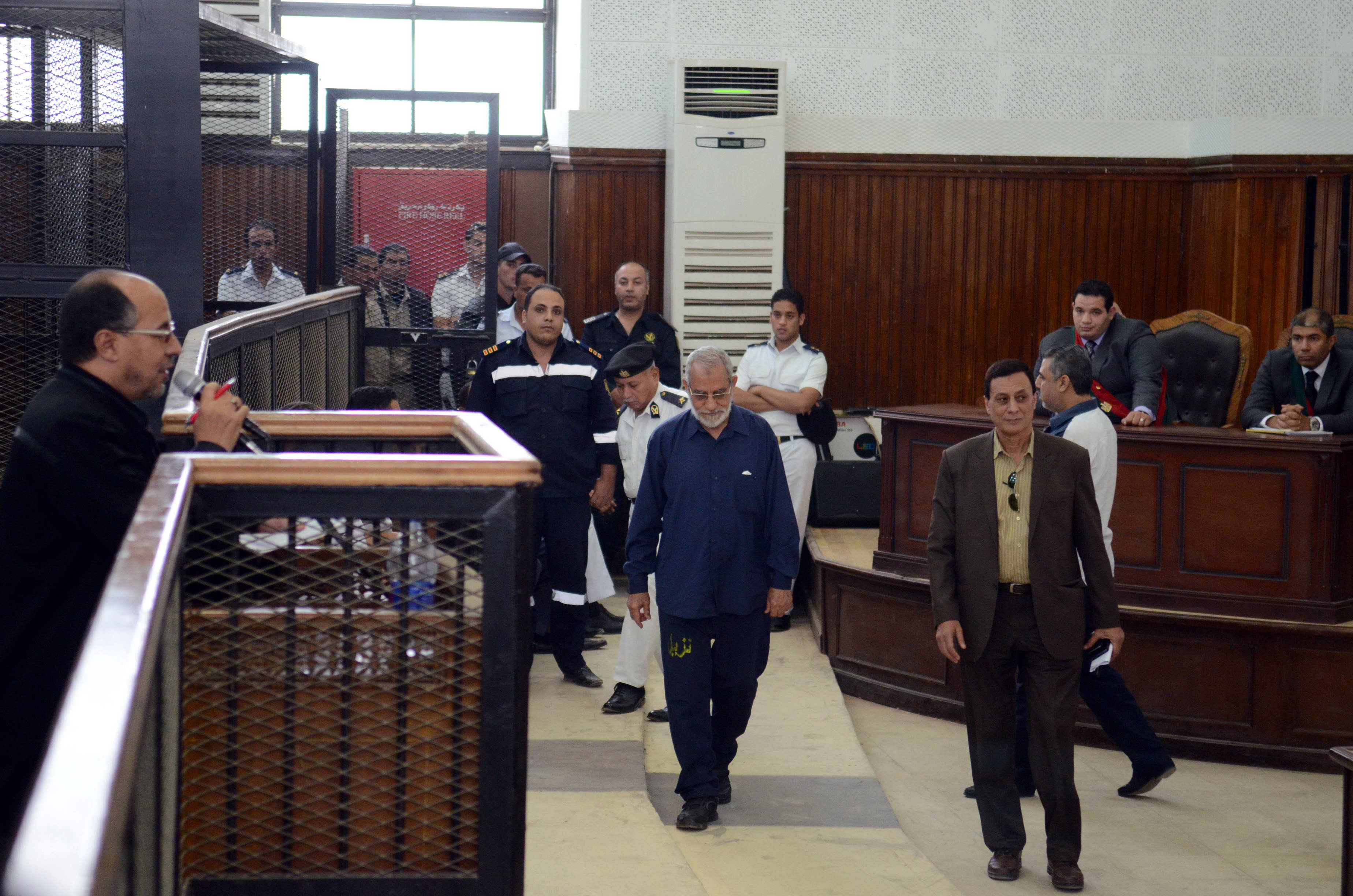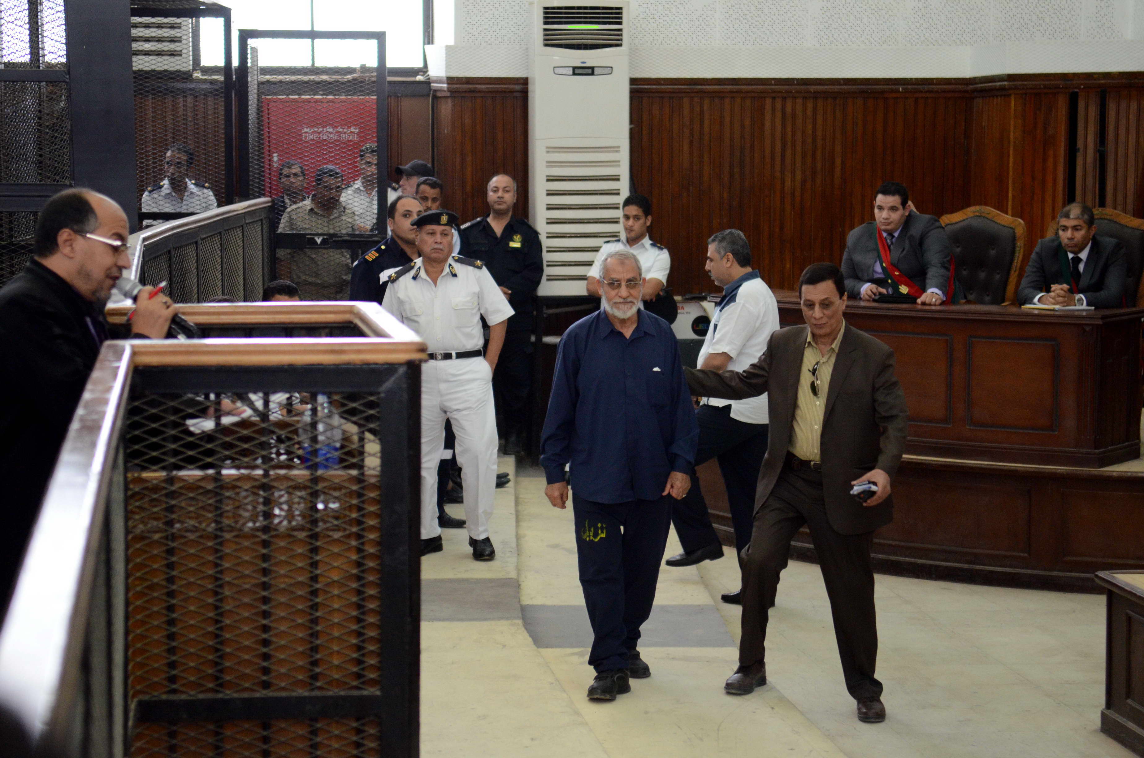 محاكمة المرشد العام محمد بديع و البلتاجى و صفوت حجازى بمعهد امناء الشرطة بطره