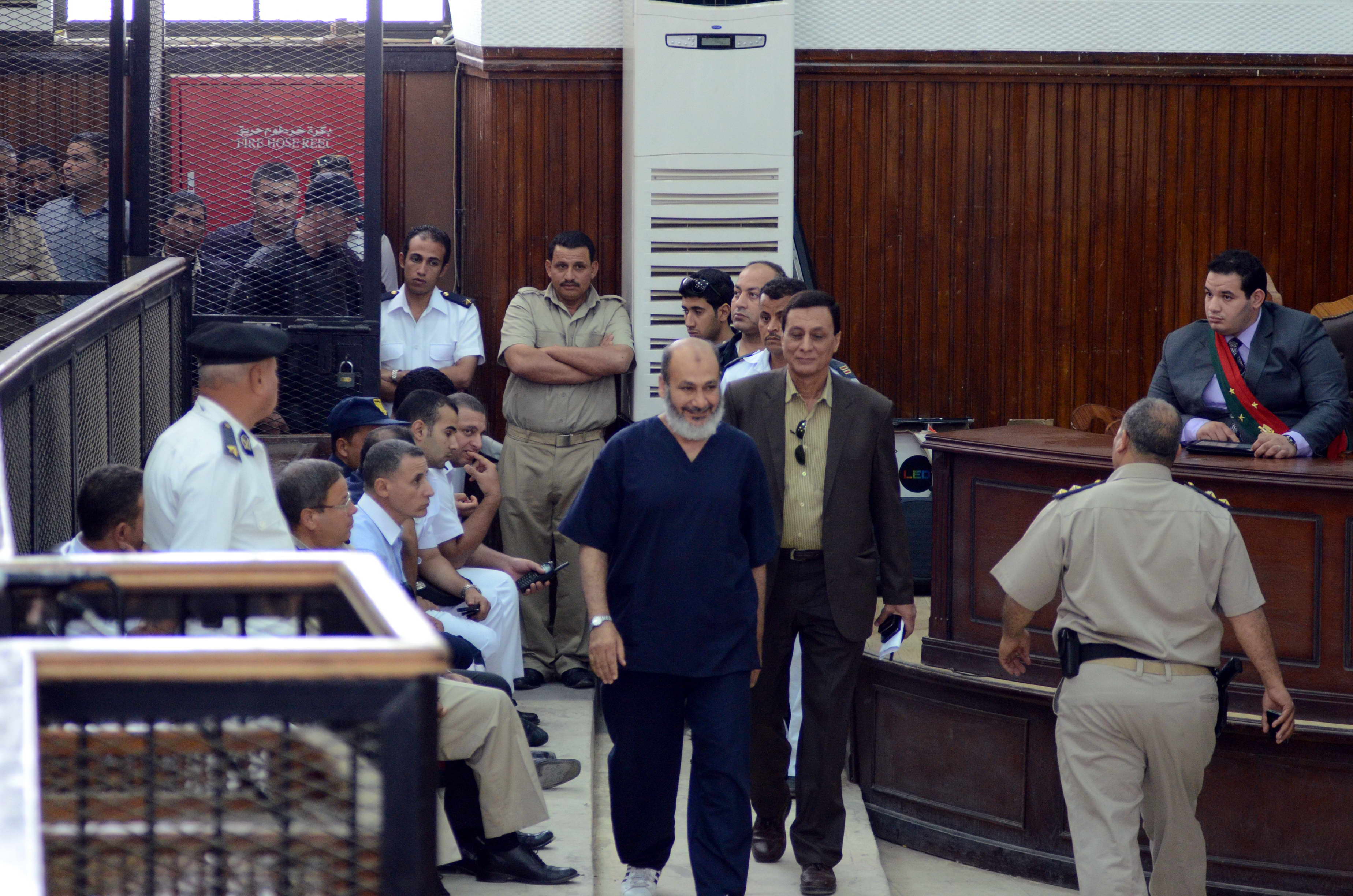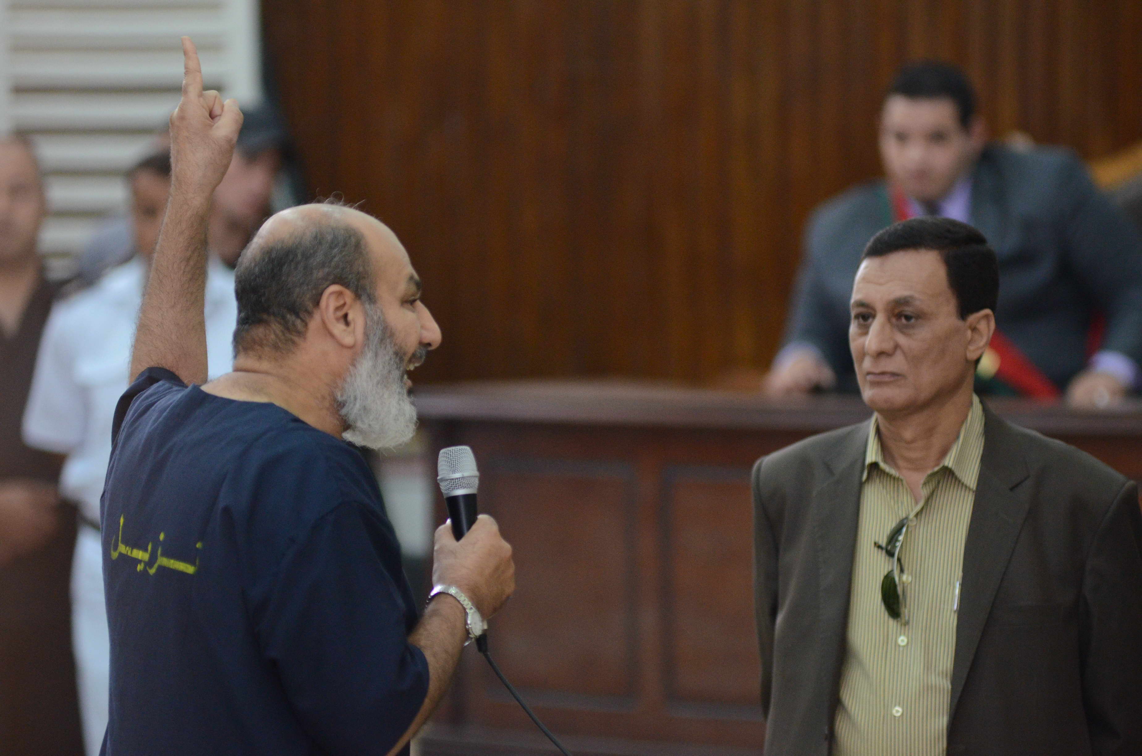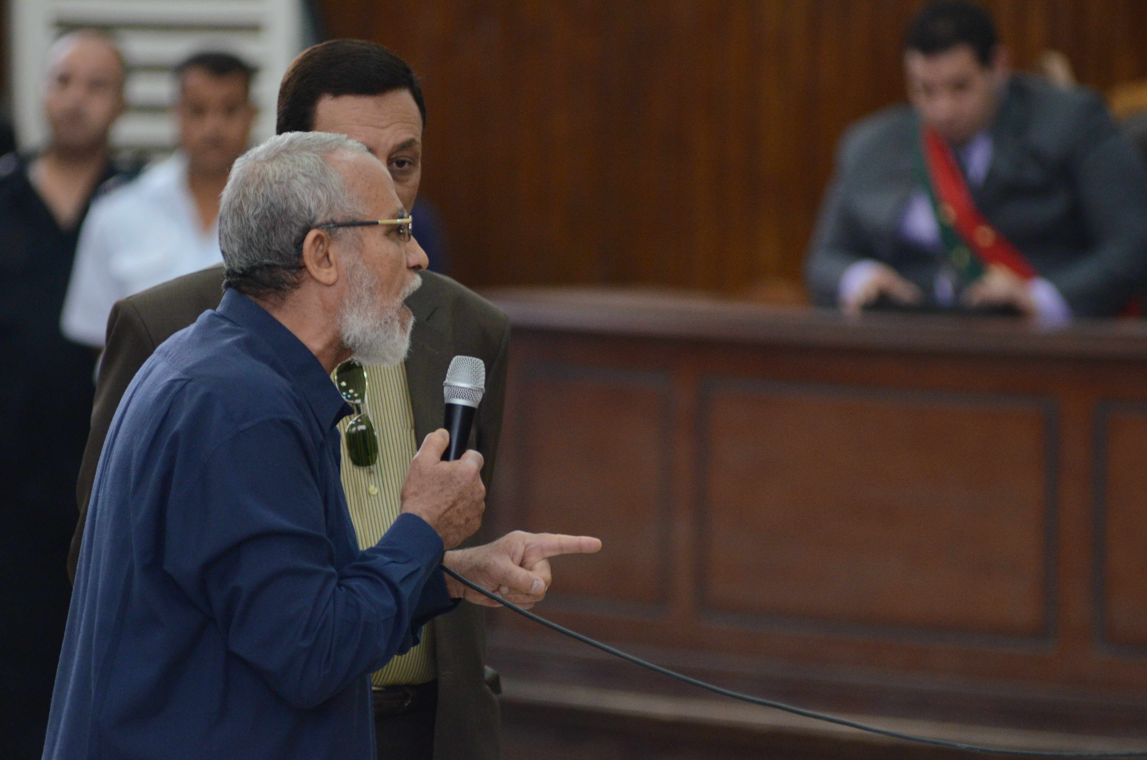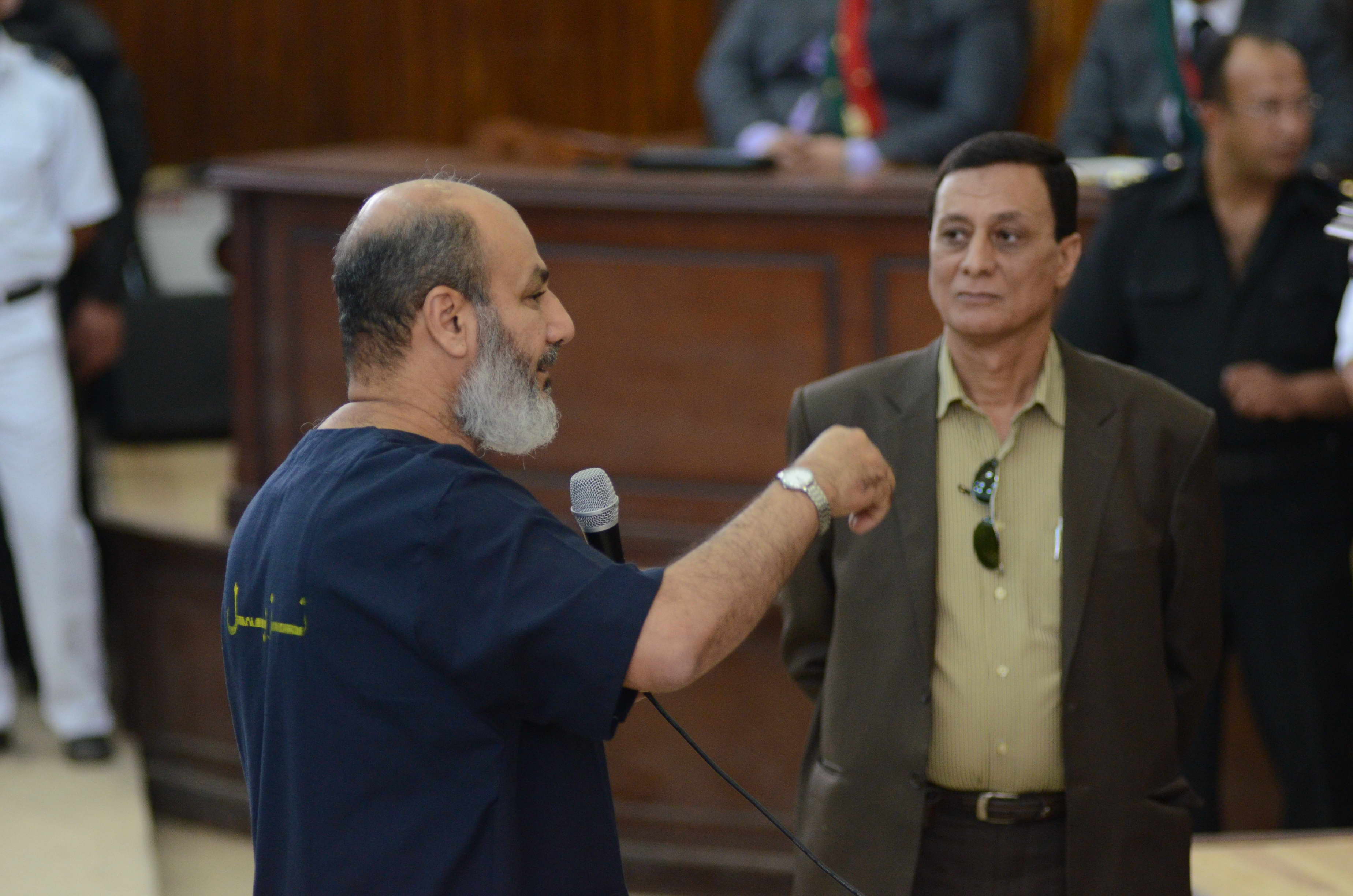 محاكمة المرشد العام محمد بديع و البلتاجى و صفوت حجازى بمعهد امناء الشرطة بطره