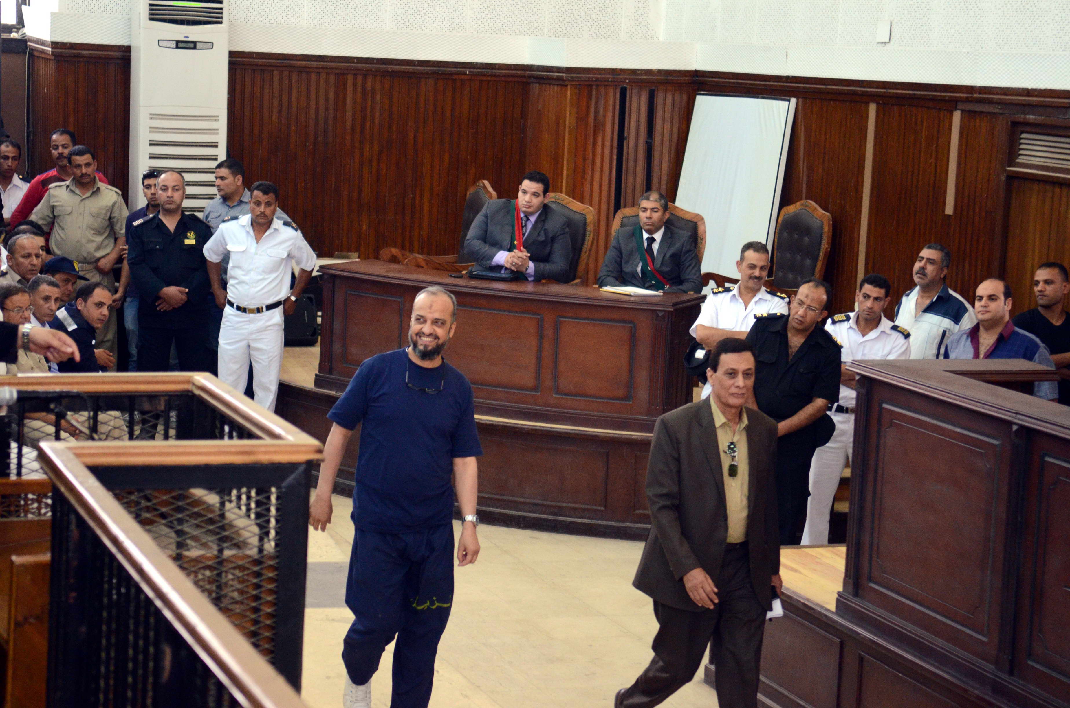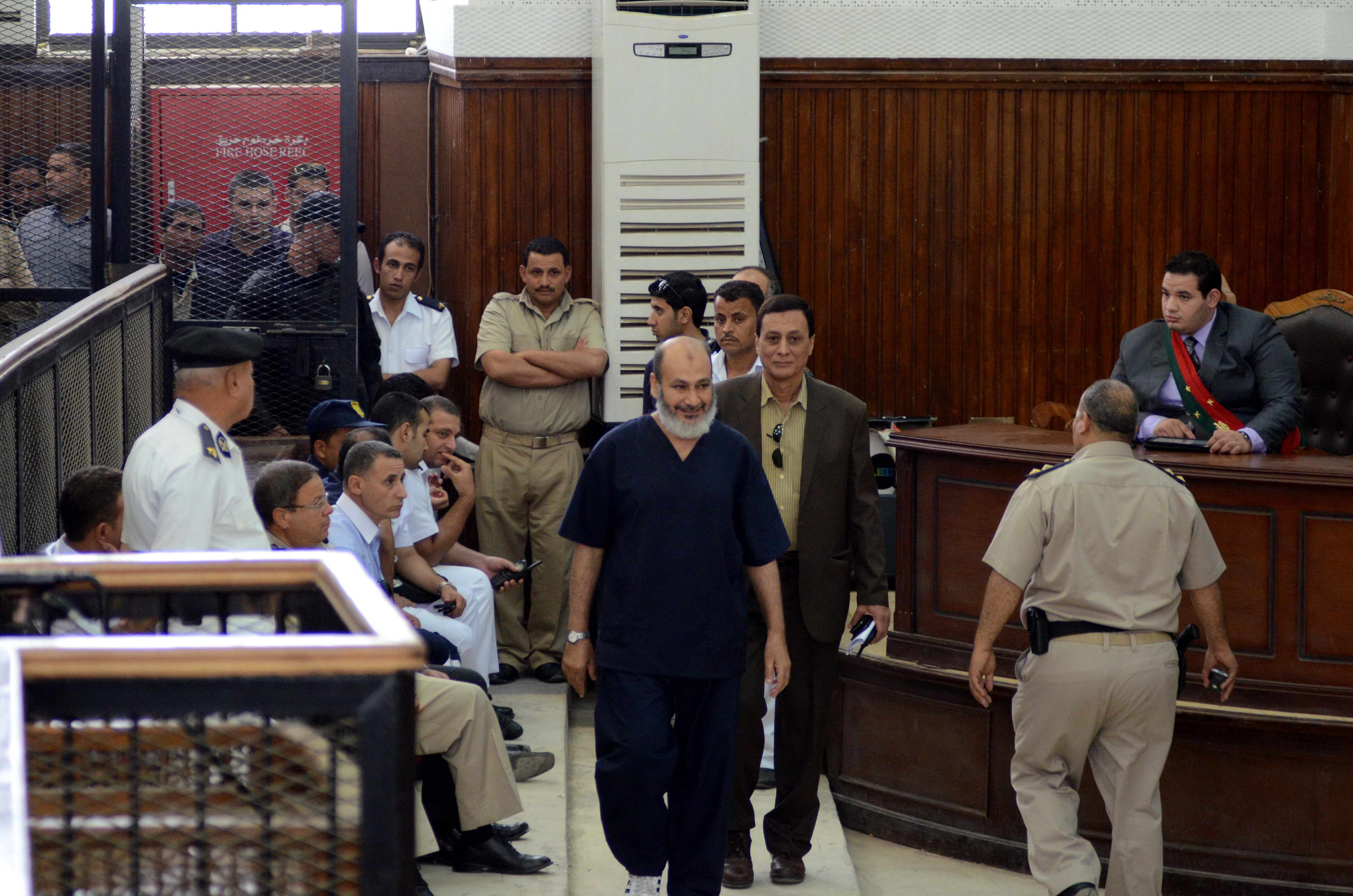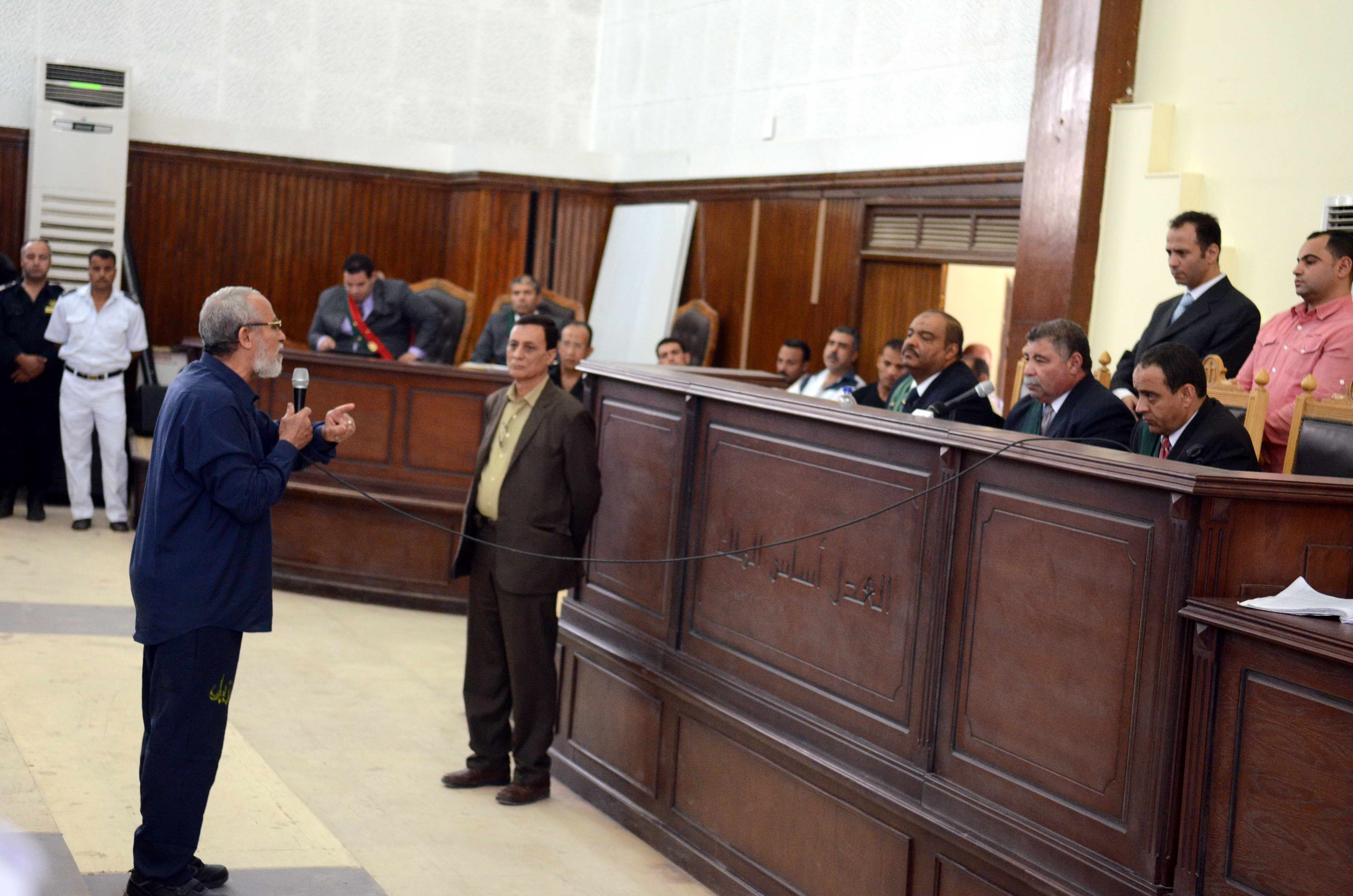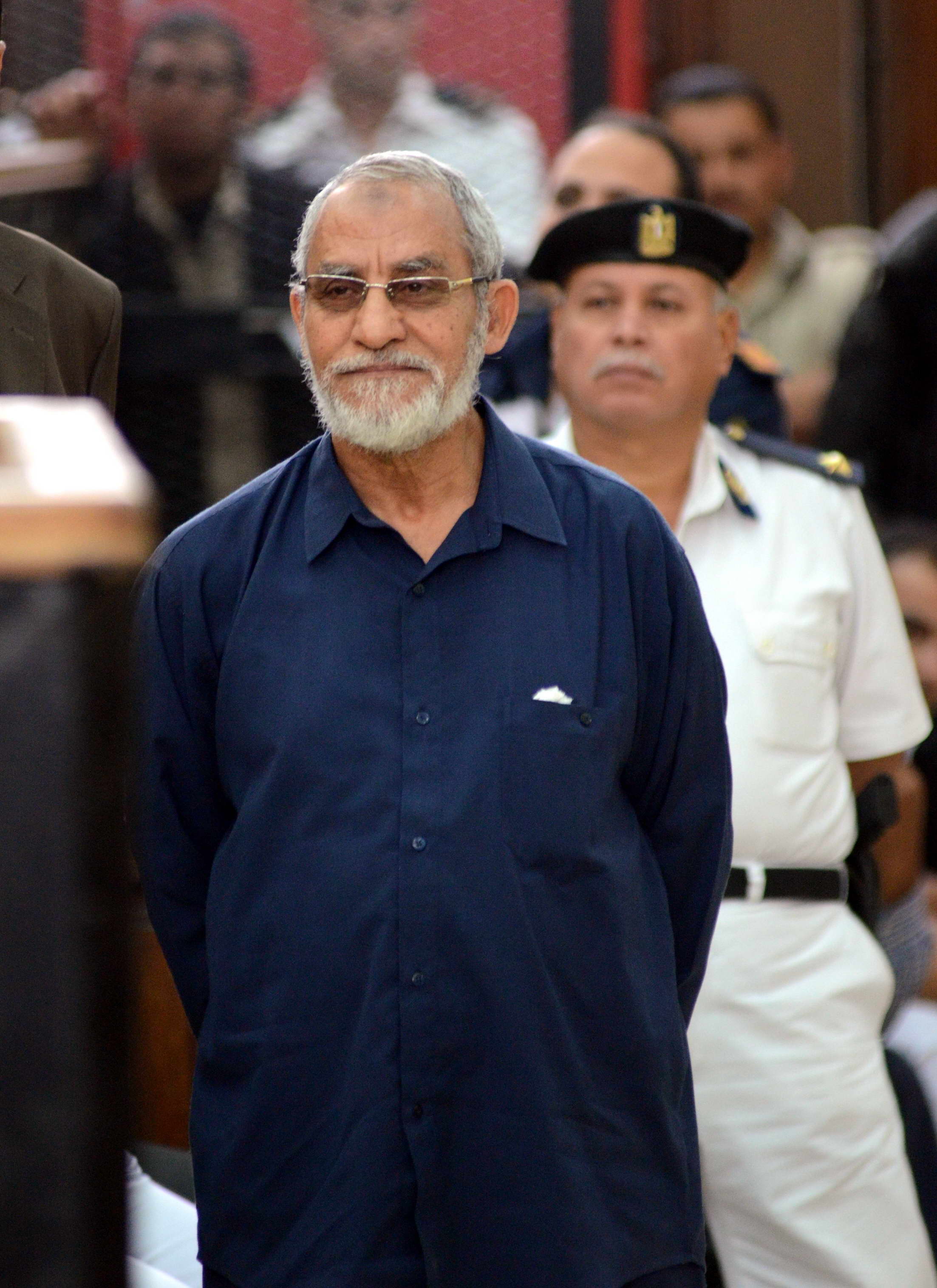 محاكمة المرشد العام محمد بديع و البلتاجى و صفوت حجازى بمعهد امناء الشرطة بطره