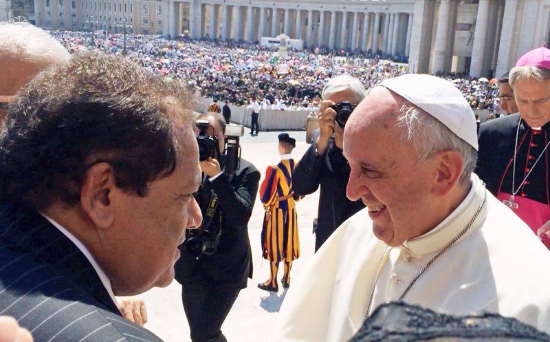 وكان محمد أبو العينين التقى بقداسة البابا فرانسيس الأول، بابا الفاتيكان، وأبدى أبو العينين سعادته بمبادرة السلام التي أطلقها فرانسيس الأول للحوار بين الأديان السماوية الثلاثة “الإسلام والمسيحية واليهودية”، مشيرا إلى أهمية هذا الحوار وأن يعم السلام العالم، كما أعرب أبوالعينين للبابا فرانسيس عن أمنياته زيارة البابا مصر في هذه المرحلة المهمة من تاريخها.