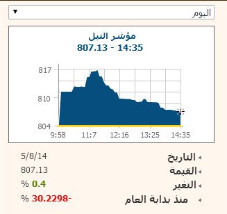 سجل مؤشر النيل بنهاية تعاملات جلسة اليوم ارتفاعا نسبته 0.40 % مغلقا عند مستوى807.13  نقطة.