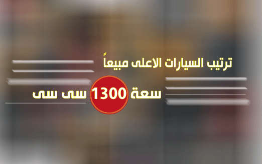 ترتيب السيارات الاعلى مبيعا سعة 1300 سى سى