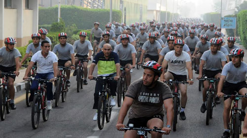 شارك الفريق أول صدقى صبحى القائد العام للقوات المسلحة وزير الدفاع والانتاج الحربى طلبة الكلية الحربية ماراثون لركوب الدراجات وذلك فى اطار منظومة الارتقاء باللياقة البدنية والمعنوية باعتبارهما الركائز الأساسية لبناء الفرد المقاتل في القوات المسلحة.