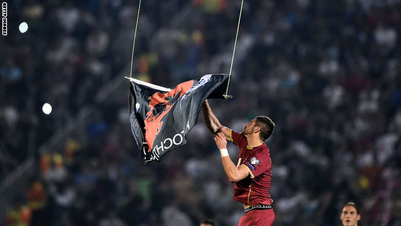 وتوقف اللعب في المباراة ذات الحساسية السياسية ضمن المجموعة التاسعة، التي لم يسمح لأي مشجع من الفريق الزائر بحضورها عند رفع علم “ألبانيا الكبرى” فوق المدرجات وأرض الملعب.