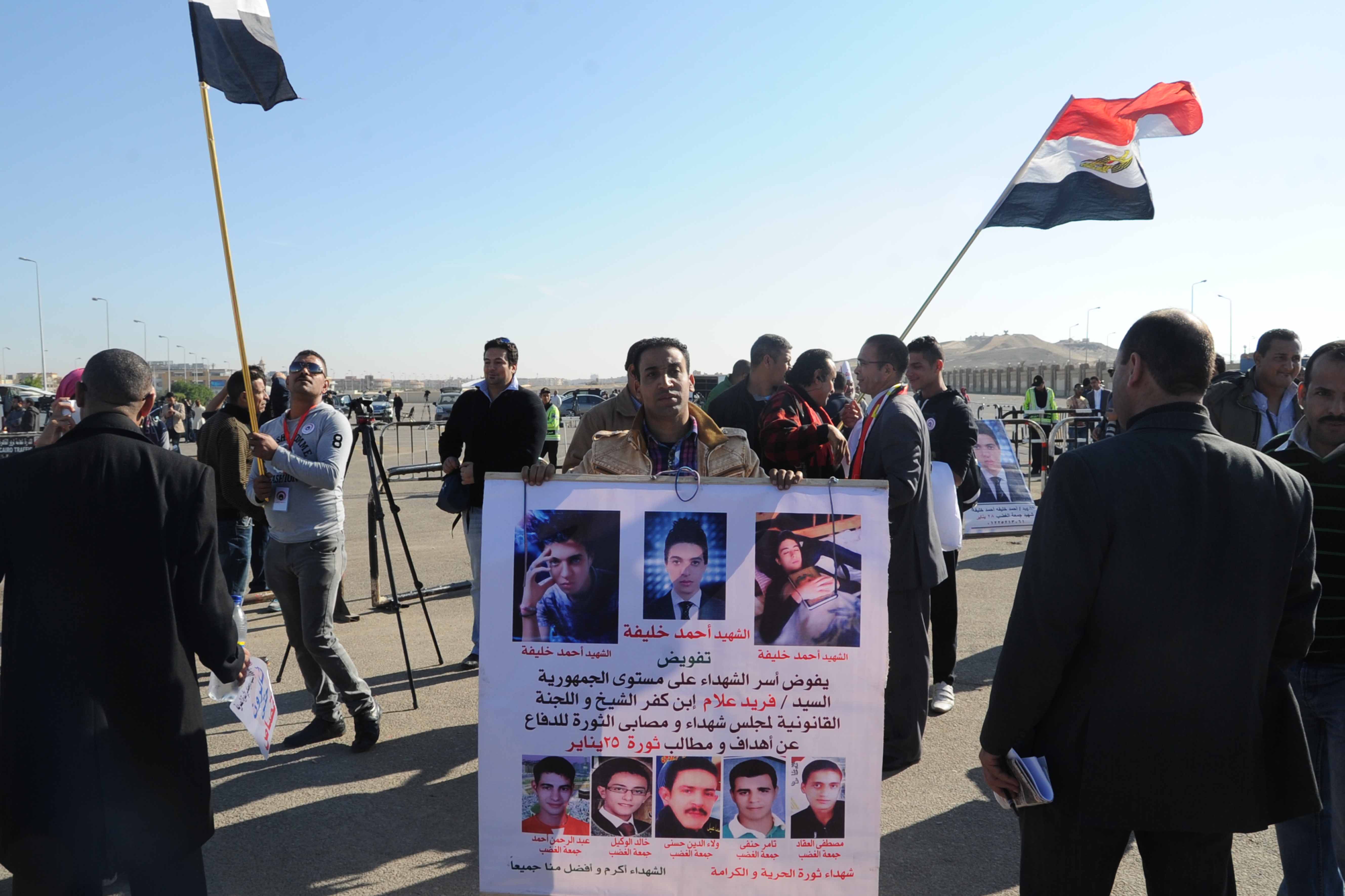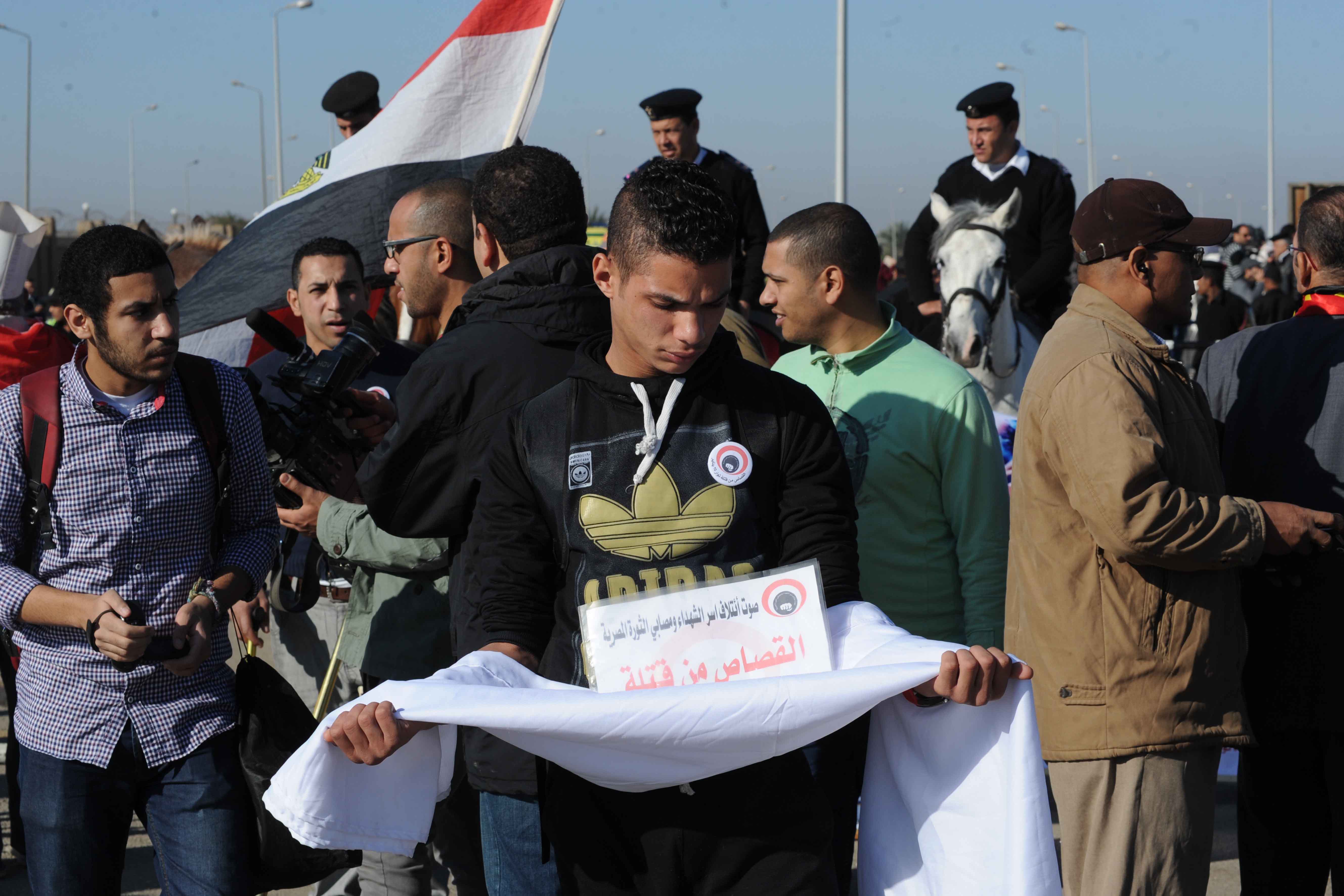 انصار مبارك وأهالى الشهداء امام اكاديمية الشرطة