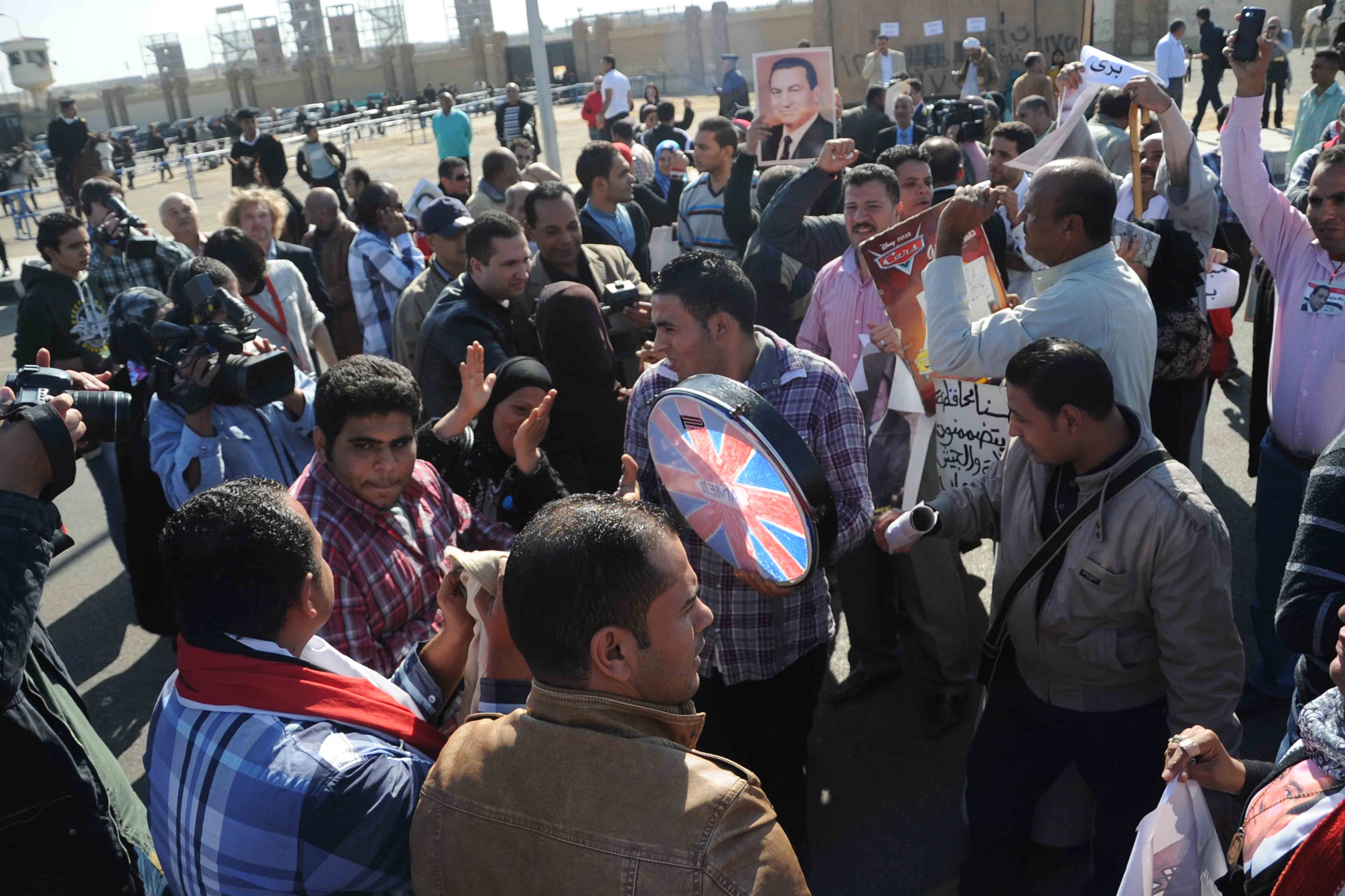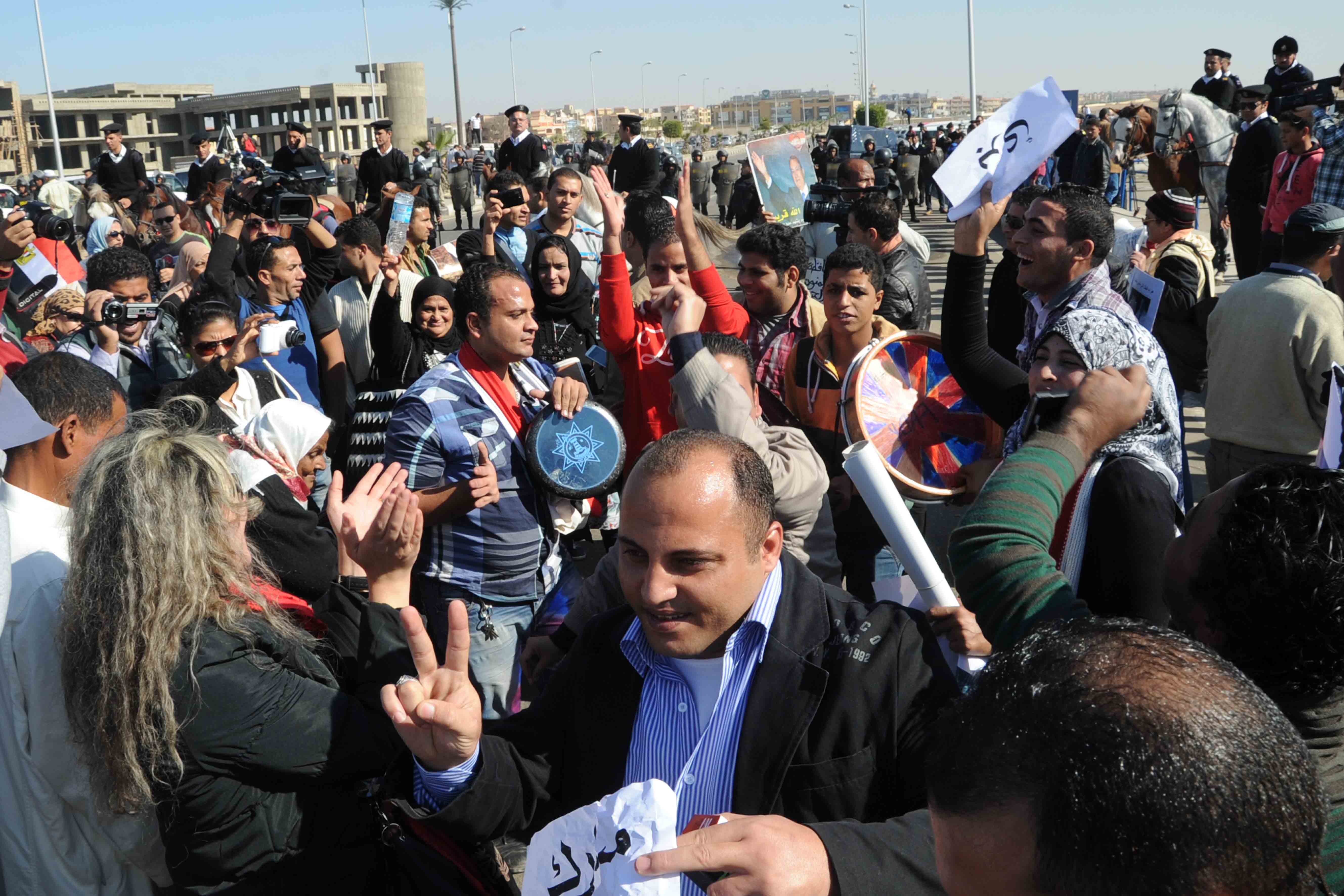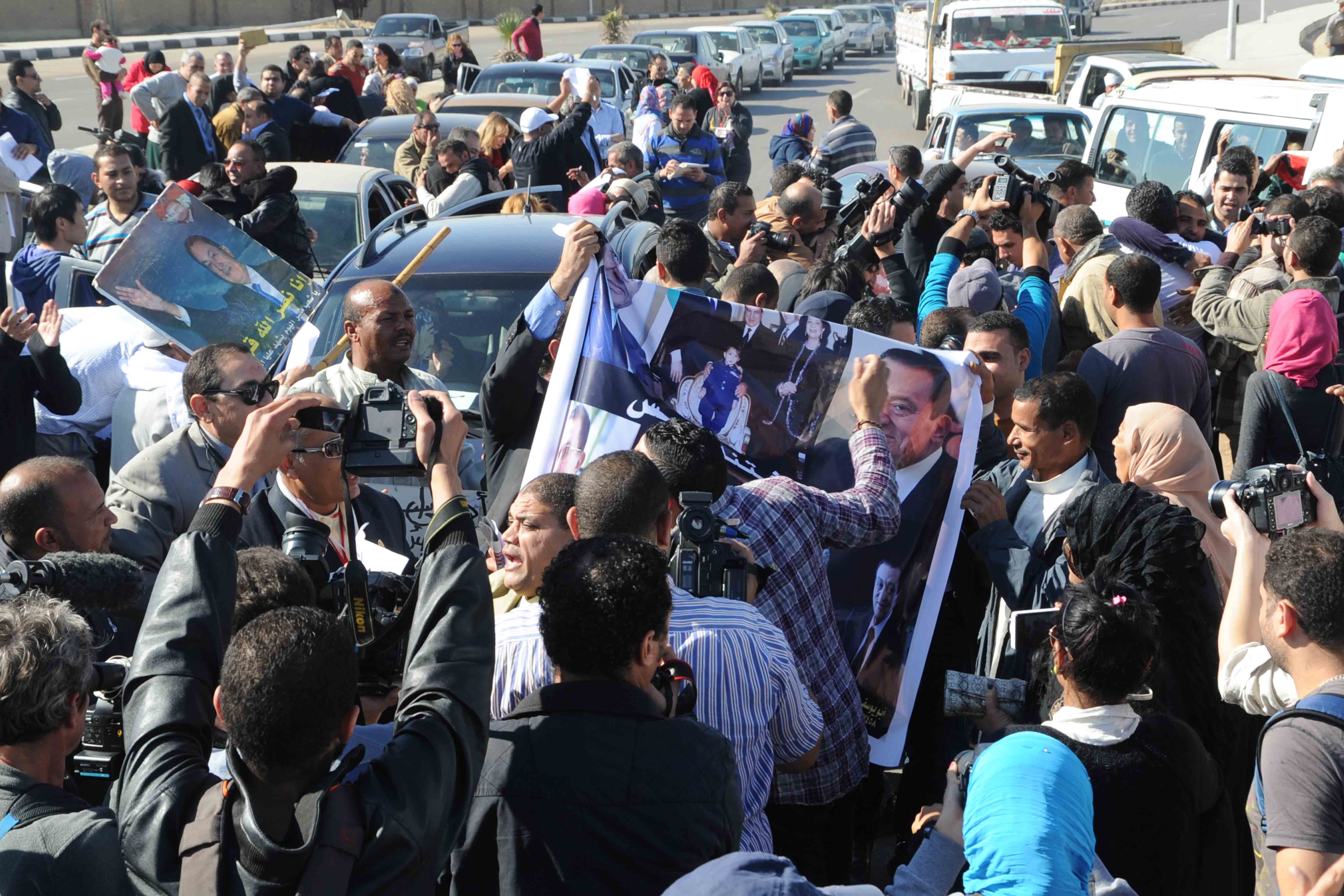 انصار مبارك وأهالى الشهداء امام اكاديمية الشرطة