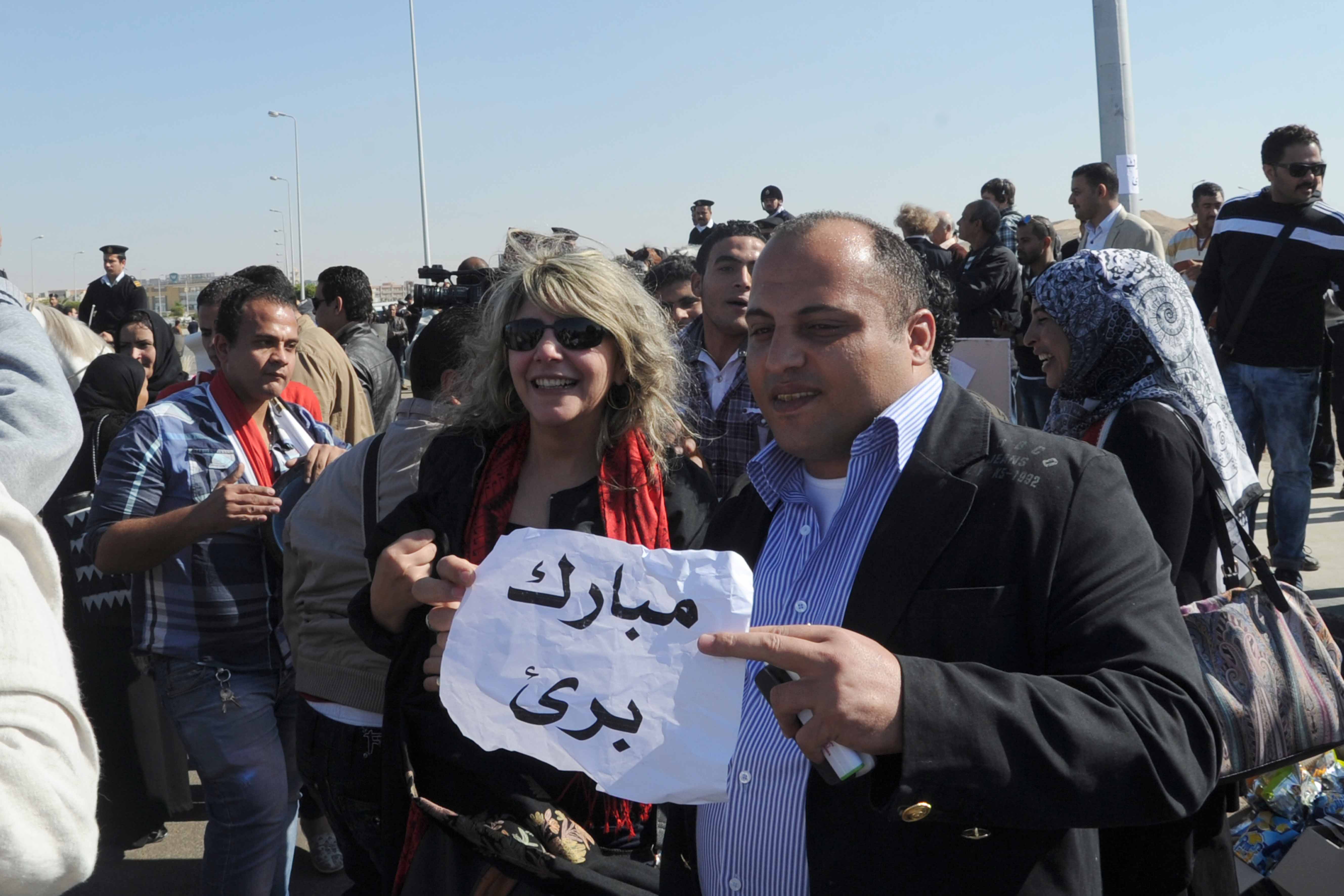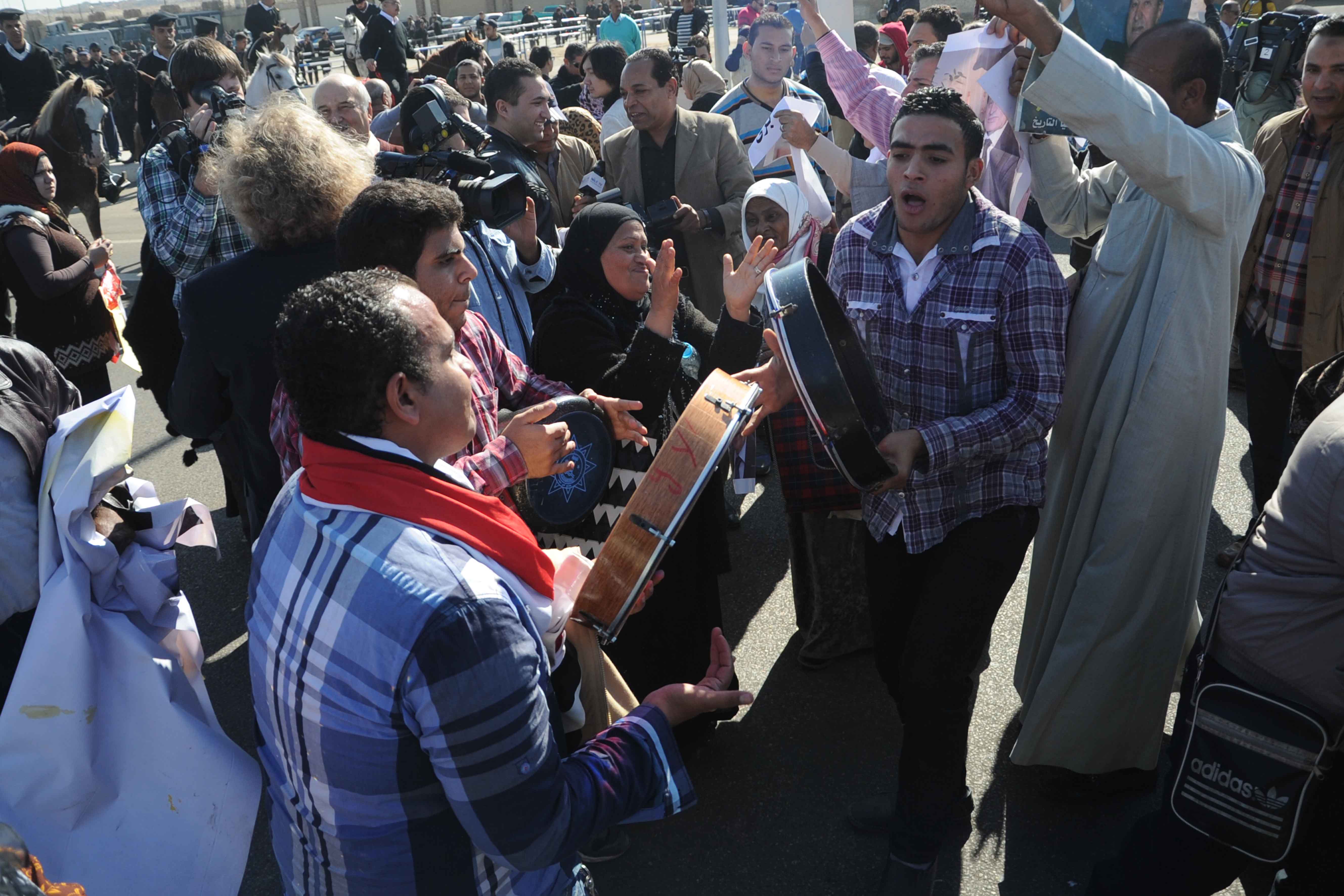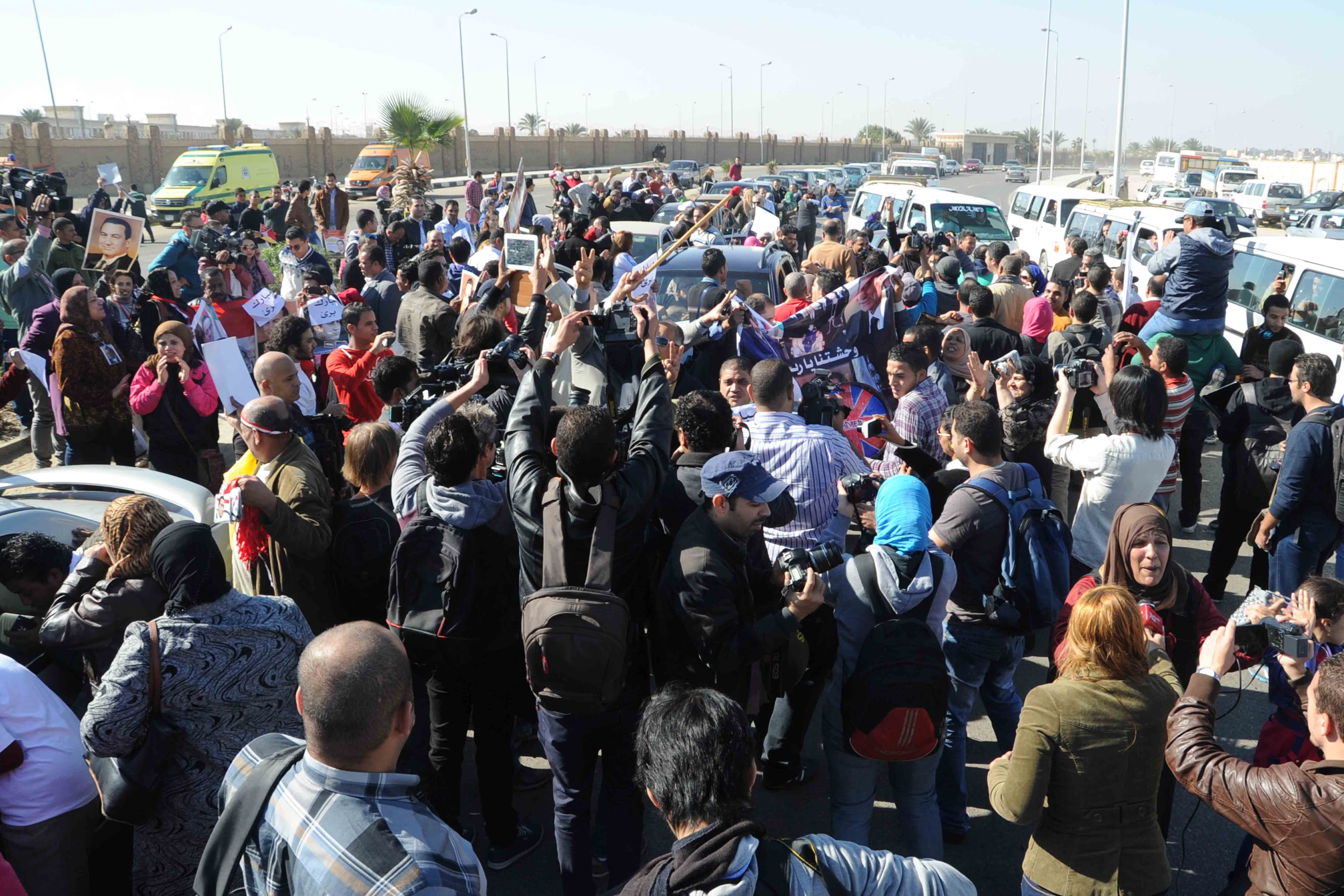 انصار مبارك وأهالى الشهداء امام اكاديمية الشرطة