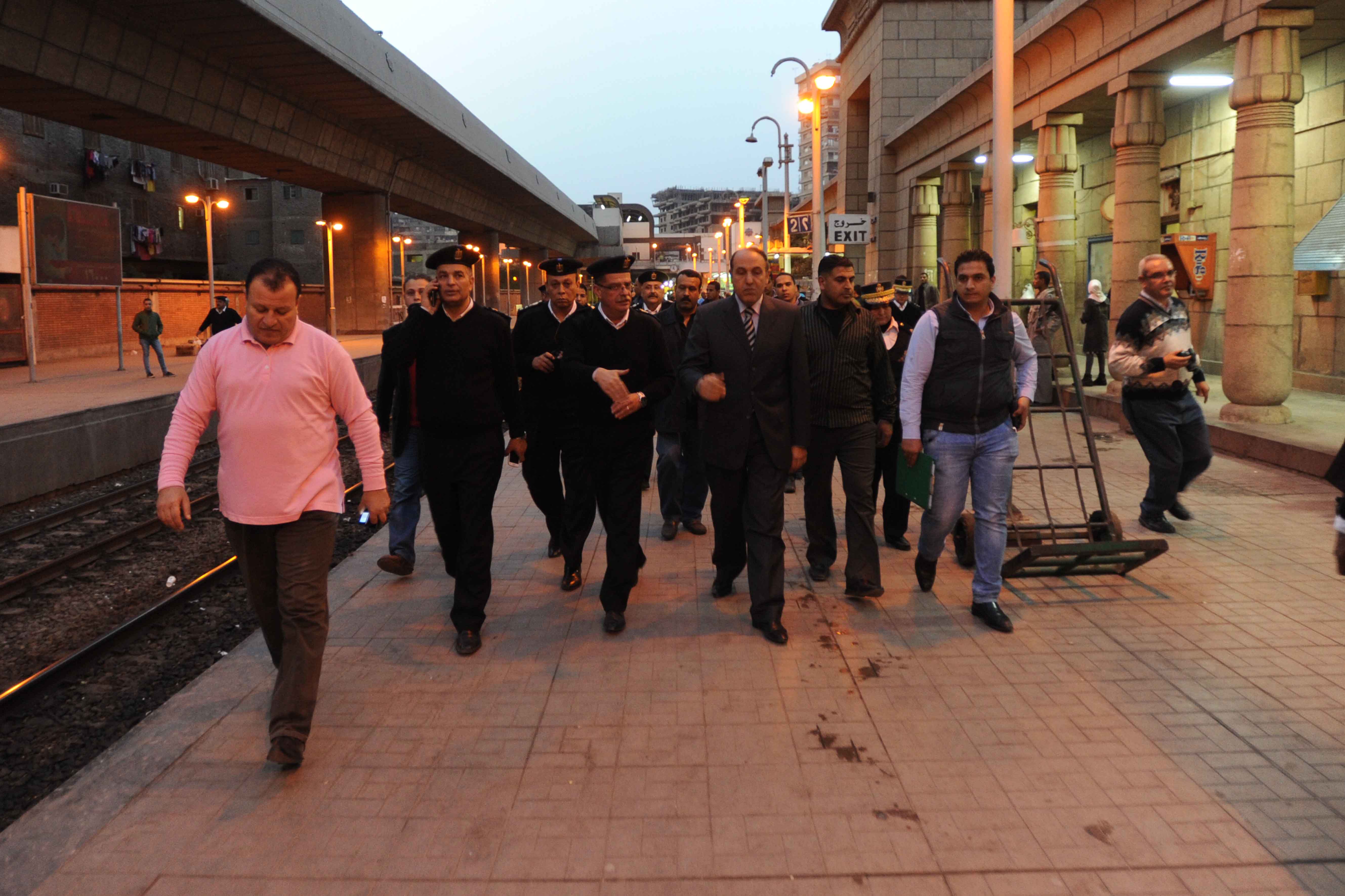 وتم تمشيط محطة مترو وسكك حديد الجيزة وانتقل الى مكان الحادث السيد اللواء السيد جاد الحق مساعد الوزير للنقل والمواصلات واللواء رقية حمزة والعميد نجوى درويش والعميد ايمن كامل والعميد احمد فتحى من ادارة المترو.