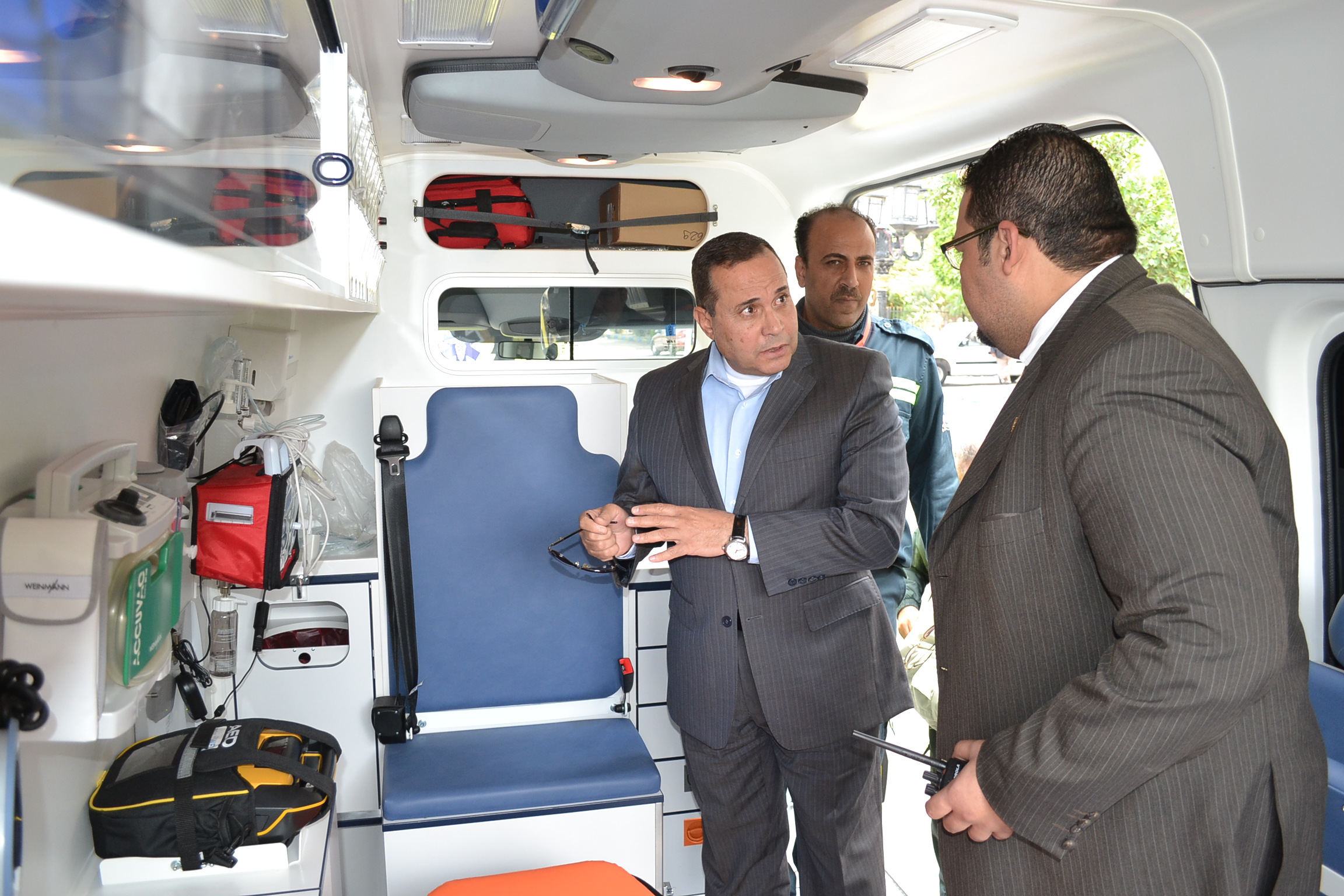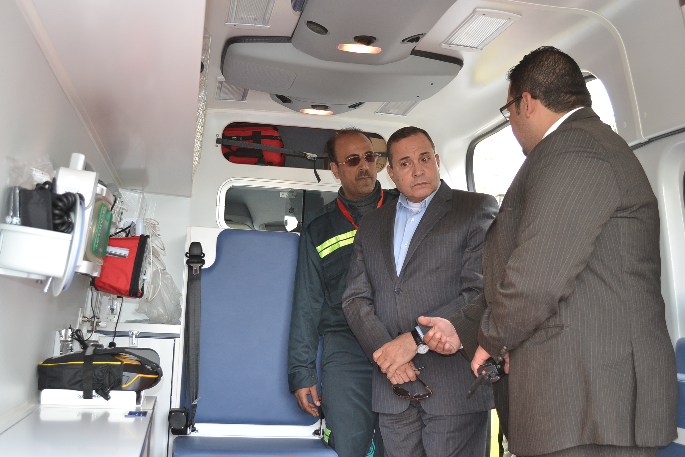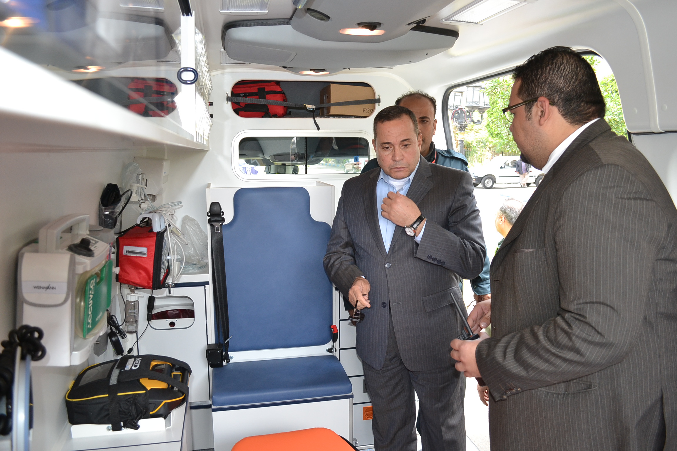 قام اللواء أحمد بهاء الدين القصاص محافظ الاسماعيلية بتفقد ومعاينة عدد خمس سيارات اسعاف جديدة مجهزة على أحدث وسائل تكنولوجيا الاسعاف والتى تم وصولها الى الاسماعيلية تدعيما لأسطول سيارات الاسعاف بالمحافظة ويصل اجمالى تكلفتها المالية الى ثلاثة ملايين وسبعمائة وخمسون ألف جنيها وبانضمام هذه السيارات الجديدة الى مرفق اسعاف الاسماعيلية يصل اجمالى عدد السيارات المجهزة الى عدد 76 سيارة موزعة على كافة مراكز ومدن المحافظة وتوابعها من خلال مراكز ونقاط الاسعاف الثابتة والمتحركة لخدمة اهالى ومواطنى المحافظة بالكامل.