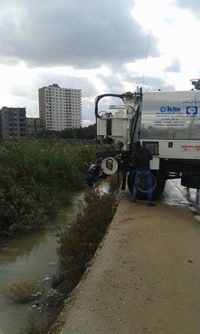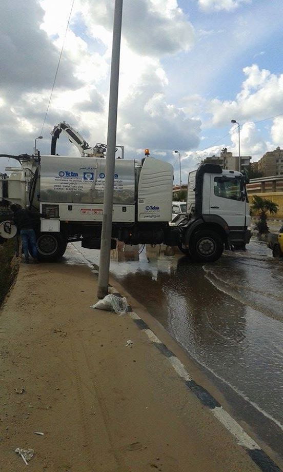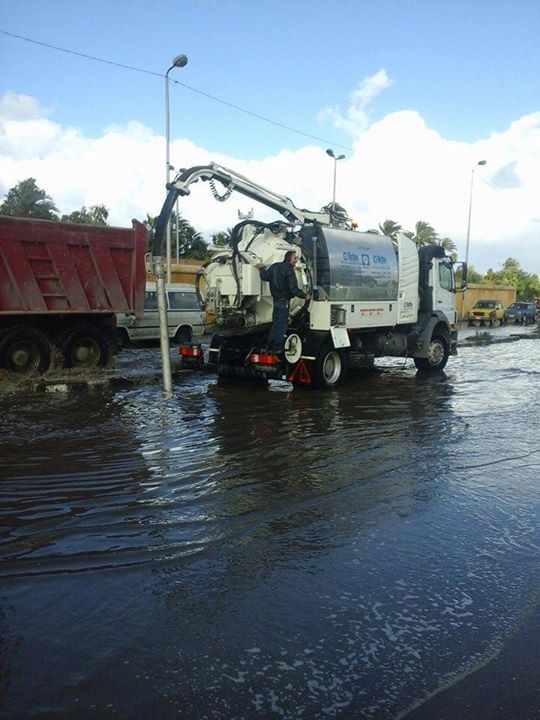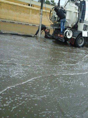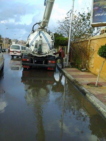 عقب ذلك توجهت ٤ سيارات لسحب المياه من أمام مركز التدريب المهني بالمعمورة و٤ سيارات اخري لسحب للمياه من أمام الأكاديمية البحرية بطوسون ومناطق اخرى بالمعمورة