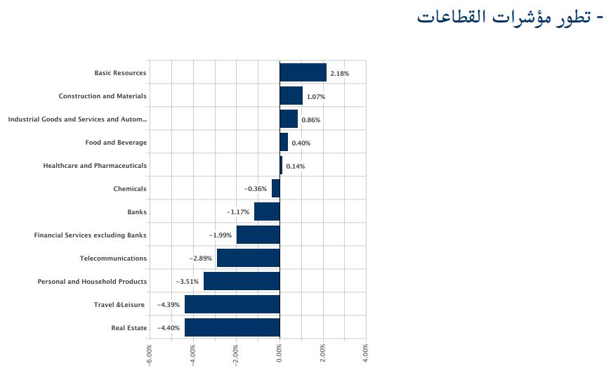وجاءت أسهم قطاع العقارات بالمركز الثالث بعد أن بلغت تداولاتها نحو 58.4 مليون سهم بقيمة 560.3 مليون جنيه، ويليها أسهم قطاع السياحة والترفيه بتداول 28.7 مليون سهم بقيمة 106.6 مليون جنيه، ثم سجلت أسهم التشييد ومواد البناء 28.2 مليون سهم بقيمة 111.8 مليون جنيه.