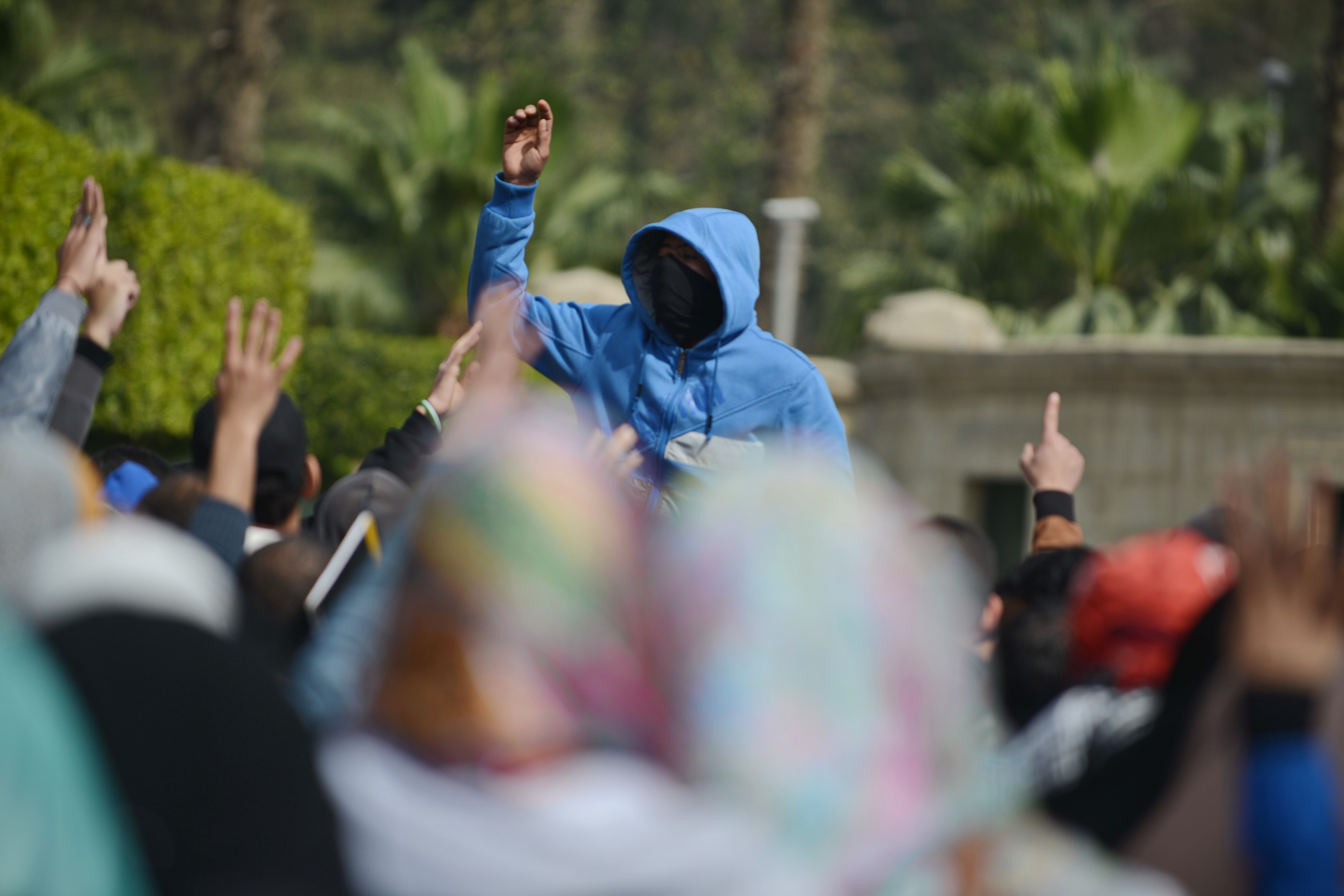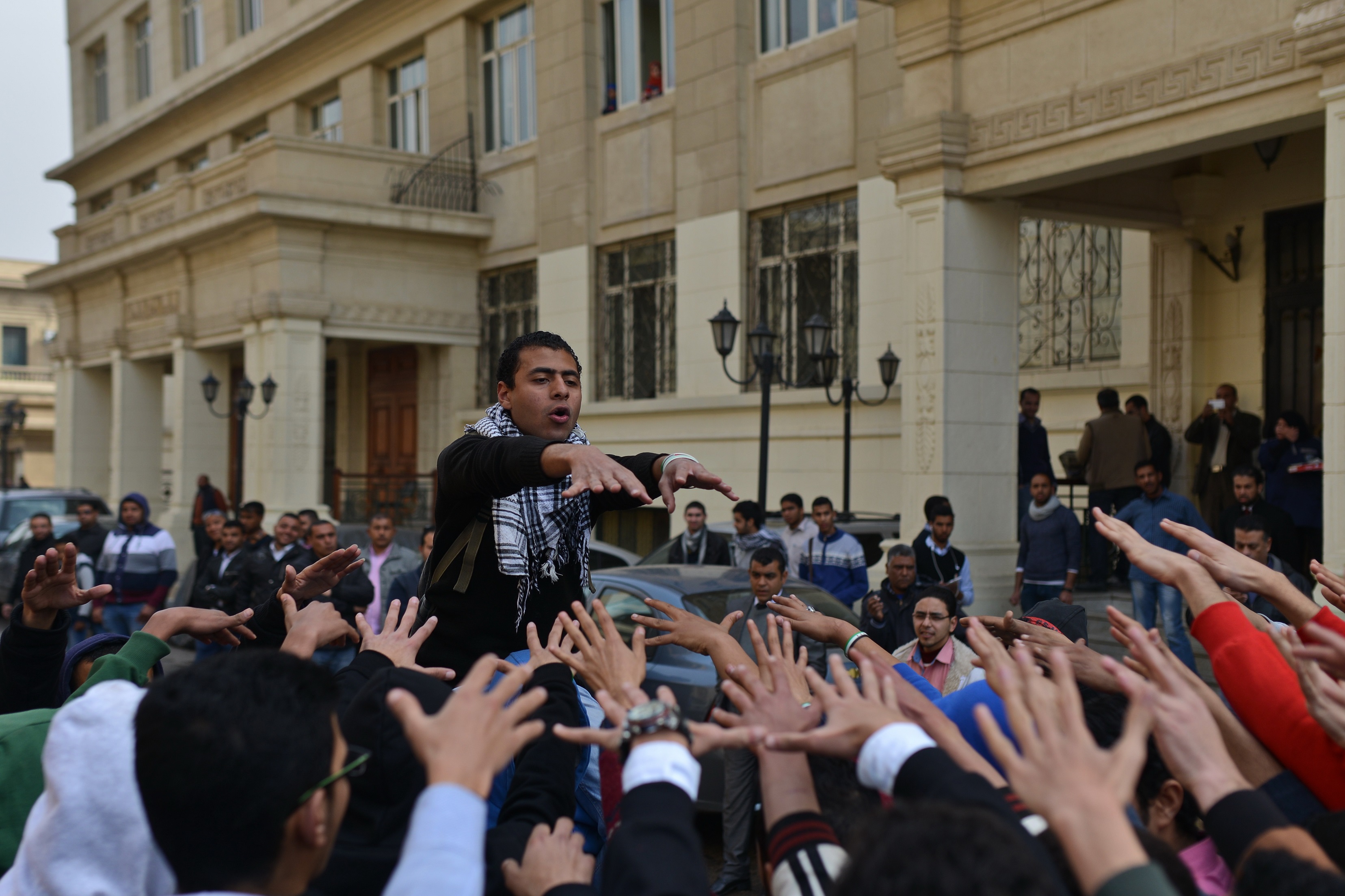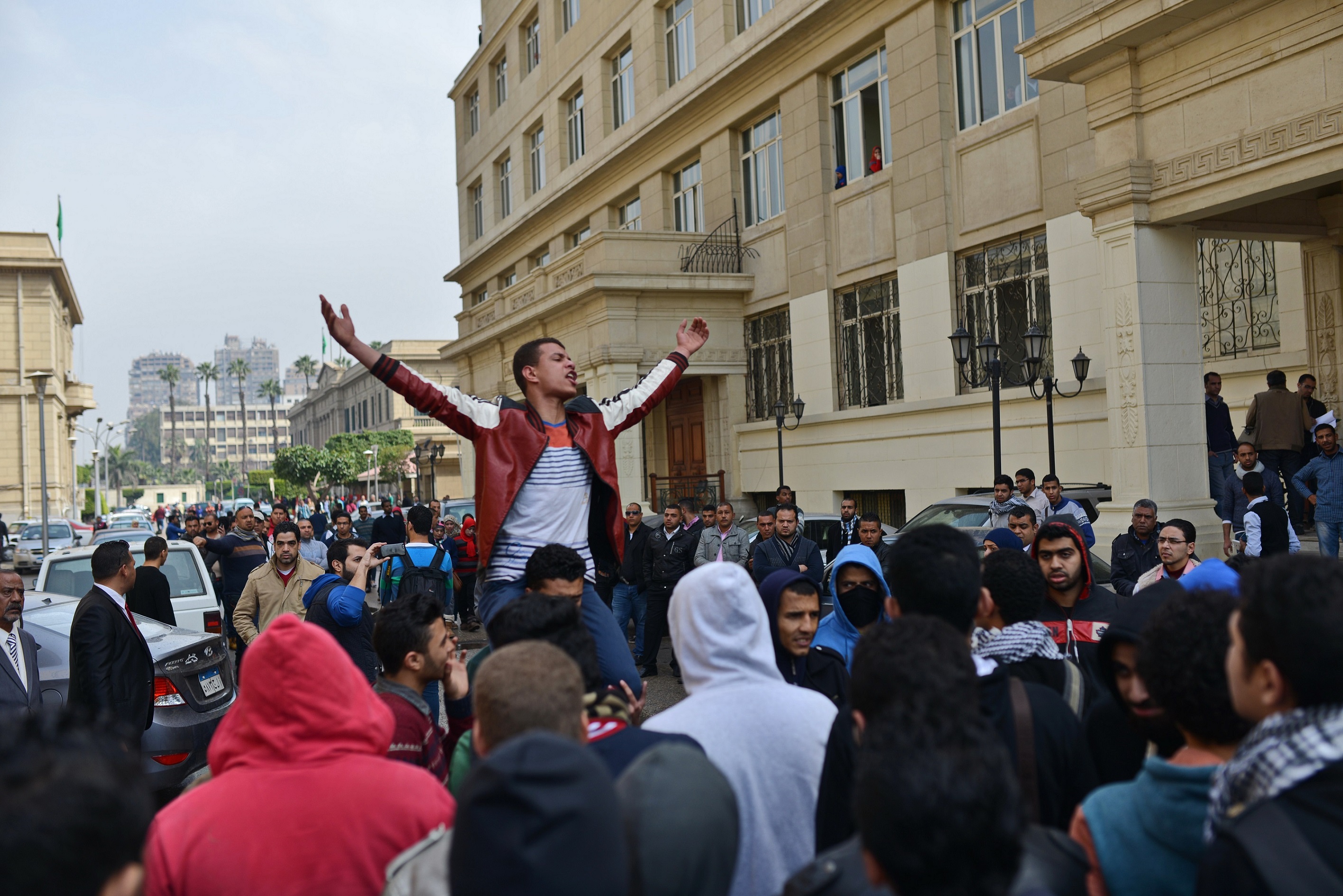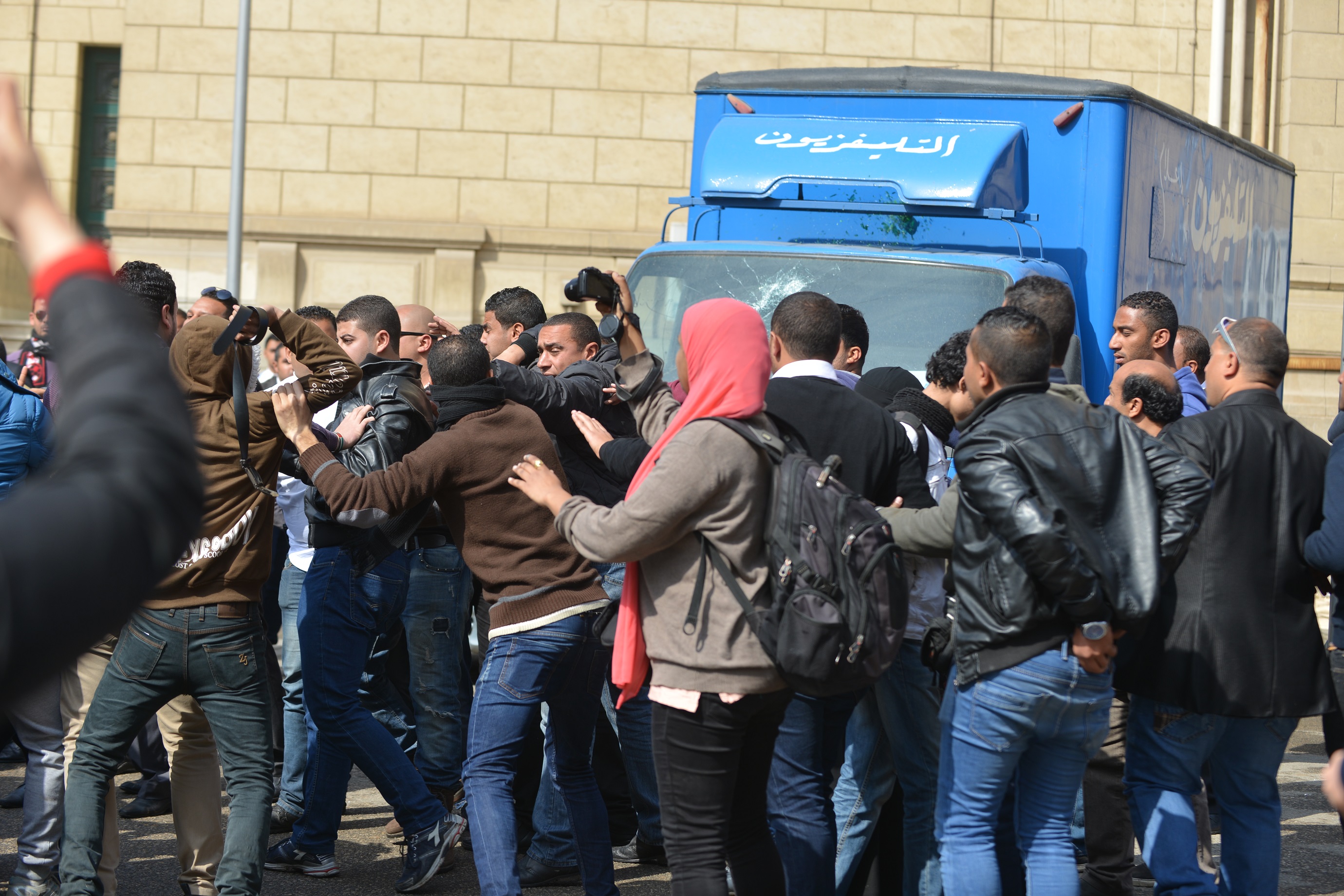 بالصور – مظاهرات الطلاب بجامعة القاهرة وتكسير عربة التليفزيون المصرى