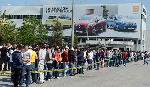 وذكرت قناة (سي.إن.إن) التركية إن العمال في مشروع توفاس وهو مشروع مشترك بين شركتي فيات الايطالية وكوج القابضة التركية نظموا احتجاجا وقاموا بوقف خط التجميع.