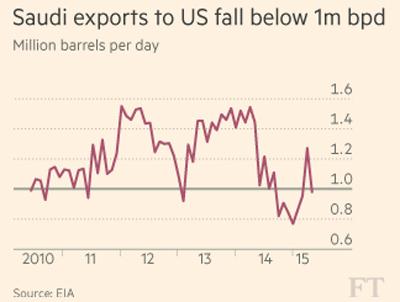 وكانت المرة الأخيرة التي انخفض فيها متوسط الصادرات النفطية السعودية إلى الولايات المتحدة عن مليون برميل يومياً لفترة كبيرة في عام 2009، عندما خفضت الأزمة المالية الطلب على النفط، وعلى الرغم من ذلك تراجعت الصادرات أدنى ذلك المستوى لأشهر فردية ولكن ليس لفترة مطولة.