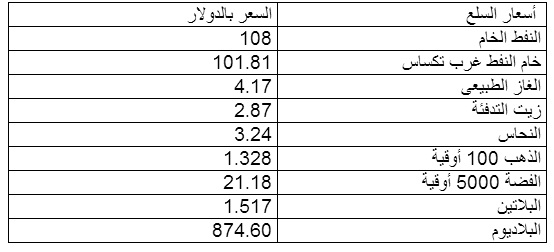 و بلغ سعر الغاز الطبيعى 2.59 دولار ، و سجل سعر جالون زيت التدفئة 1.87 دولار، و بلغت الفضة 16.05 دولار.