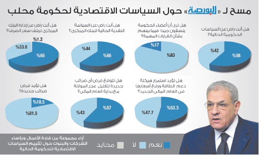 وقال 58% من المشاركين فى مسح «البورصة» إنهم راضون عن السياسات الحكومية فى الوقت الحالى، بينما رفضها 42 منهم.