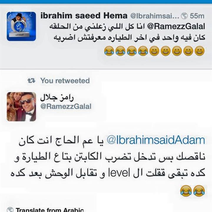 رد الفنان رامز جلال عبر «تويتر» على تغريدة لإبراهيم سعيد لاعب الأهلي والزمالك السابق، قائلًا: ياعم الحاج إنت كان ناقصك بس تدخل تضرب الكابتن بتاع الطيارة وكدة يبقى خلصت الـ «level» وهتدخل تقابل الوحش.