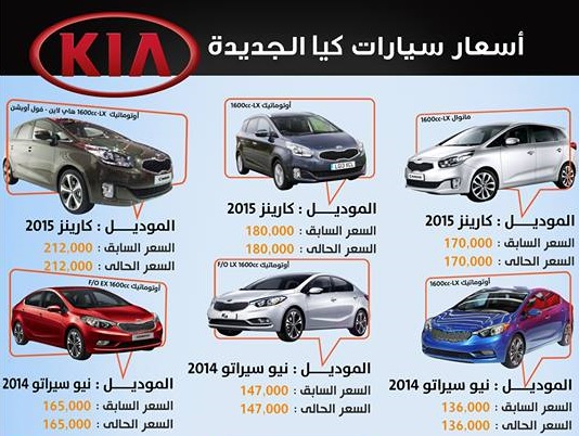 انفوجراف.. اسعار سيارات "كيا" الجديدة فى مصر [caption id="attachment_712810" align="alignnone" width="167"]<a href="http://www.alborsanews.com/beta/wp-content/uploads/2015/06/سيارات-كيا.jpg"><img class="size-medium wp-image-712810" src="http://www.alborsanews.com/beta/wp-content/uploads/2015/06/سيارات-كيا-167x300.jpg" alt="اسعار سيارات كيا" width="167" height="300" /></a> اسعار سيارات كيا[/caption]