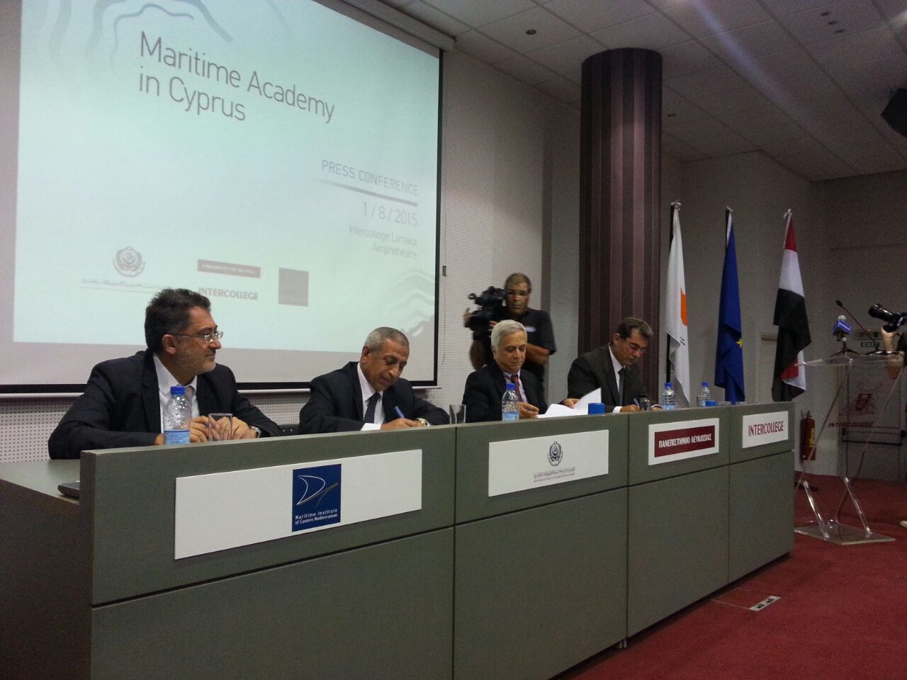 وبعد مفاوضات دامت اكثر من عام ونصف وقع ماريوس ديميتريادز، وزير النقل والأشغال القبرصى مع الدكتور إسماعيل عبد الغفار ، رئيس الأكاديمية العربية مذكرة تفاهم على إنشاء فرع جديد للأكاديمية العربية بمدينة لارناكا بدولة قبرص، على أن يكون بداية عملها وهو تدريس النقل البحرى بأنواعه خلال شهر أكتوبر 2015.