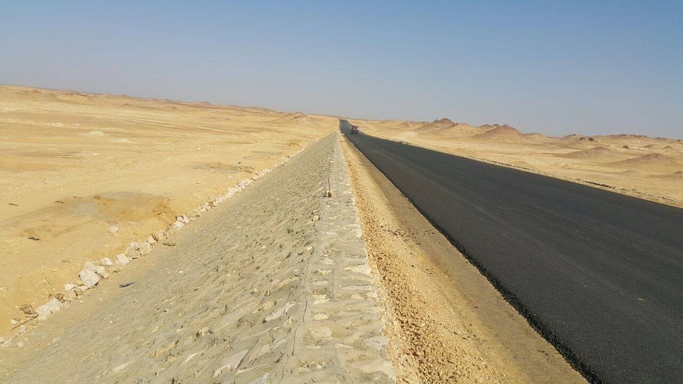 أضاف أن الطريق يربط محافظة المنيا بالواحات البحرية بهدف استكمال خط عرضى لربط عموم الجمهورية يبدأ من ساحل البحر اﻷحمر عند رأس غارب حتى واحة سيوة على الحدود الغربية.