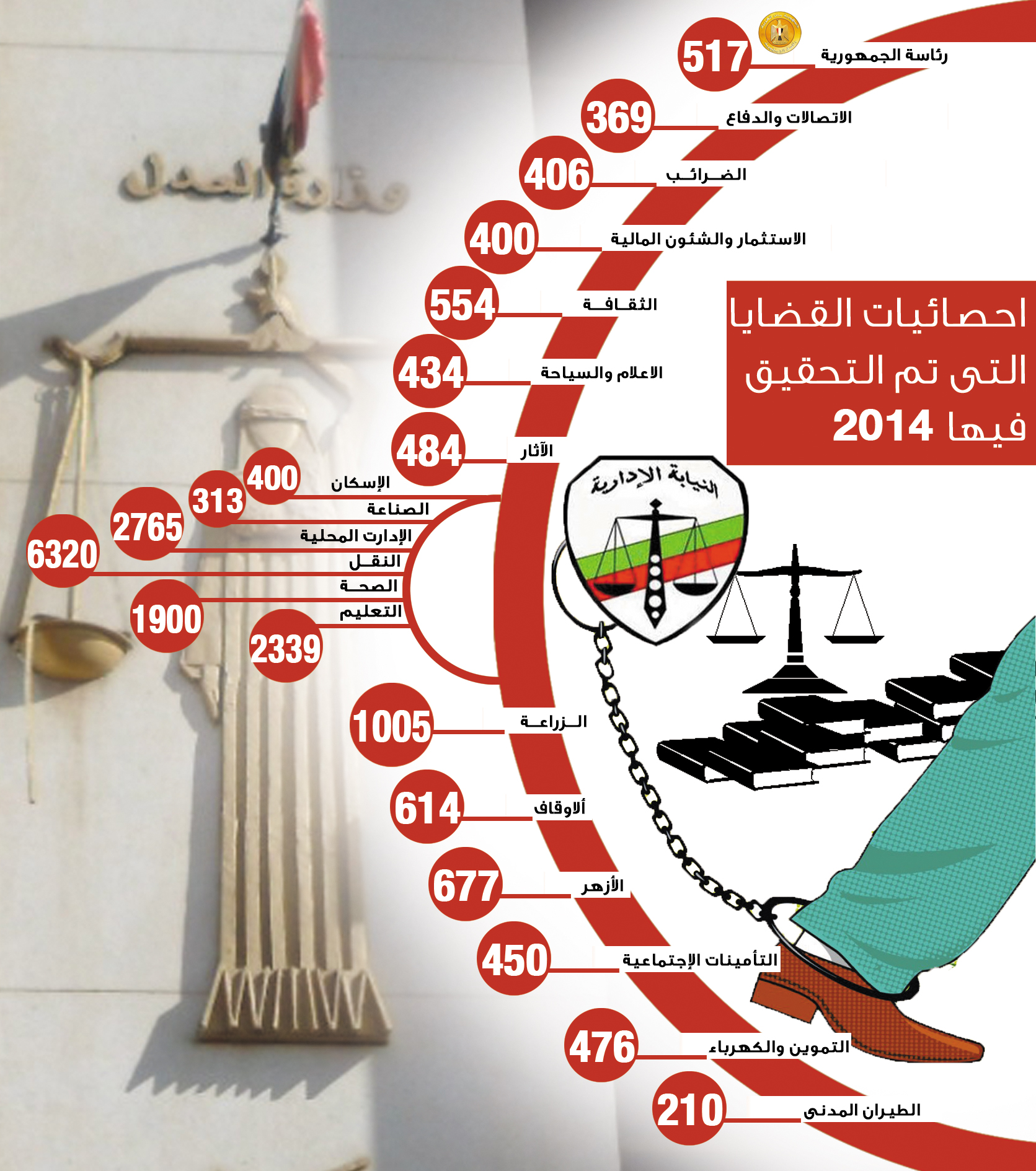انفوجراف: احصائيات القضايا الادارية التى تم التحقيق فيها 2014
